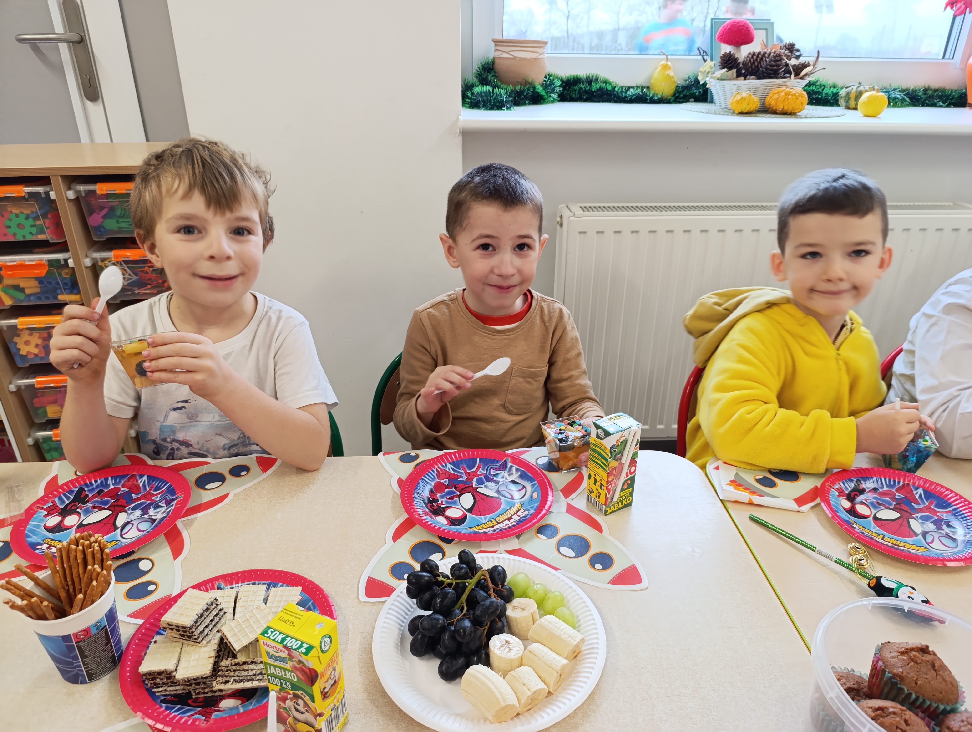 W naszej zerówce odbyły się wesołe i taneczne obchody Andrzejek. Zaczęliśmy od stworzenia "latających", kolorowych nietoperzy, a następnie za pomocą wróżb szukaliśmy odpowiedzi na nurtujące nas pytania! Wiemy już, kto pierwszy stanie na ślubnym kobiercu oraz jakie imiona będą miały nasze drugie połówki. Poznaliśmy też zawody, które są nam pisane w dorosłym życiu. Śmiechom nie było końca. Dzień uzupełniliśmy tańcami, kolorowankami i świetną zabawą. Rodzice przygotowali pyszny poczęstunek, a dekoracje naszej sali przygotowały samodzielnie dzieci poprzedniego dnia.