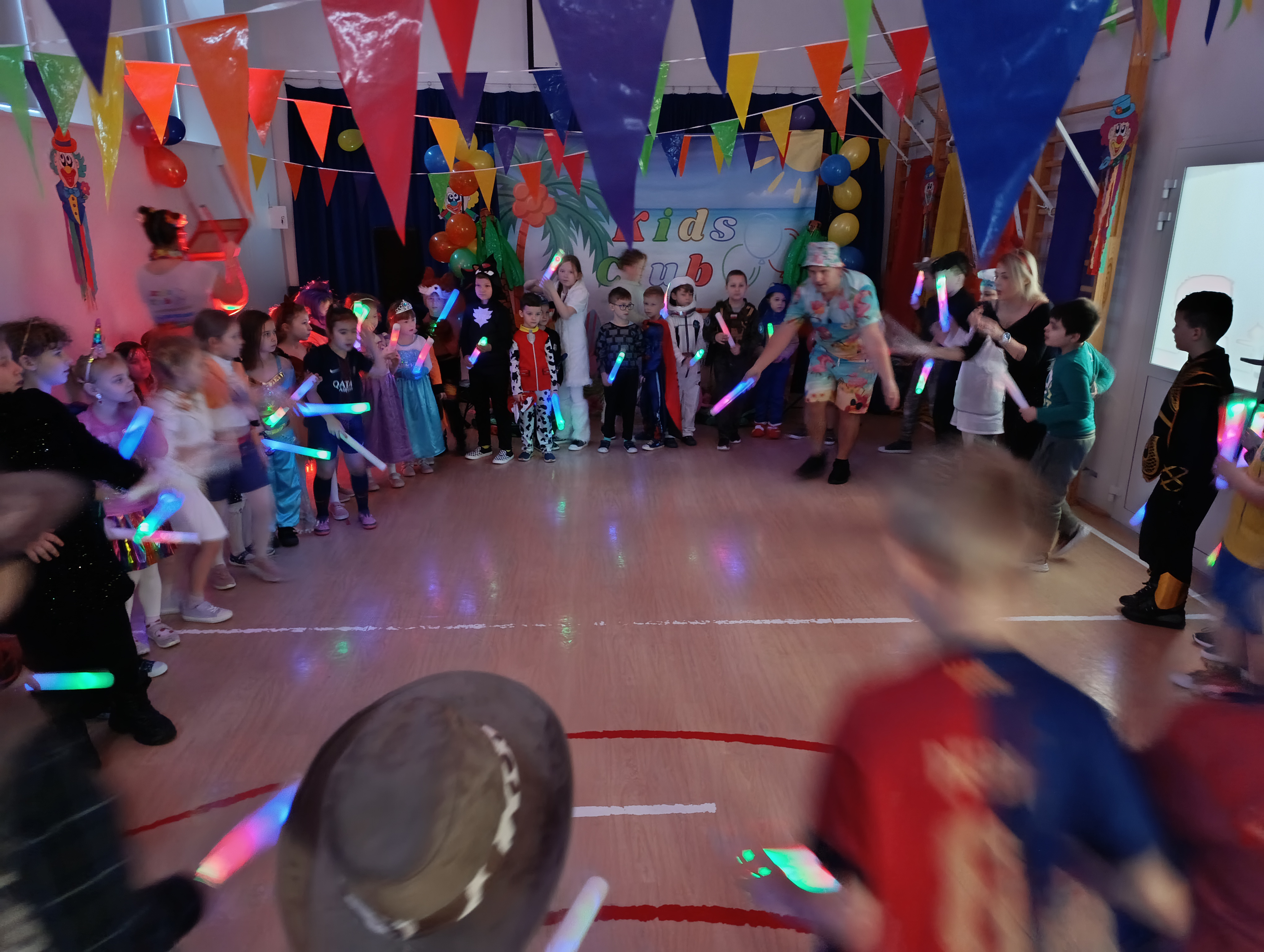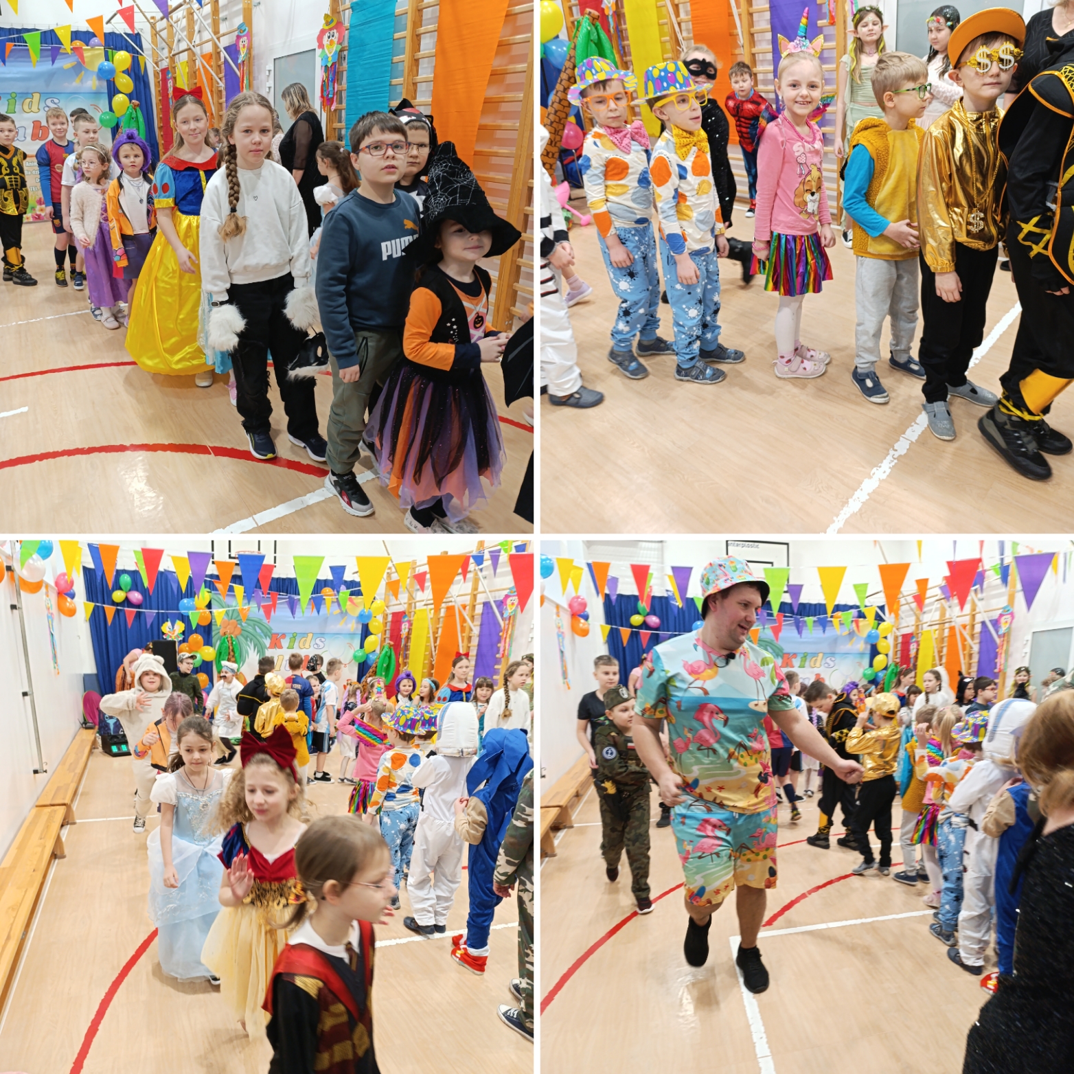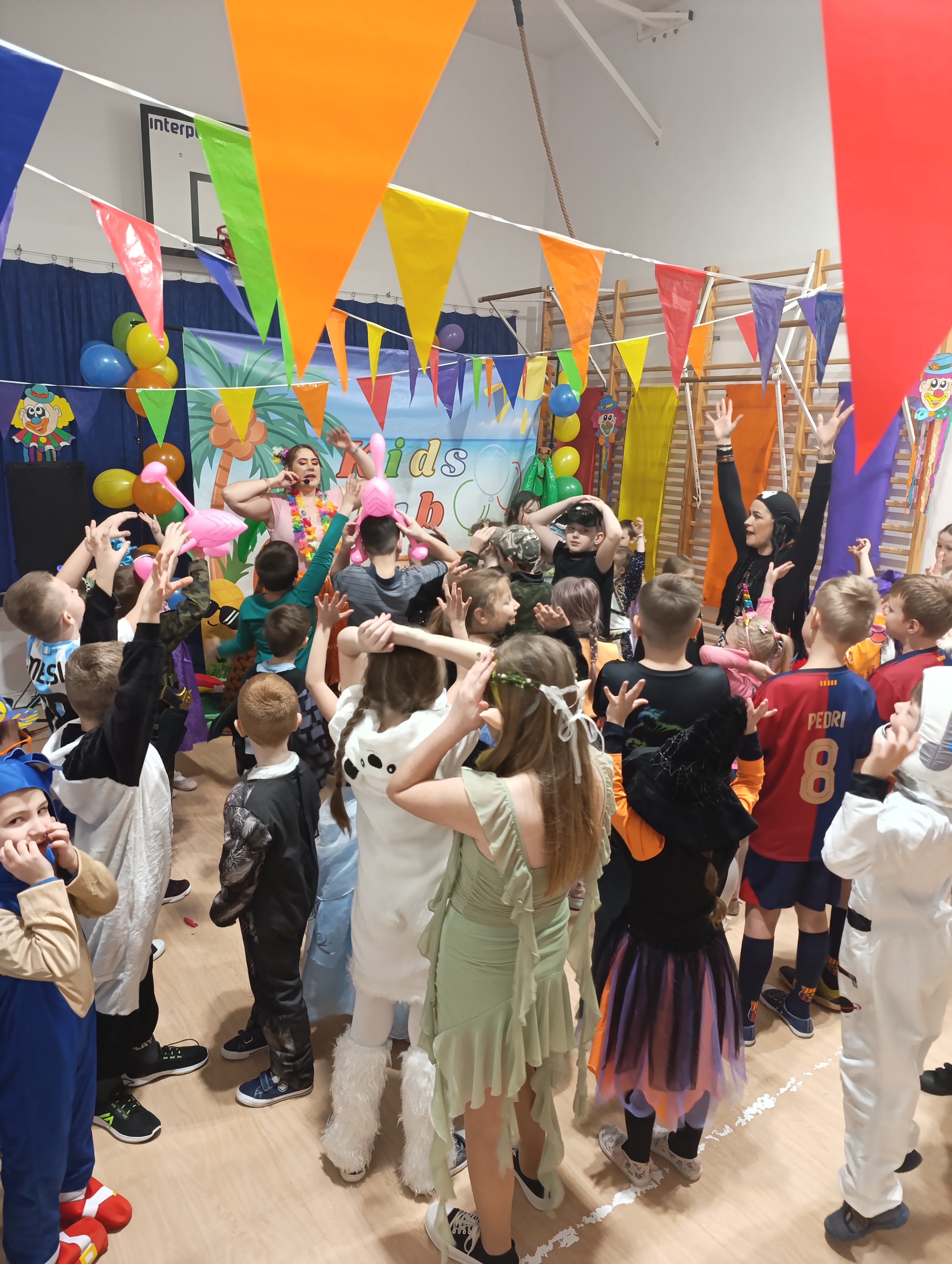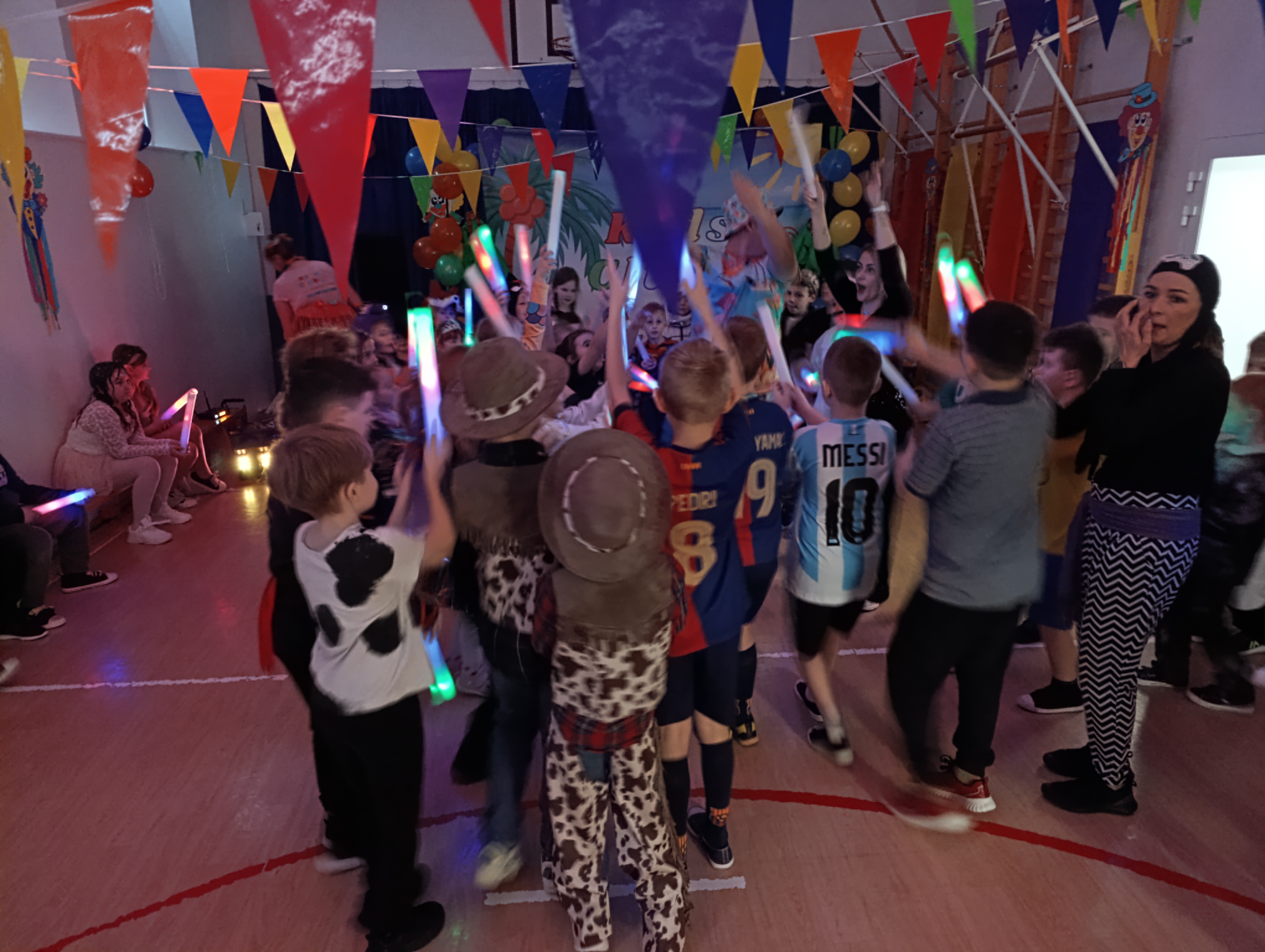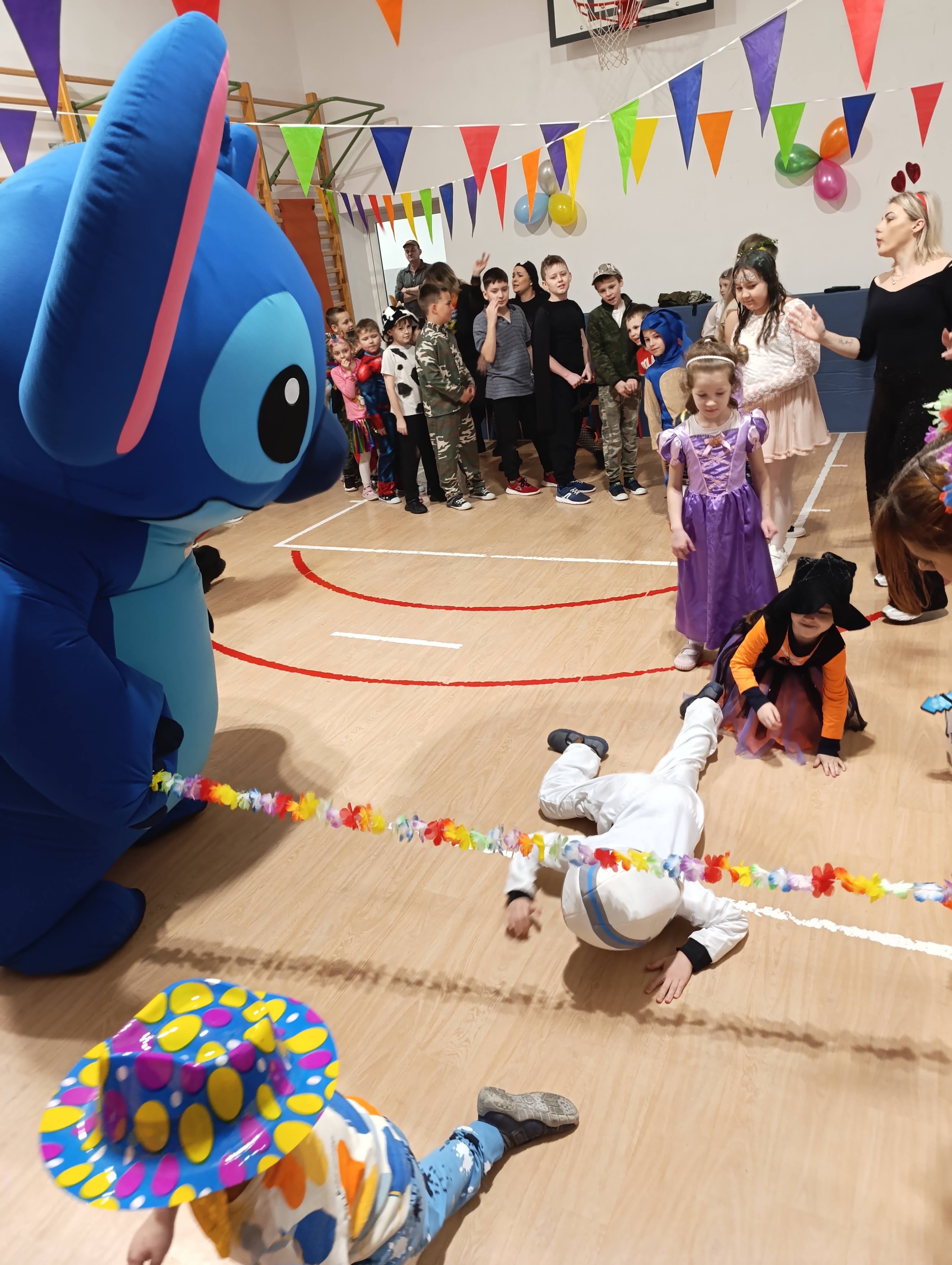 W naszej szkole 13 lutego odbył się Bal Karnawałowy dla uczniów klas 0–3. Tego dnia sala gimnastyczna zamieniła się w kolorową, pełną uśmiechu krainę zabawy. Na dzieci czekały animacje, wspólne tańce oraz liczne gry i zabawy, które dostarczyły wszystkim mnóstwo radości.