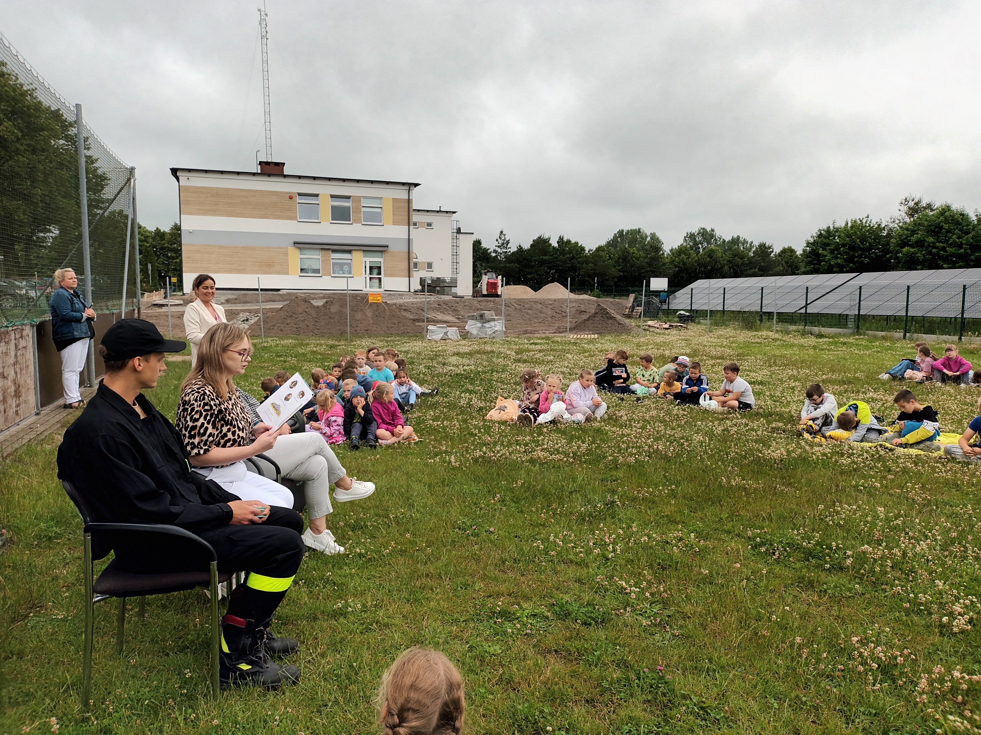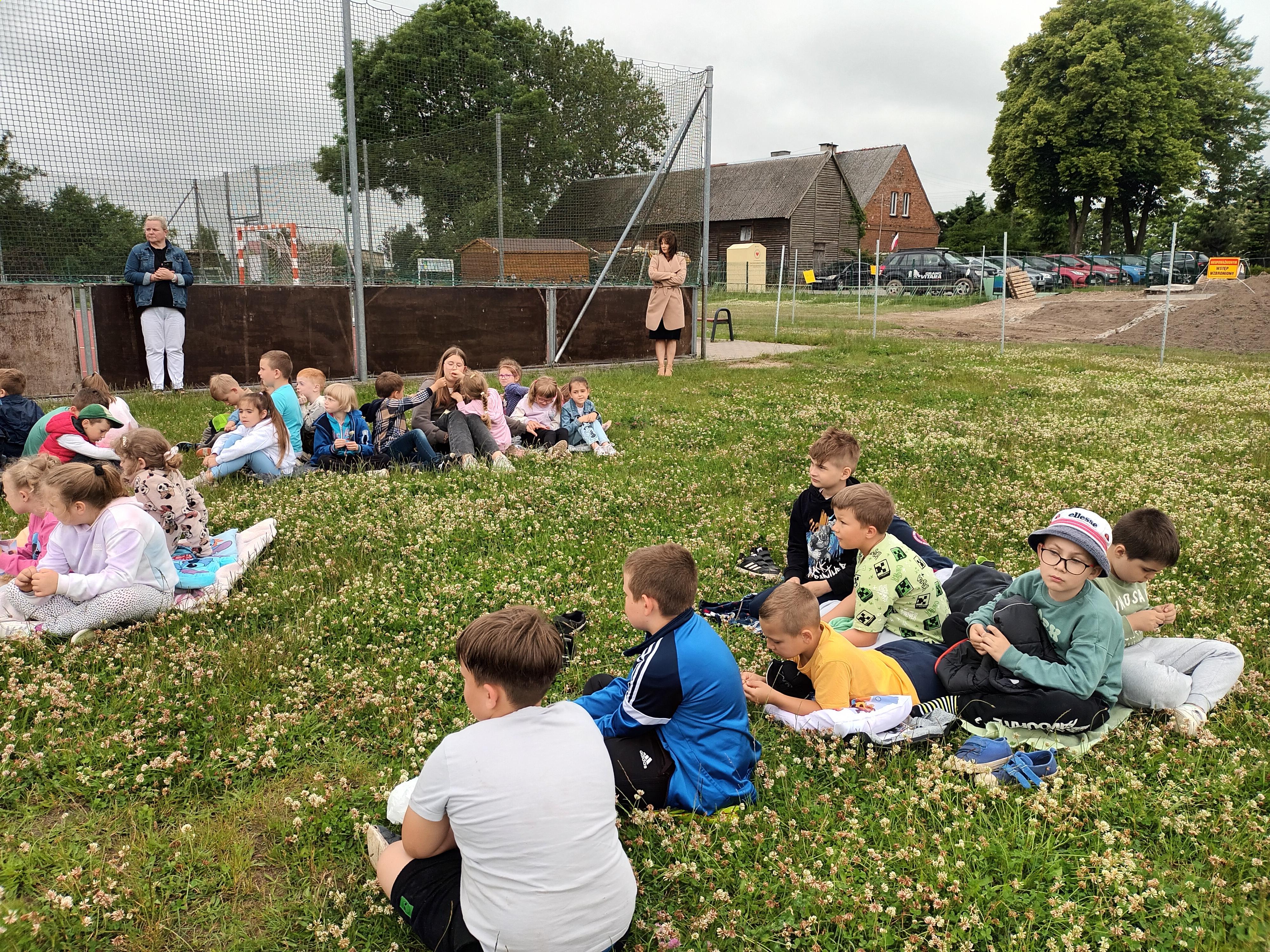 16 czerwca udaliśmy się wraz z nauczycielami na teren zielony koło "Jaskółki". Tam mogliśmy rozsiąść się wygodnie na kocykach. Głównym punktem imprezy było spotkanie z miłymi gośćmi: panią sołtys wsi Moszczenica oraz panem strażakiem, którzy przeczytali nam książkę pt. "Gruffalo" oraz humorystyczne wersje legend o Bazyliszku i Smoku Wawelskim autorstwa A. Frączek.