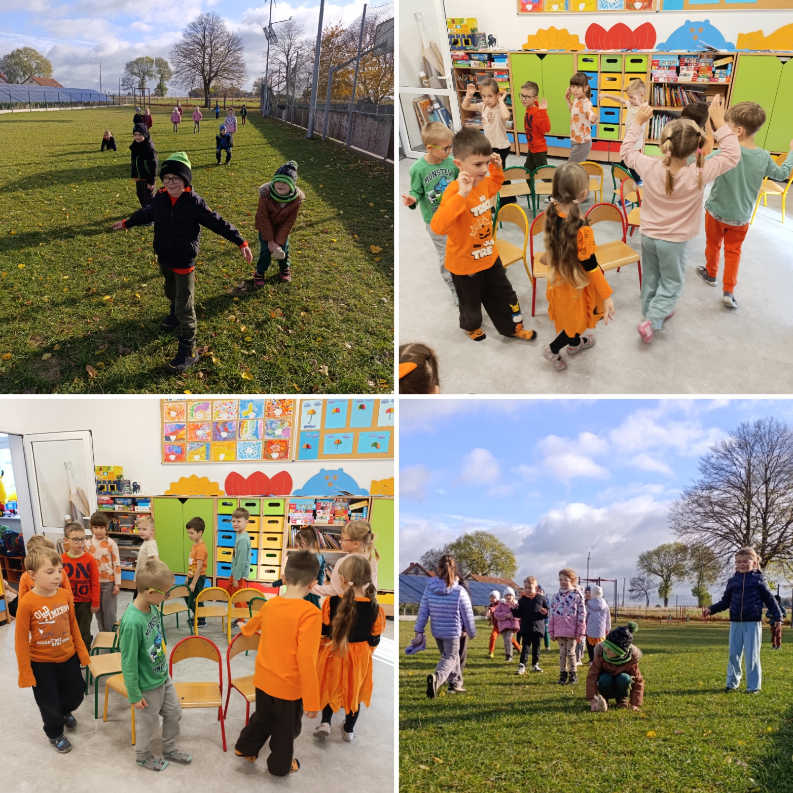 W naszej zerówce świętowaliśmy Dzień Dyni. Na początku dzieci szukały ukrytych w sali dyń. Potem układały je w zbiory, sprawdzały ich wagę oraz wielkość. Każdy podzielił się swoim pomysłem na wykorzystanie dyni w kuchni.