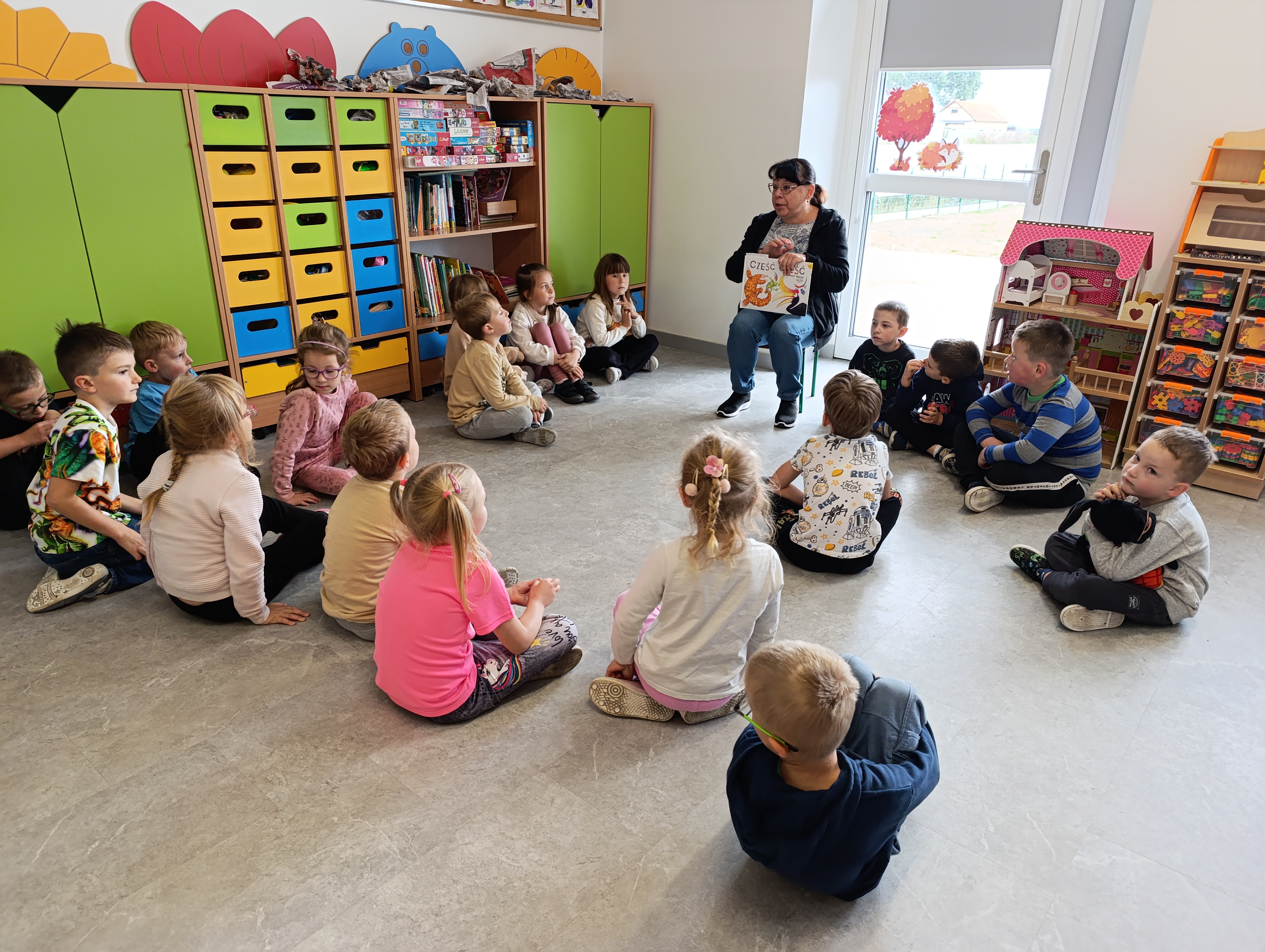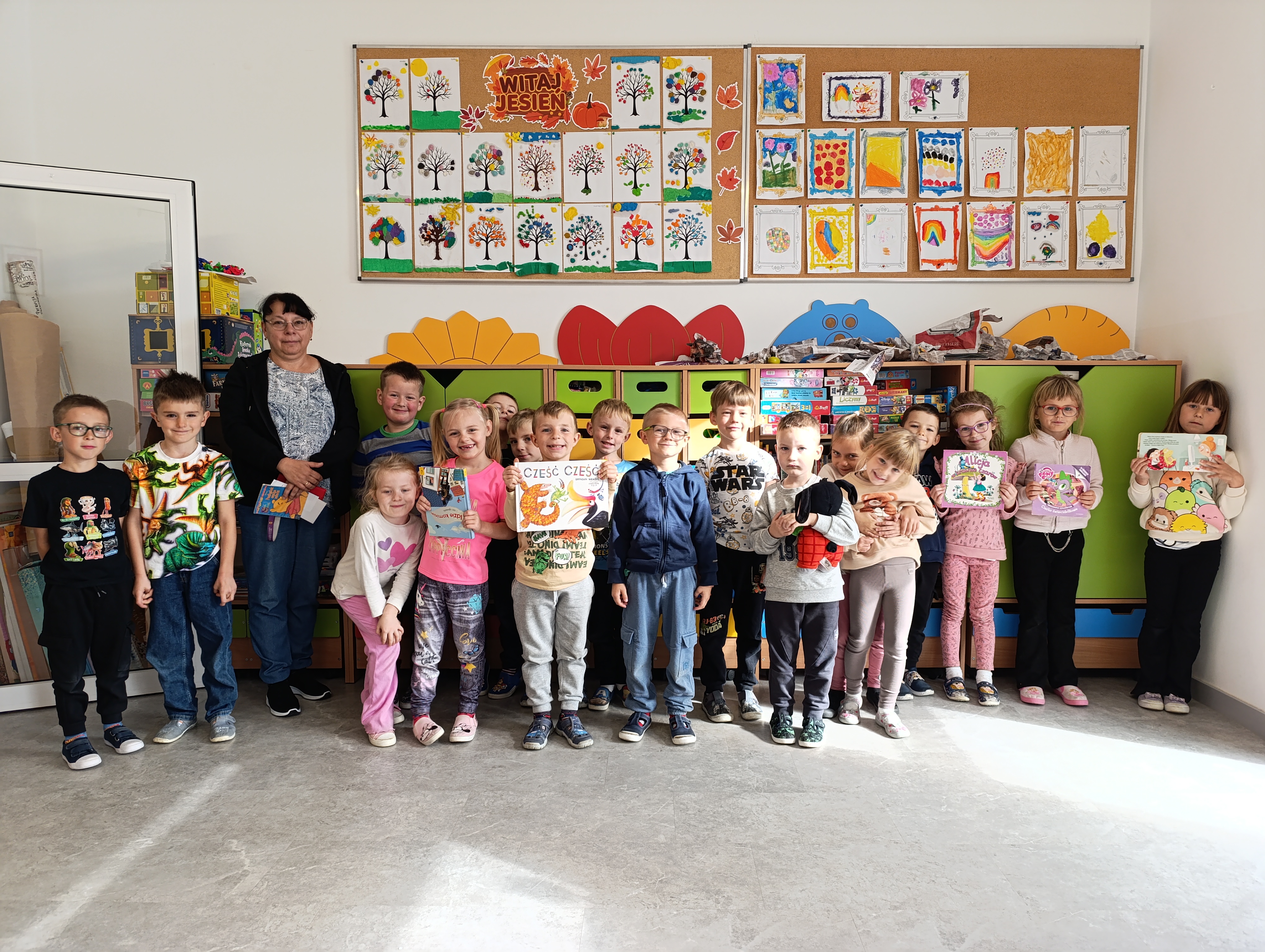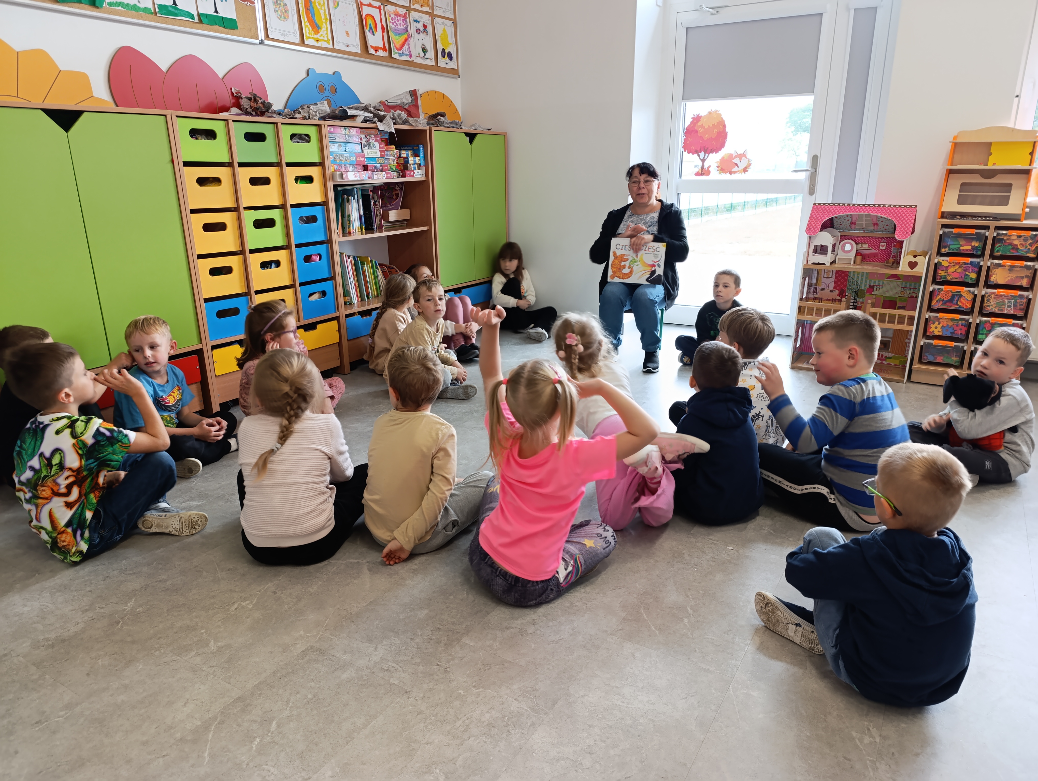 Z okazji Dnia Głośnego Czytania, w poniedziałek zerówkę odwiedziła pani Asia z biblioteki. Zaczarowała dzieci piękną książką „Cześć, Cześć”, którą wszyscy z ogromnym zainteresowaniem słuchali. Kolorowe ilustracje wzbudziły zachwyt i przyciągnęły uwagę młodych słuchaczy. Podczas wspólnego spotkania ustaliliśmy, że głośne czytanie to nie tylko nauka, ale przede wszystkim przyjemnie spędzony czas. Dziękujemy pani Asi za inspirującą wizytę i już nie możemy doczekać się kolejnych czytelniczych spotkań.