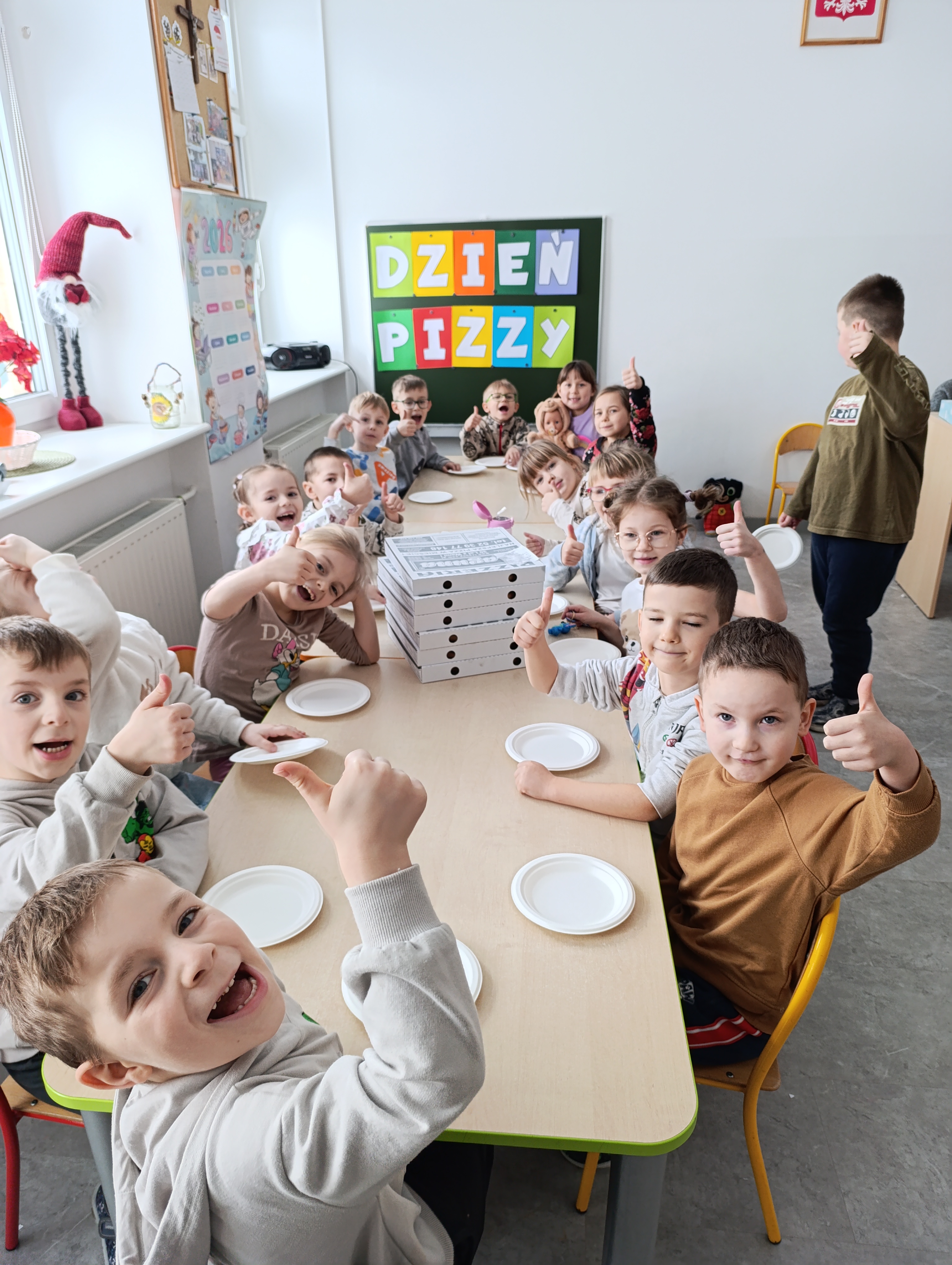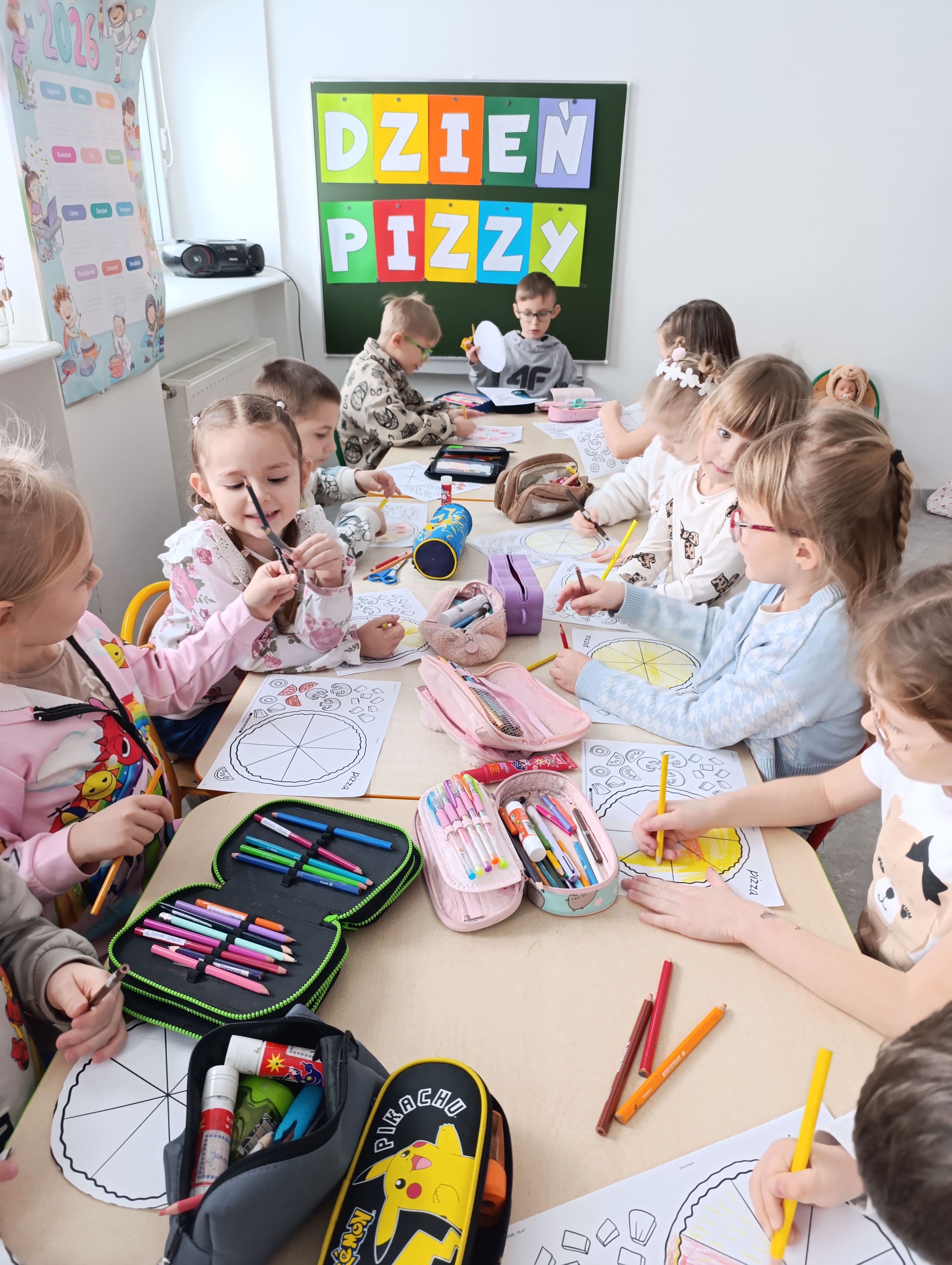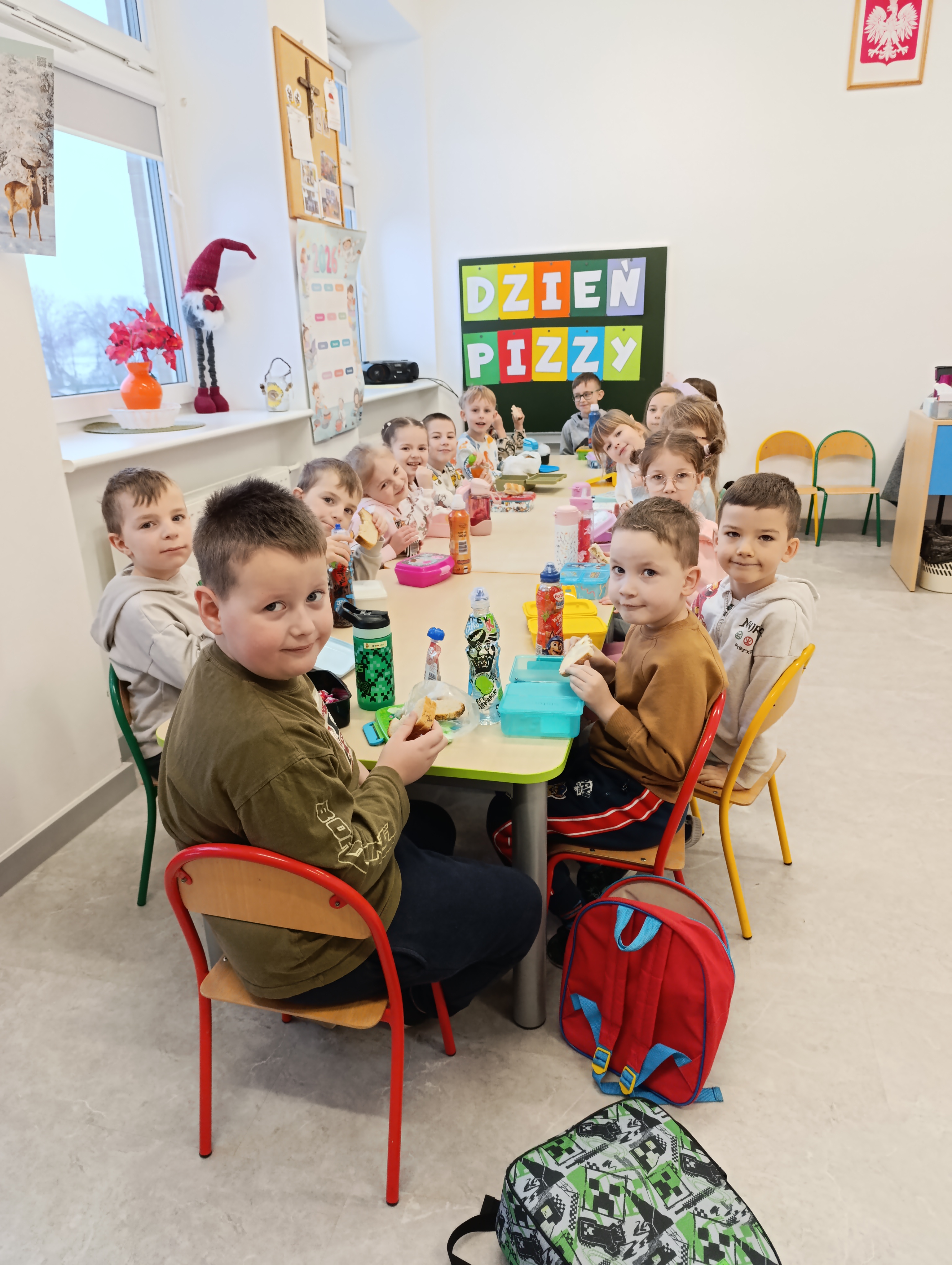 W poniedziałek, 9 lutego w całej szkole unosił się przyjemny zapach drożdżowego ciasta, sera i pomidorów! A my świętowaliśmy międzynarodowy Dzień Pizzy. Zaczęliśmy od porannej rozgrzewki do rytmów włoskich hitów a następnie zjedliśmy wspólnie śniadanie. Podczas zajęć dzieci poznały historię pizzy oraz wiele ciekawostek związanych z chociażby wyrabianiem ciasta. Przez cały dzień towarzyszyły nam gry i zabawy z wykorzystaniem kartonów "na wynos" lub poszczególnych produktów, rozwiązywaliśmy zagadki, labirynty i tworzyliśmy kolorowe prace. Na koniec przyjechała do nas gorąca, pachnąca pizza - i nie został nam ani jeden kawałek, bo była pyszna!