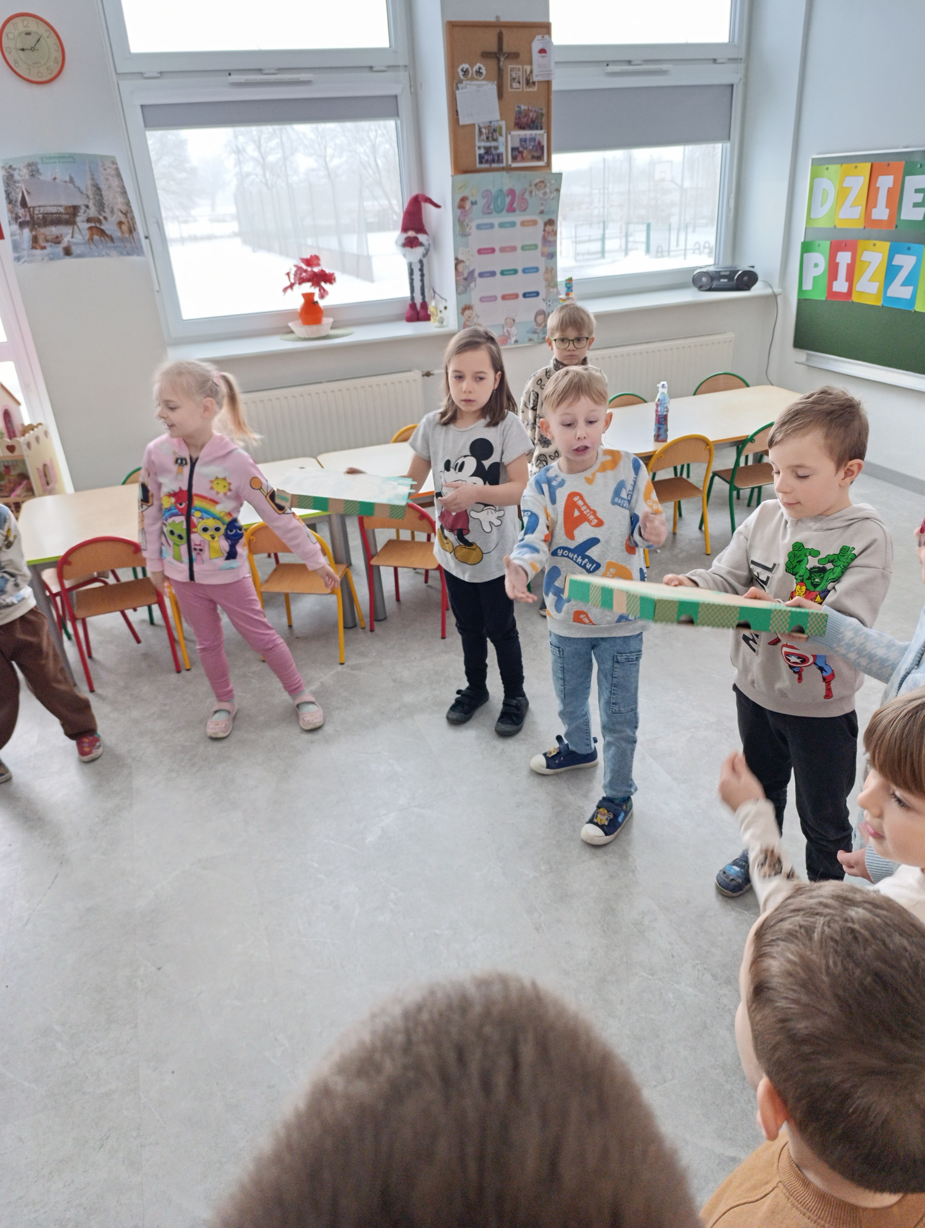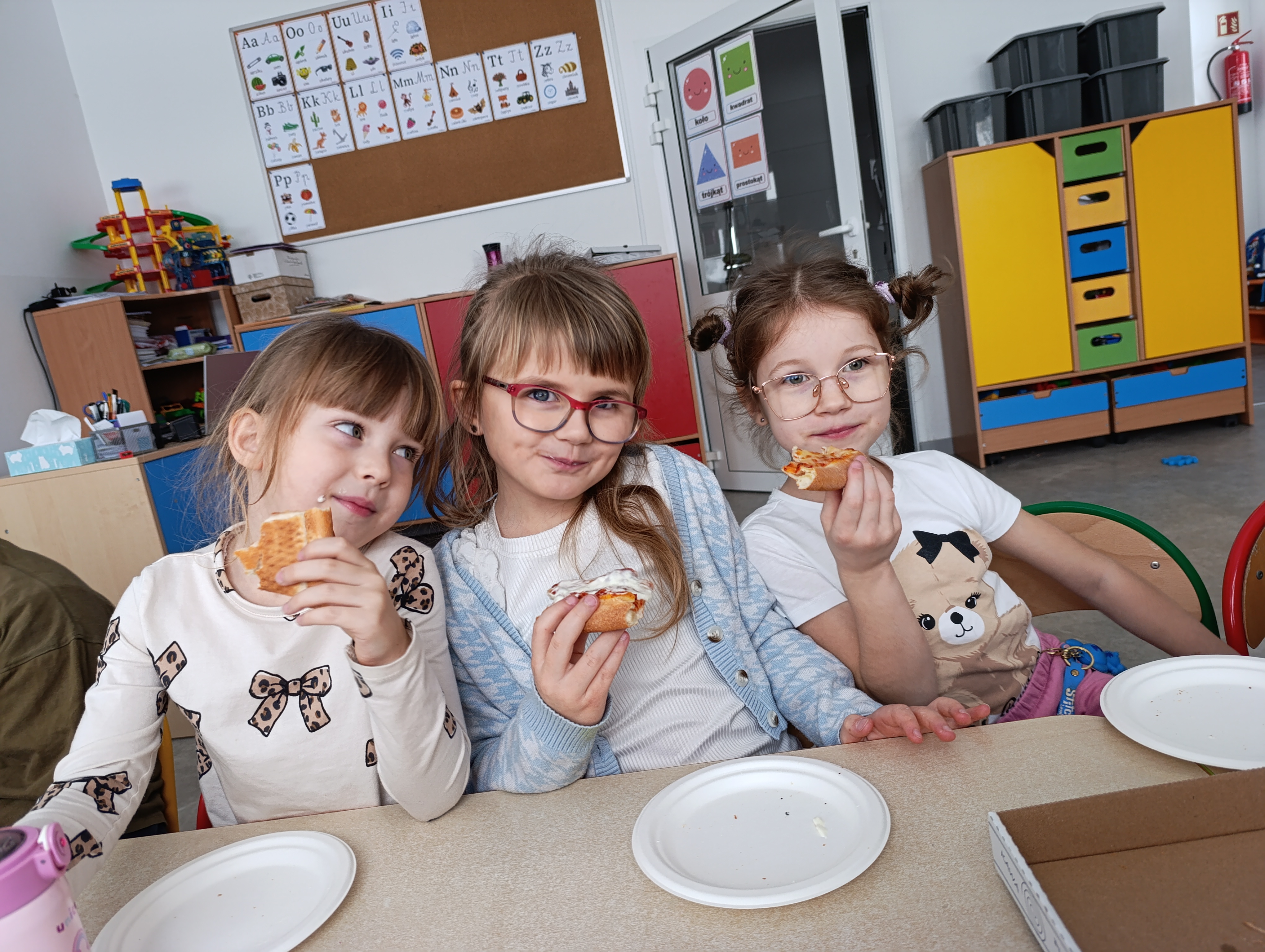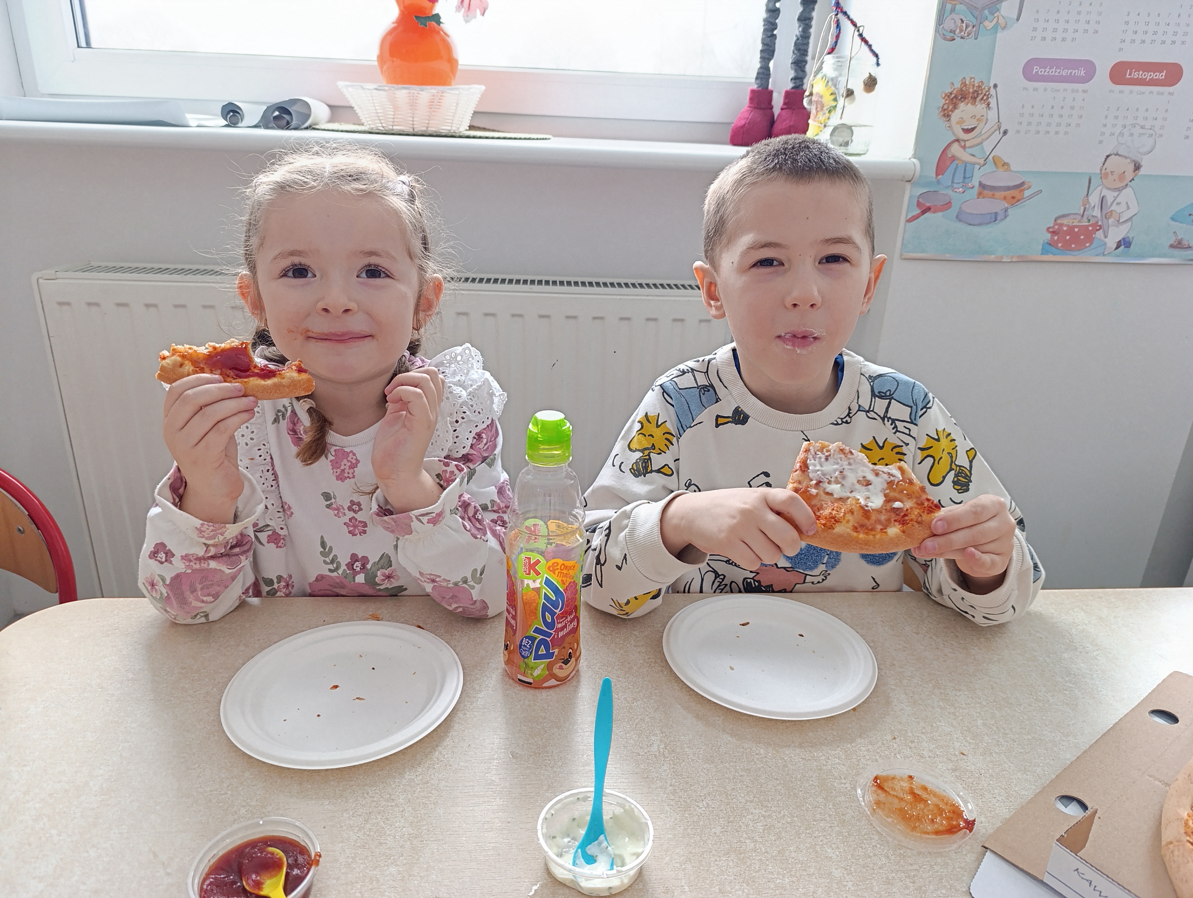 W poniedziałek, 9 lutego w całej szkole unosił się przyjemny zapach drożdżowego ciasta, sera i pomidorów! A my świętowaliśmy międzynarodowy Dzień Pizzy. Zaczęliśmy od porannej rozgrzewki do rytmów włoskich hitów a następnie zjedliśmy wspólnie śniadanie. Podczas zajęć dzieci poznały historię pizzy oraz wiele ciekawostek związanych z chociażby wyrabianiem ciasta. Przez cały dzień towarzyszyły nam gry i zabawy z wykorzystaniem kartonów "na wynos" lub poszczególnych produktów, rozwiązywaliśmy zagadki, labirynty i tworzyliśmy kolorowe prace. Na koniec przyjechała do nas gorąca, pachnąca pizza - i nie został nam ani jeden kawałek, bo była pyszna!