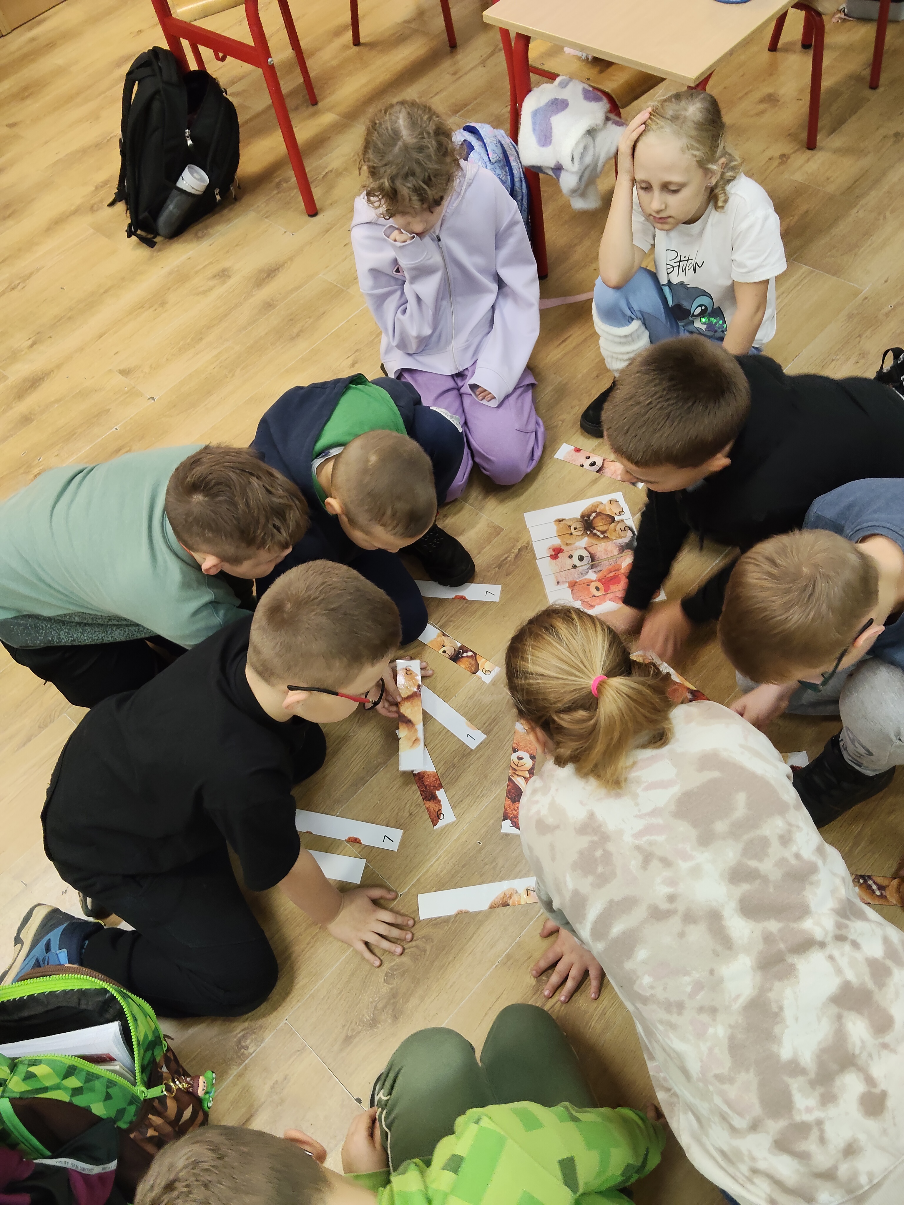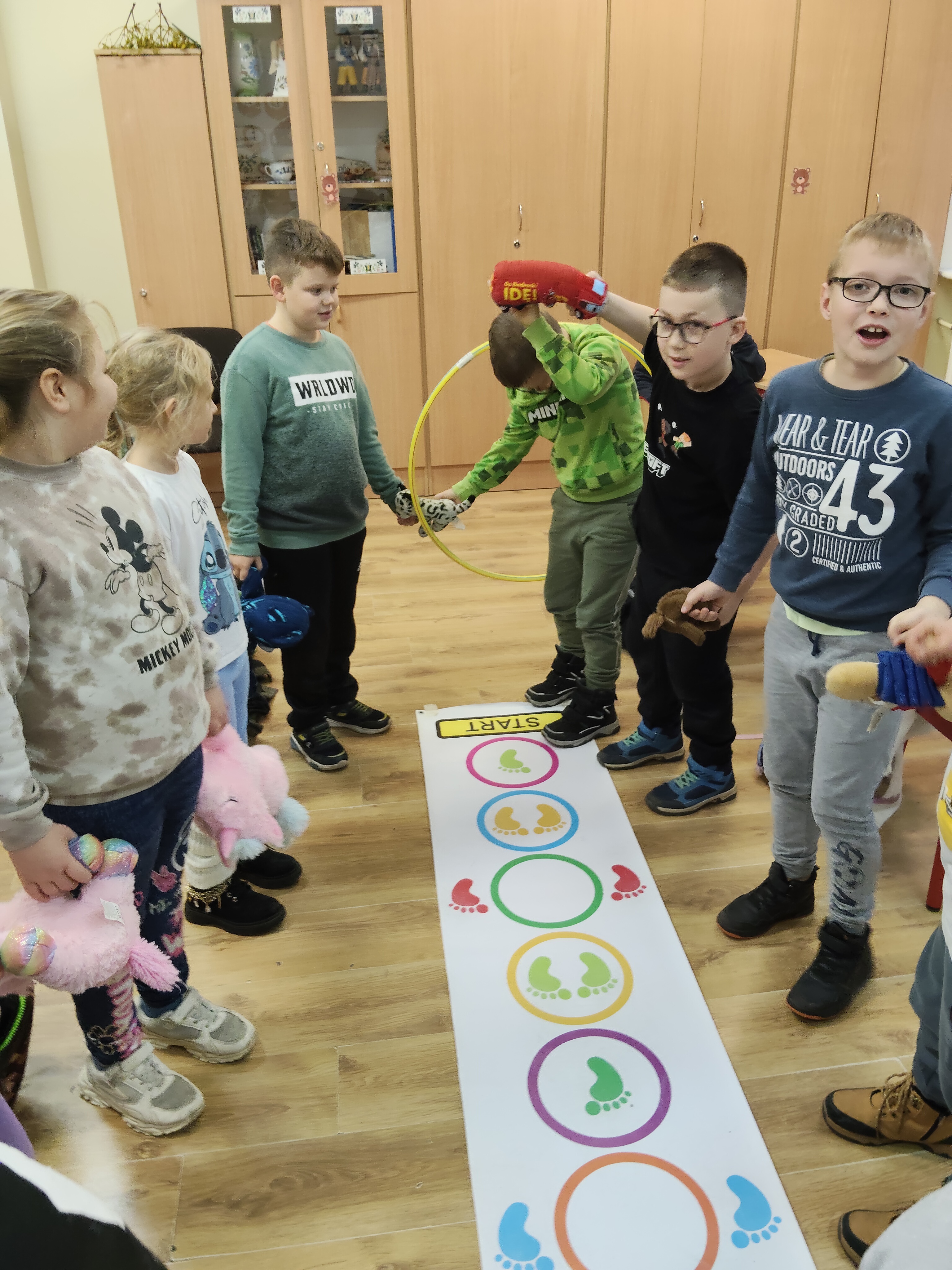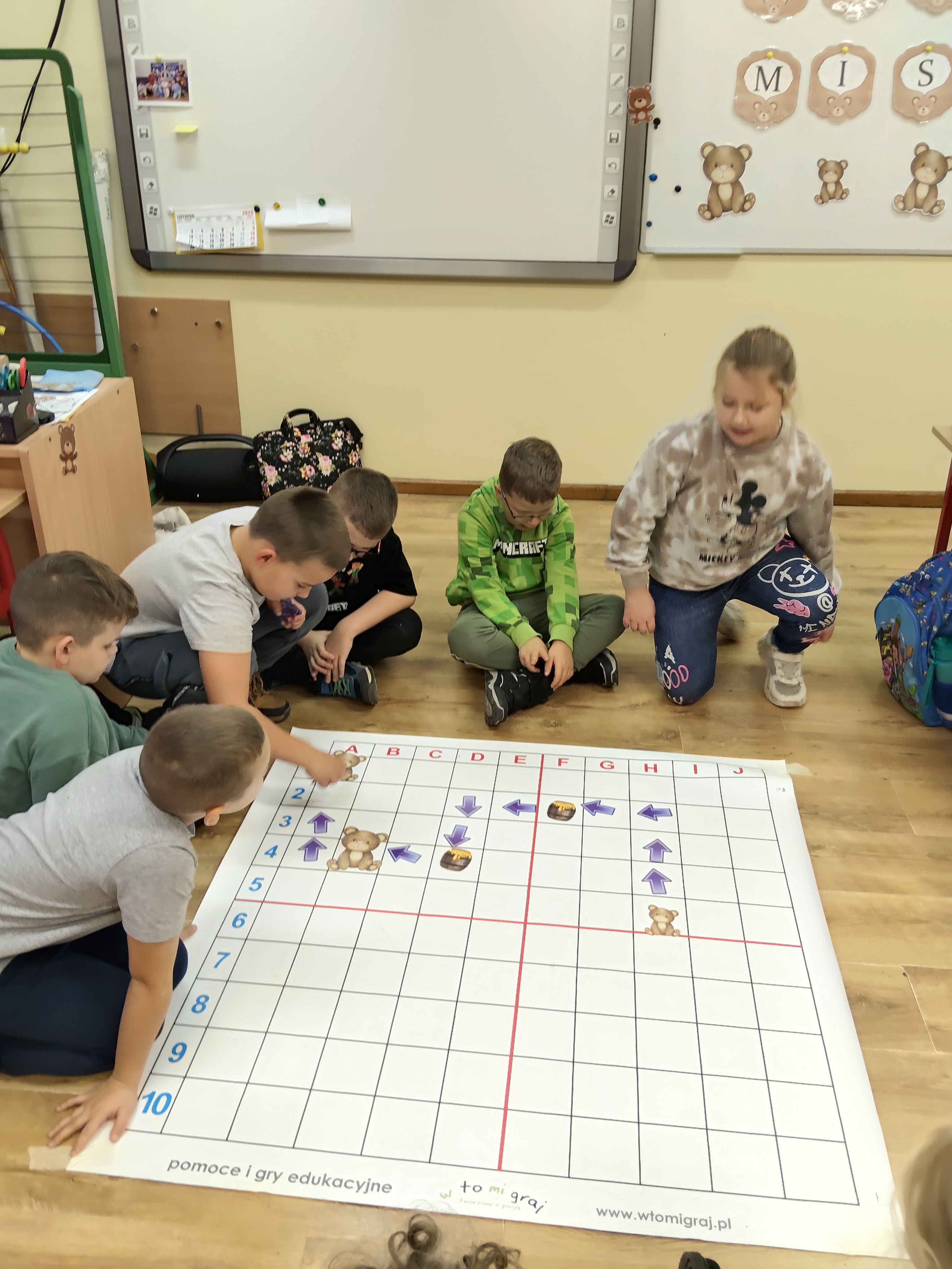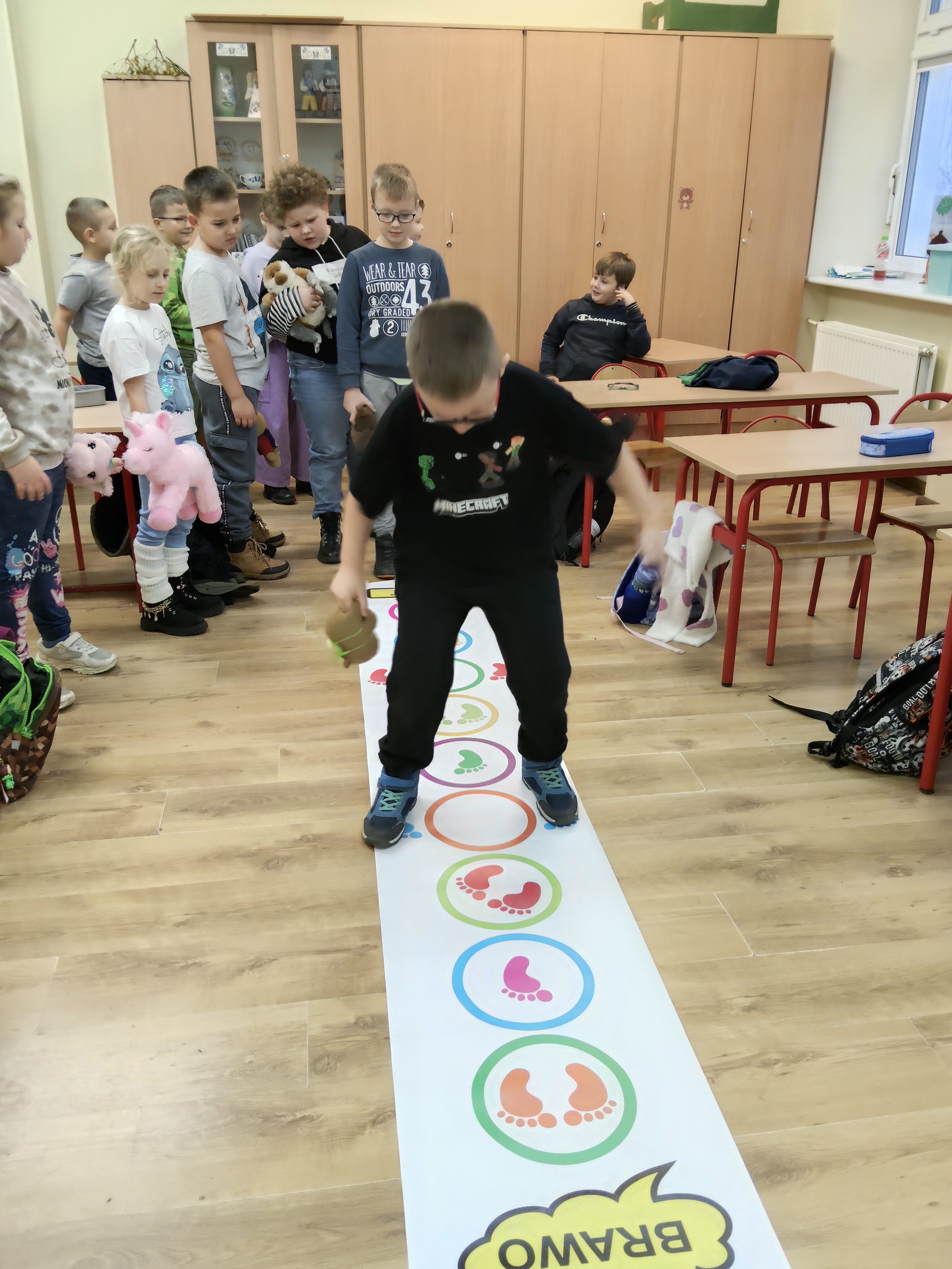 Następnie braliśmy udział w zabawach matematycznych m.in. kodowaniu. Wplatając edukację polonistyczną tworzyliśmy słowa mając na uwadze poznane zasady ortografii. Na zakończenie bawiliśmy się w muzyczno-ruchowe zabawy.