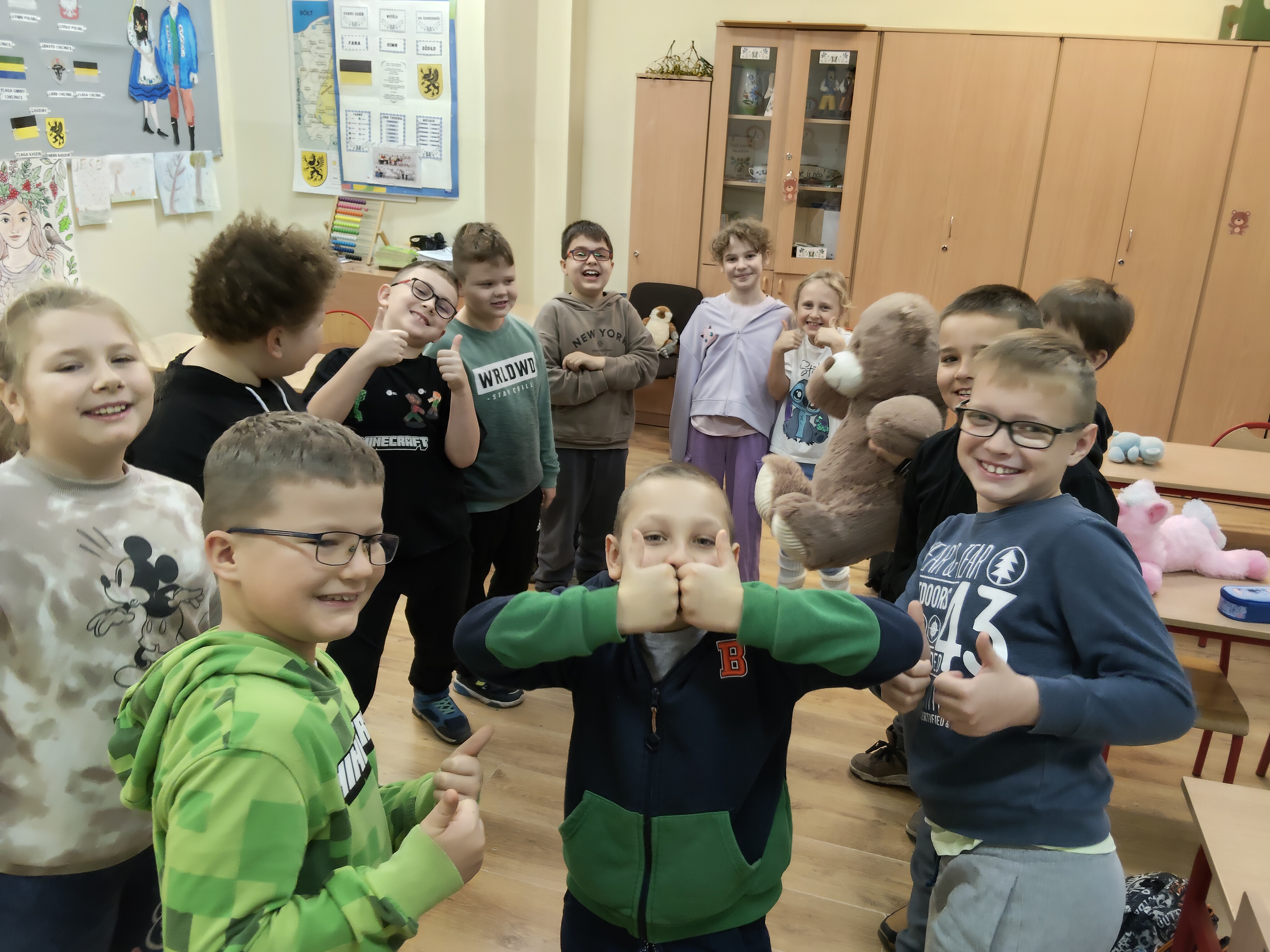 W naszej klasie obchodziliśmy Dzień Pluszowego Misia. Każde dziecko przyniosło swojego ulubionego misia i opowiedziało o nim kilka słów.