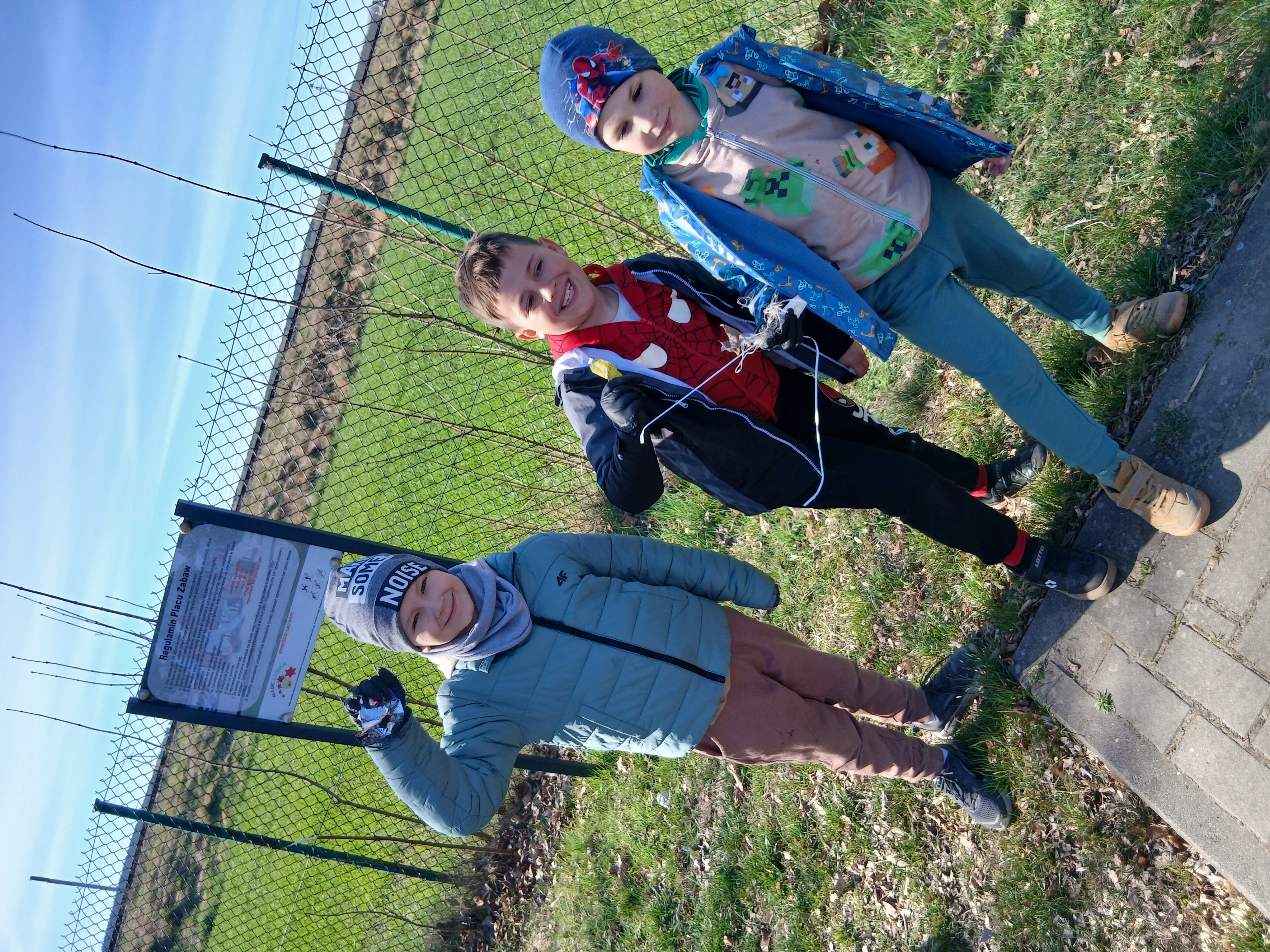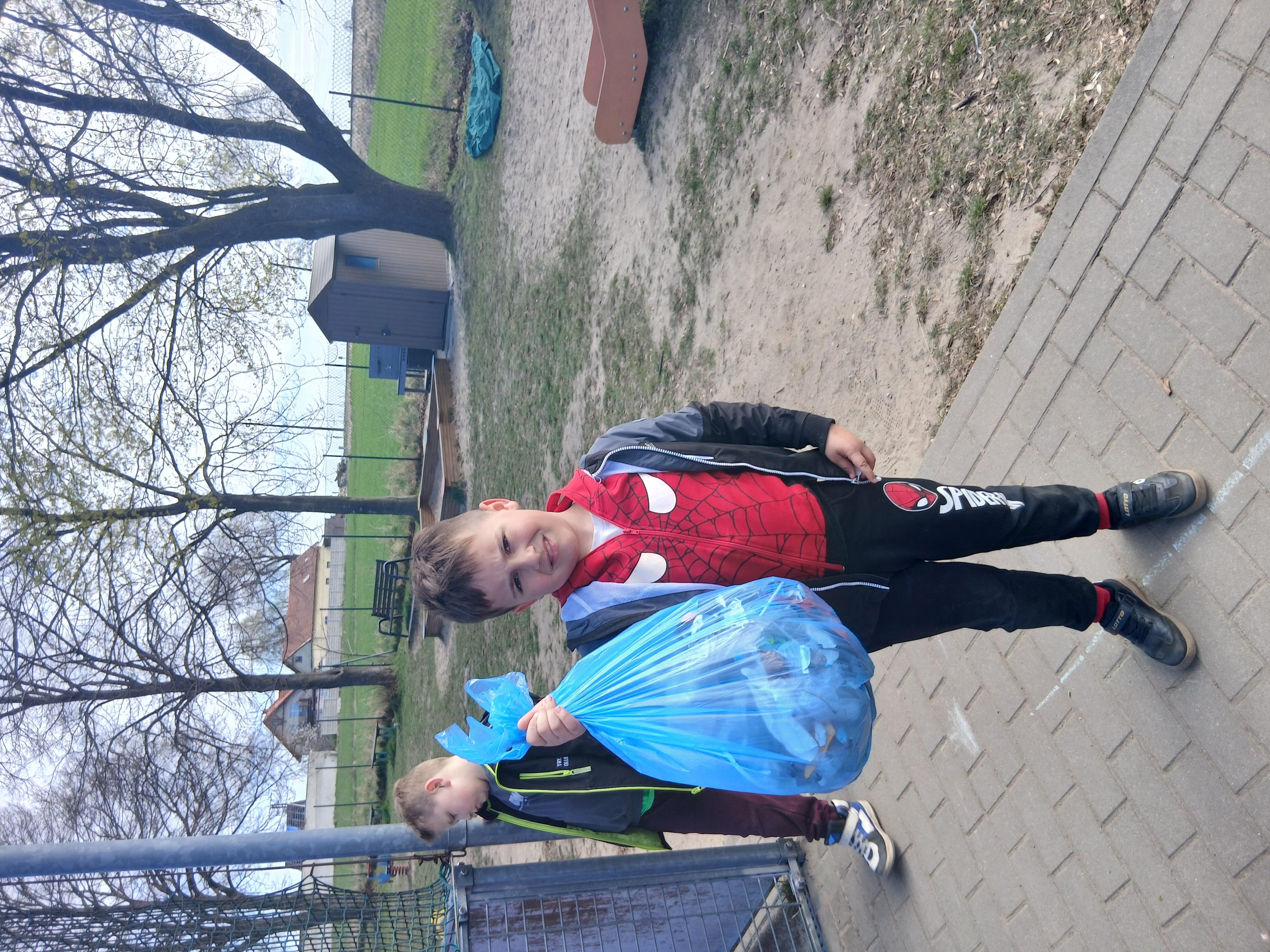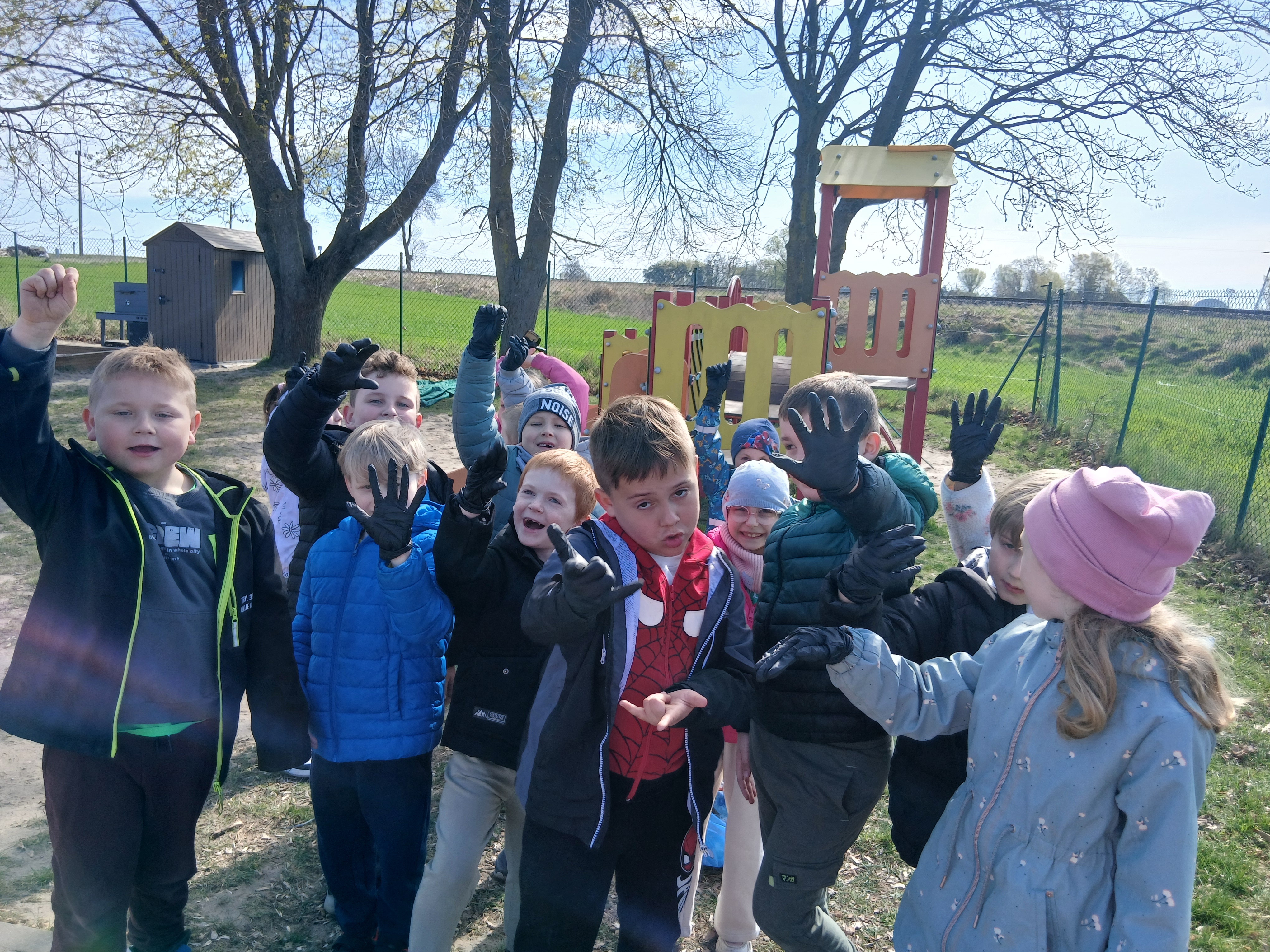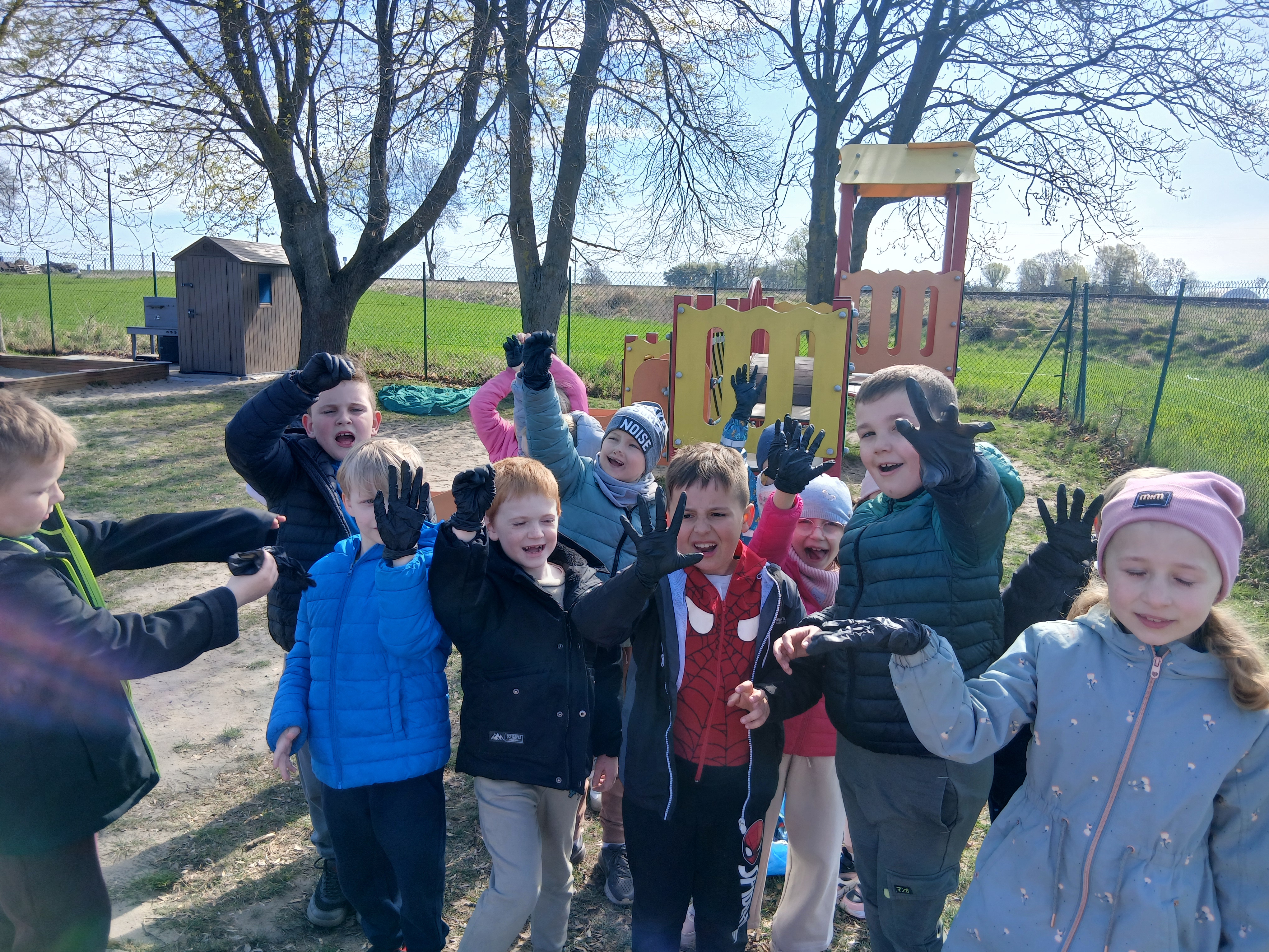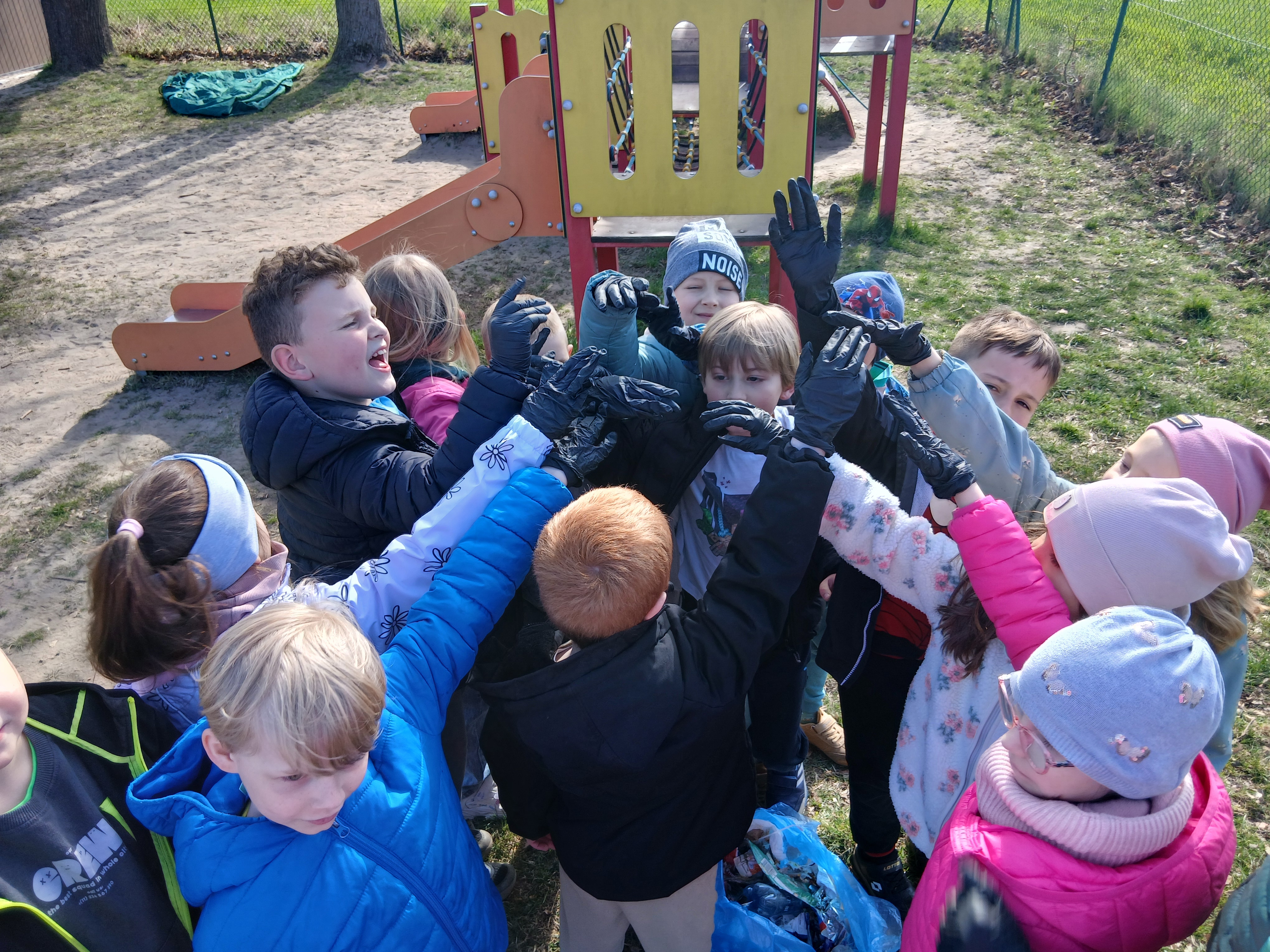 Klasa 1 postanowiła zadbać o środowisko i posprzątać boisko szkolne. Uczniowie z zaangażowaniem zbierali śmieci, pokazując, jak ważna jest troska o naszą planetę.