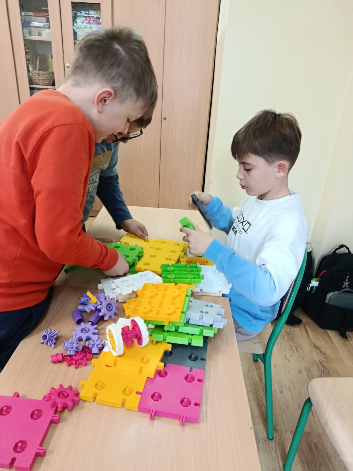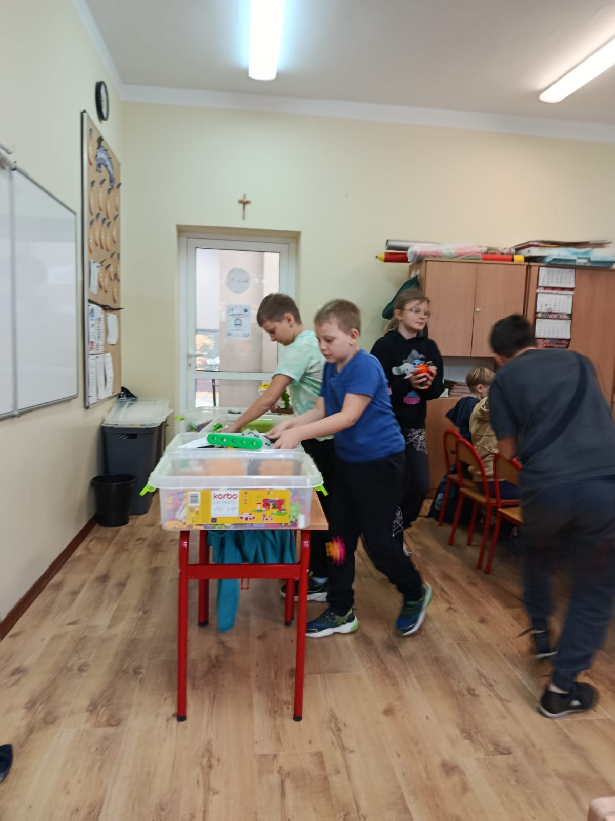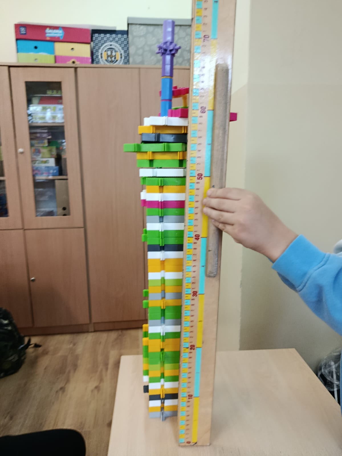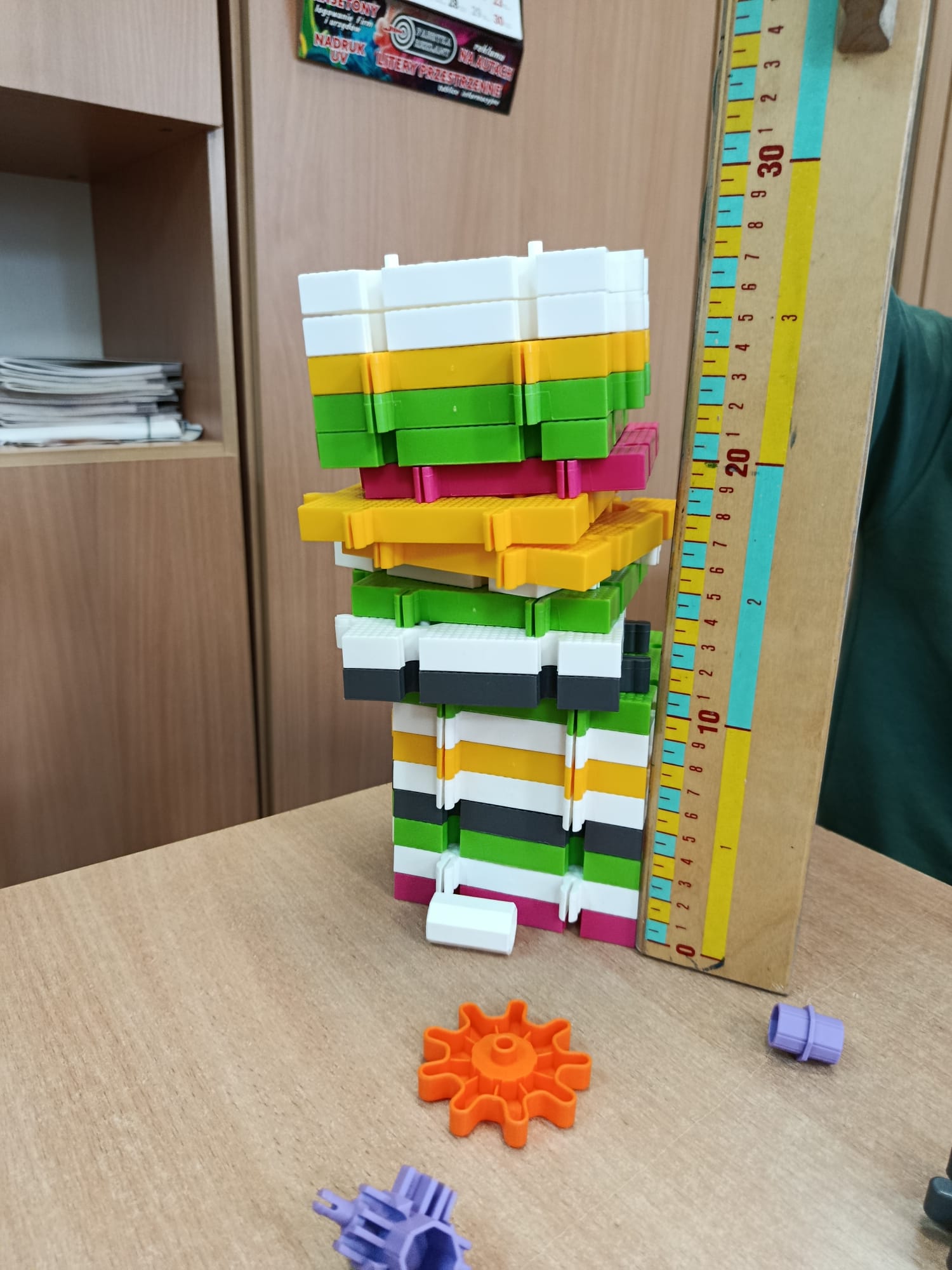 3. Budowaliśmy wieżę z klocków – nie tylko liczyła się jej wysokość, ale też szybkość przynoszenia klocków do grupy i wybór tych odpowiednich. Emocje były na wysokim poziomie!