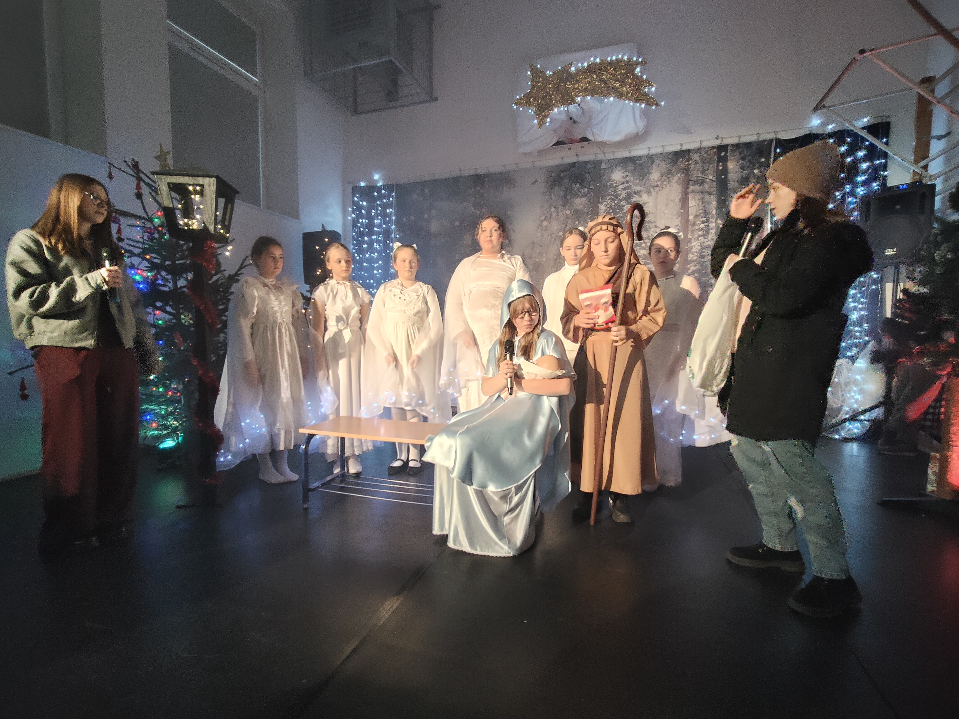 W naszej szkole odbyło się wyjątkowe spotkanie jasełkowe z udziałem seniorów. Uczniowie zaprezentowali wzruszające przedstawienie bożonarodzeniowe, które wprowadziło wszystkich w atmosferę radości, nadziei i wspólnego przeżywania tajemnicy Bożego Narodzenia.