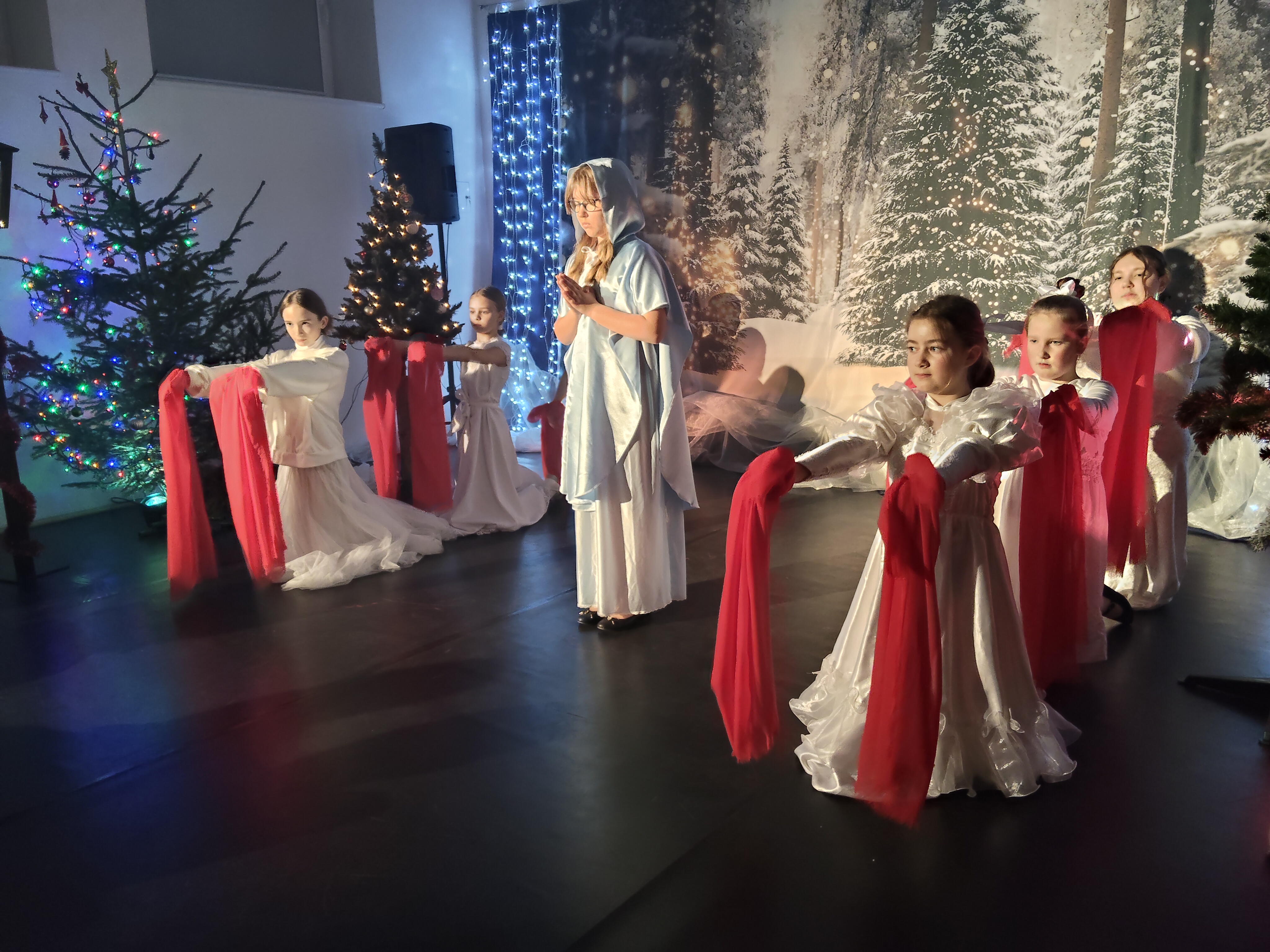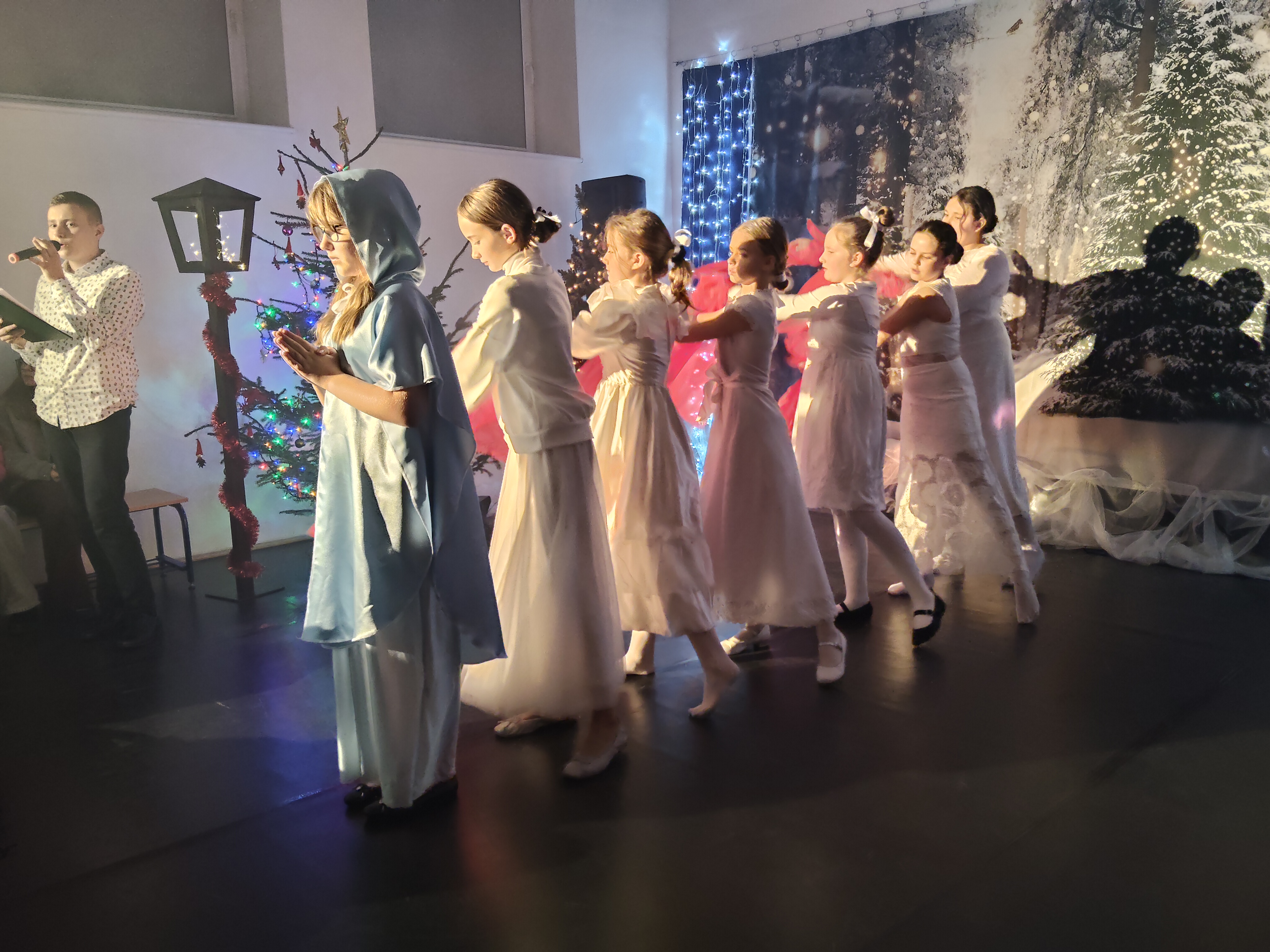 W tym samym czasie rodzice mieli okazję obejrzeć przedstawienie jasełkowe przygotowane przez uczniów. Występ był pięknym dopełnieniem świątecznego spotkania i dostarczył wielu wzruszeń oraz radości. To wspólne wydarzenie stało się okazją do integracji całej społeczności szkolnej i podkreśliło wyjątkowy charakter nadchodzących Świąt Bożego Narodzenia.