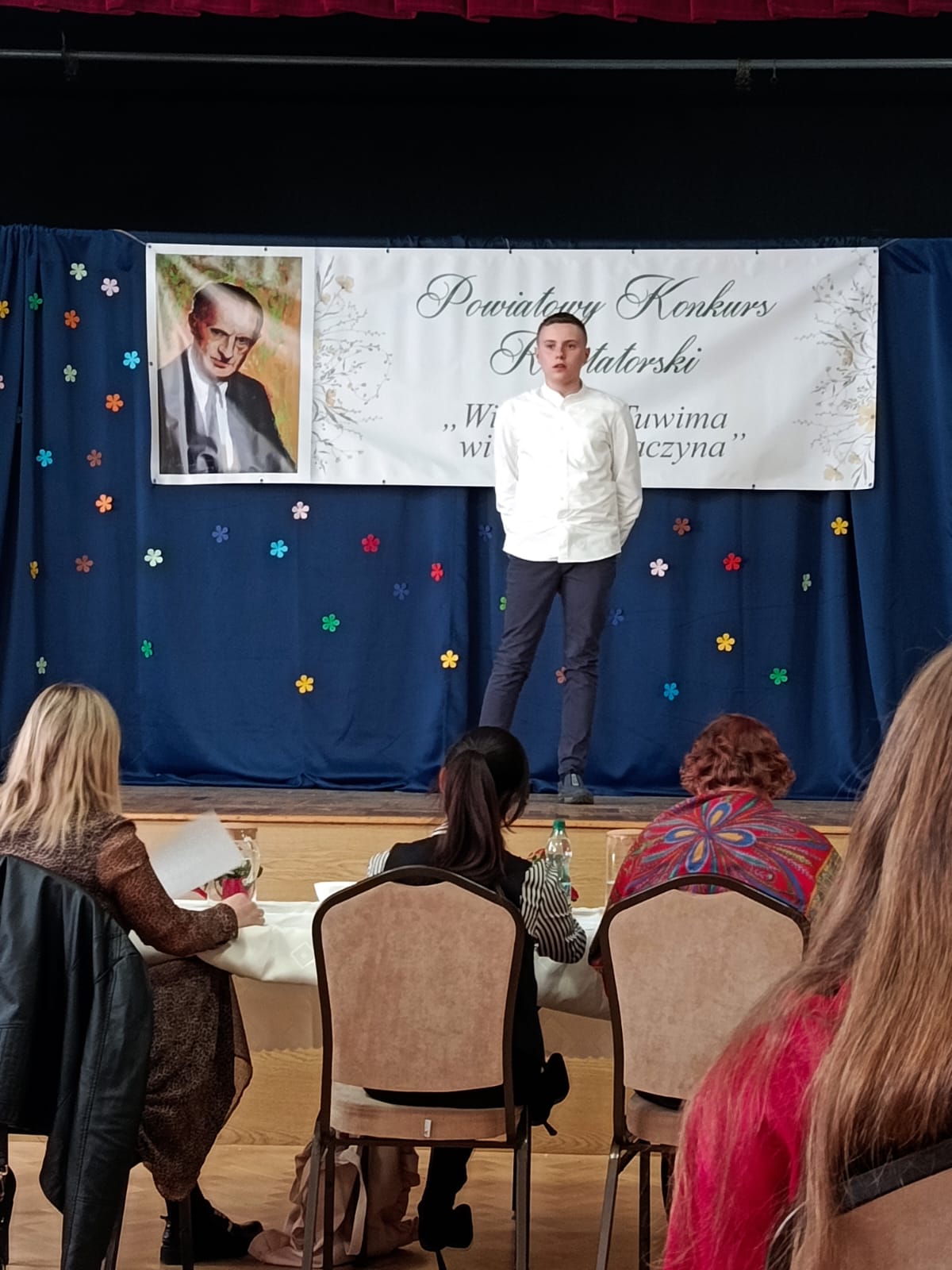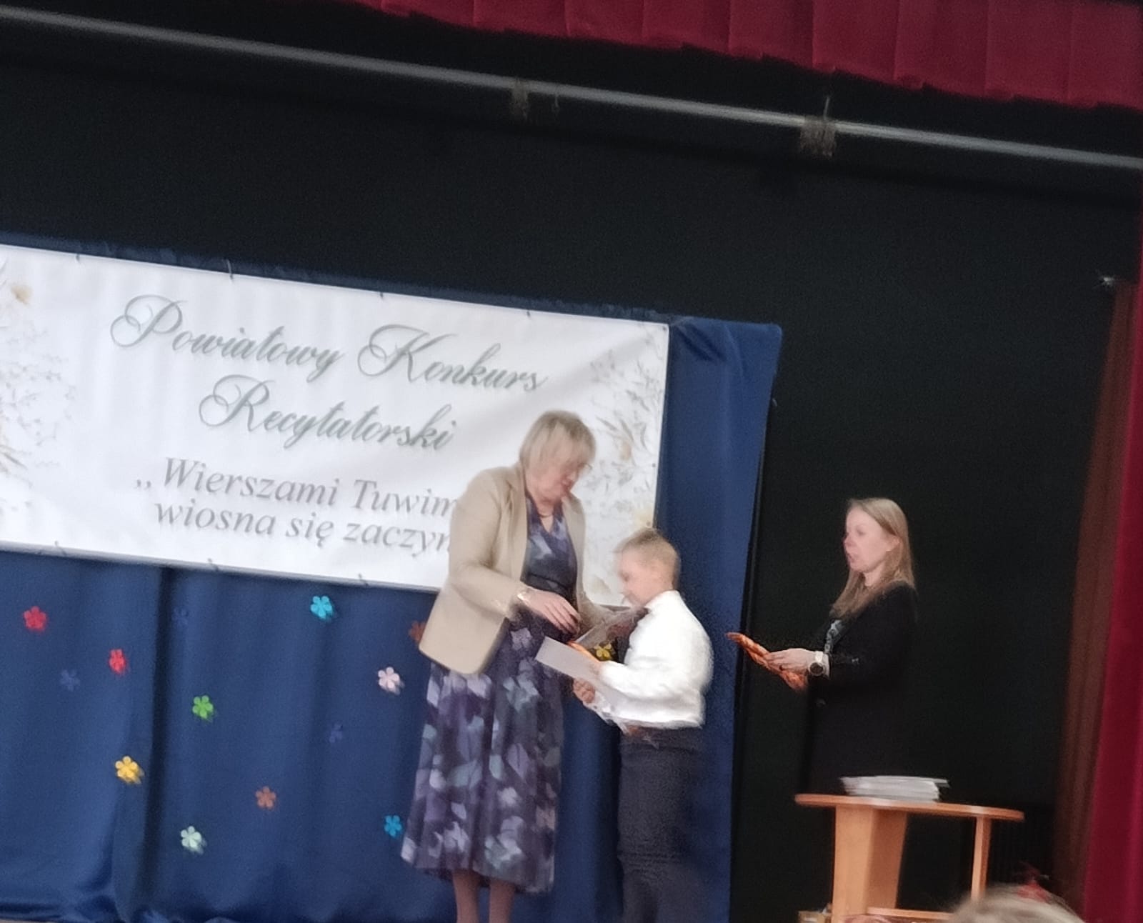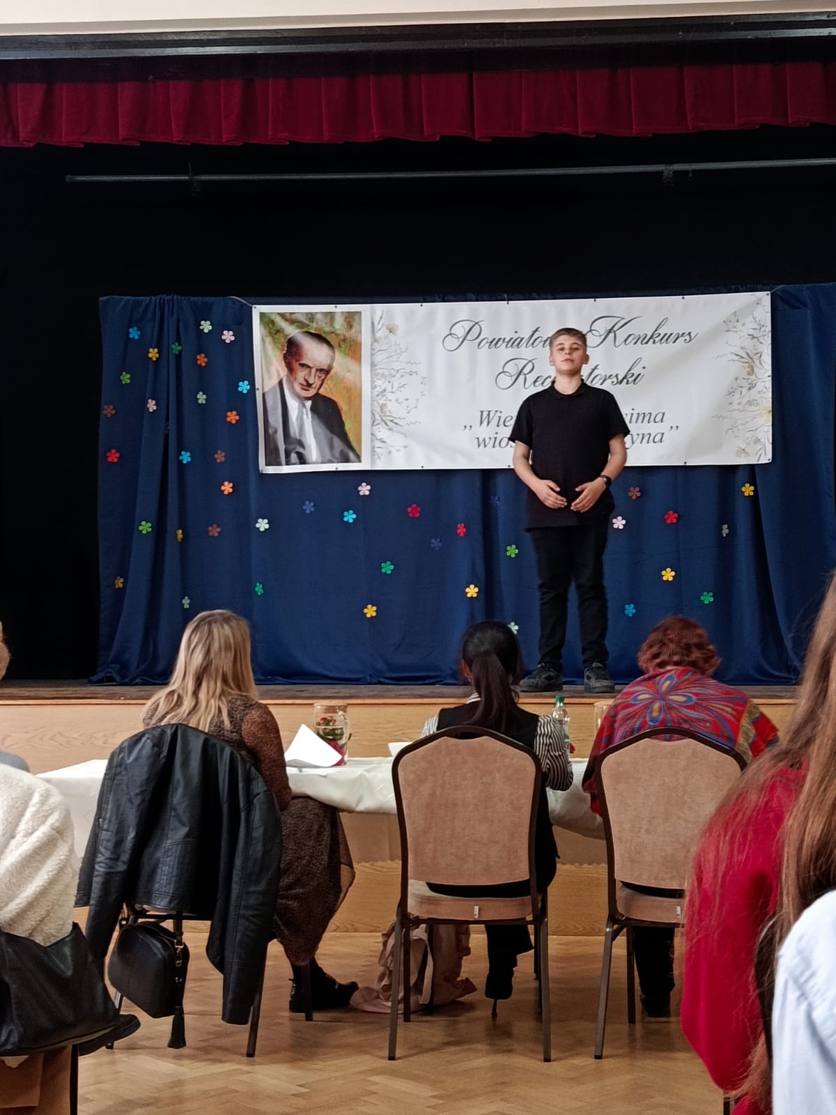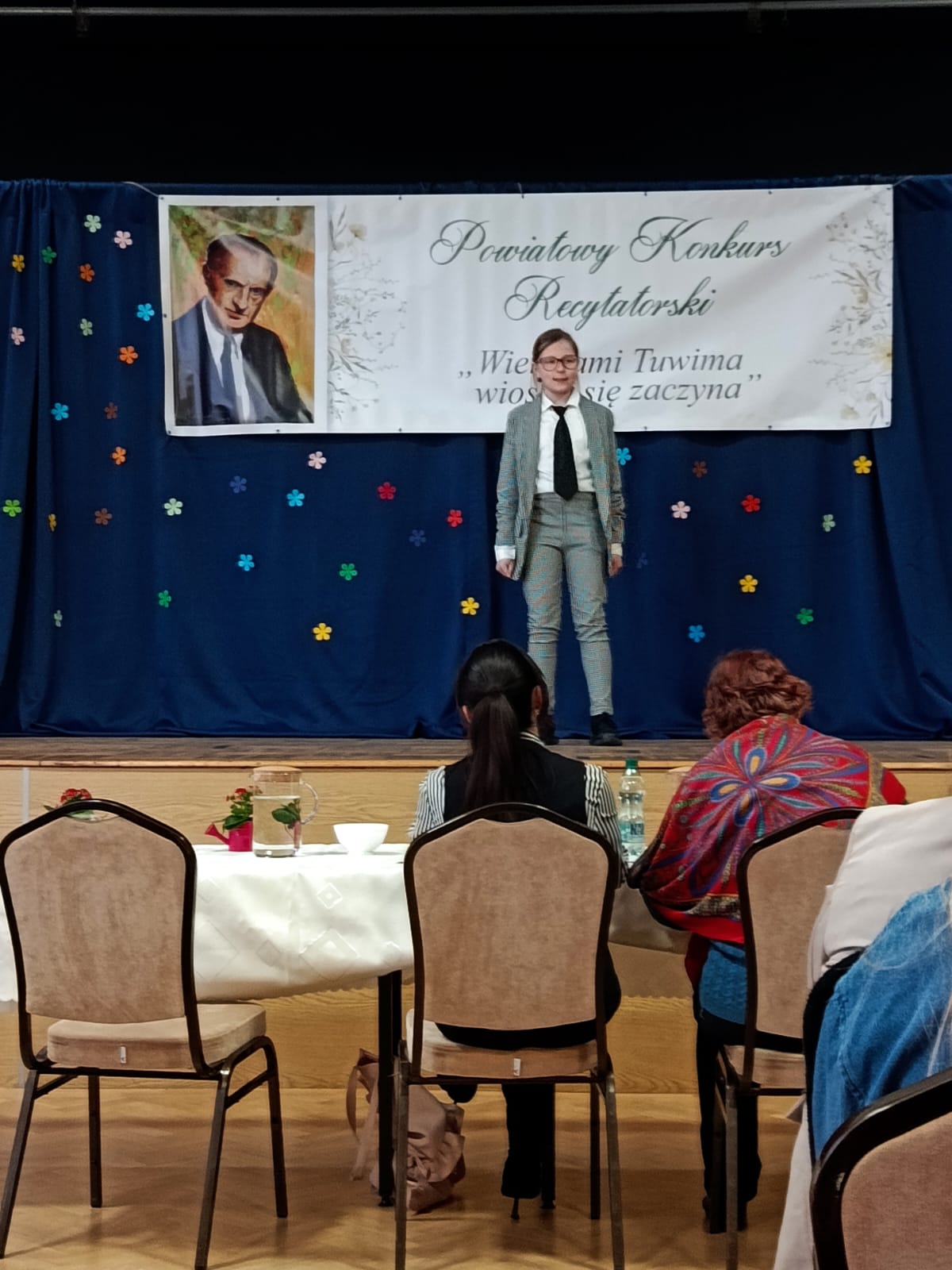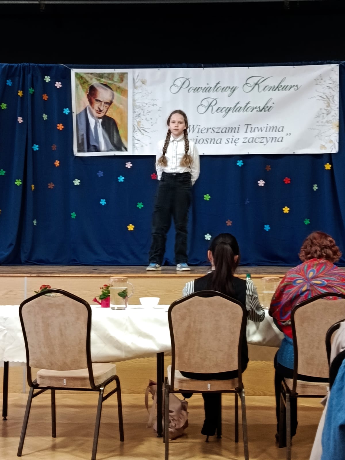 9 kwietnia w Wiejskim Domu Kultury odbył się Powiatowy Konkurs Recytatorski "Wierszami Tuwima wiosna się zaczyna". W tym roku naszą szkołę reprezentowało aż siedmioro uczniów, którzy wcześniej zostali wybrani w etapie szkolnym.