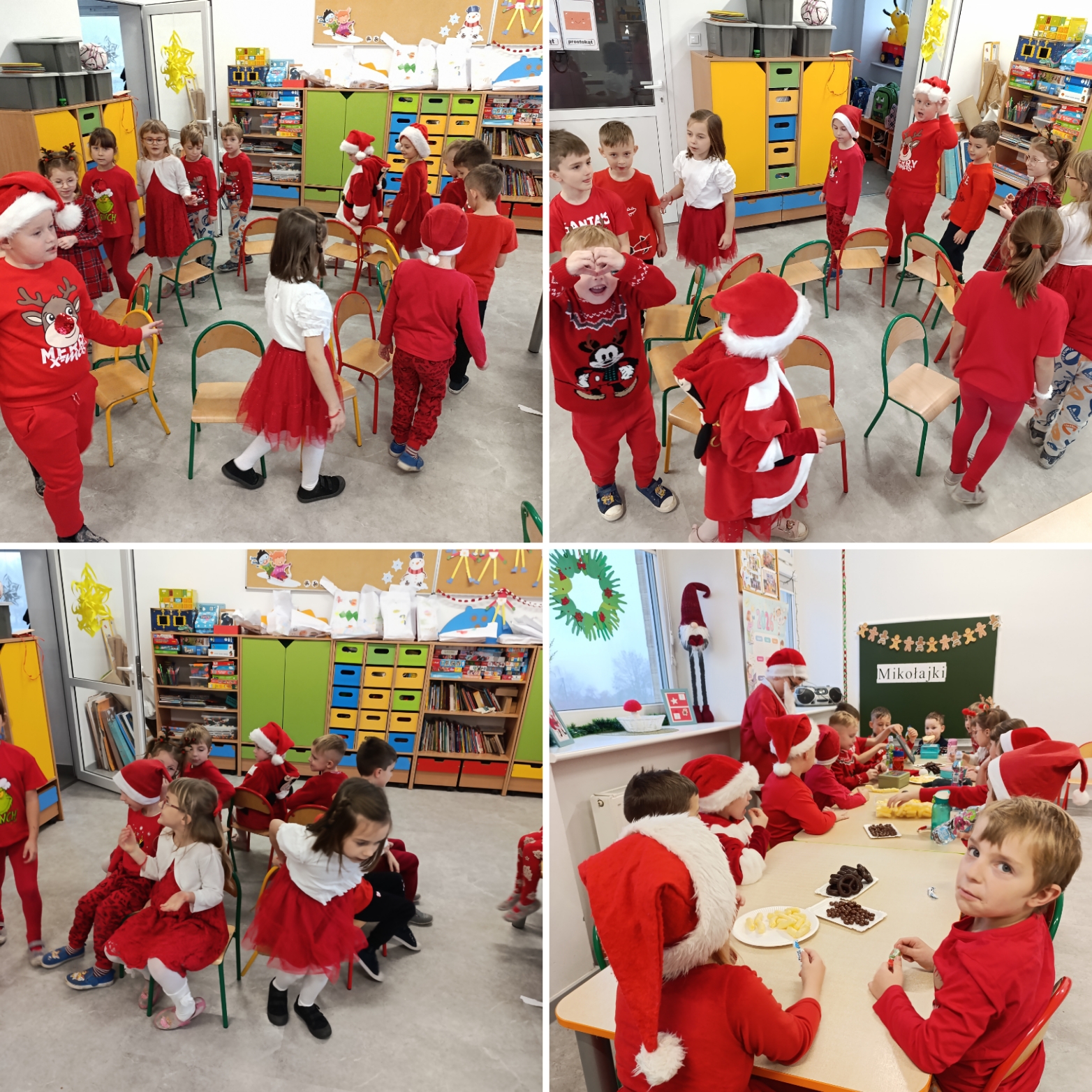 Zapraszamy do kolorowej fotorelacji z mikołajkowego piątku! Po wspólnych zabawach na sali gimnastycznej przenieśliśmy się do naszej sali, gdzie odwiedził nas Mikołaj z Elfami! Cały dzień wypełniony był śmiechem i dobrą zabawą - poczuliśmy zbliżające się święta!