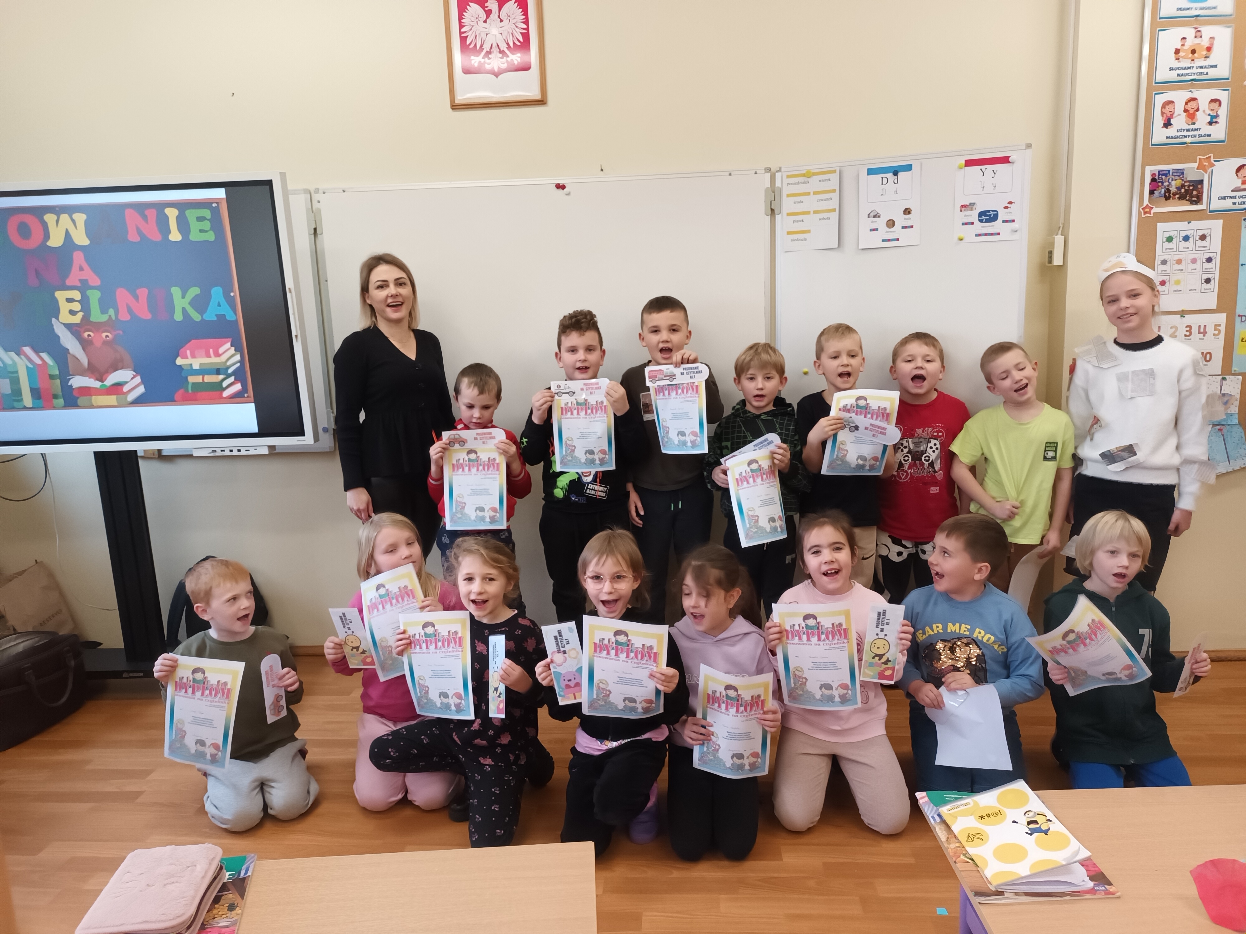 W drugiej części spotkania nastąpiło uroczyste ślubowanie, pasowanie i rozdanie pamiątkowych zakładek i dyplomów.