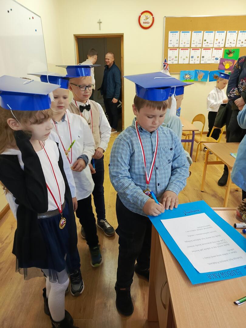 30 października 2024 r. miała miejsce niezwykle ważna dla życia szkoły uroczystość pasowania uczniów klasy pierwszej. Odświętnie ubrani najmłodsi zaprezentowali występ artystyczny i śpiewali piosenki. Następnie przyrzekały być dobrymi i pilnymi uczniami oraz rzetelnie wypełniać swoje obowiązki.