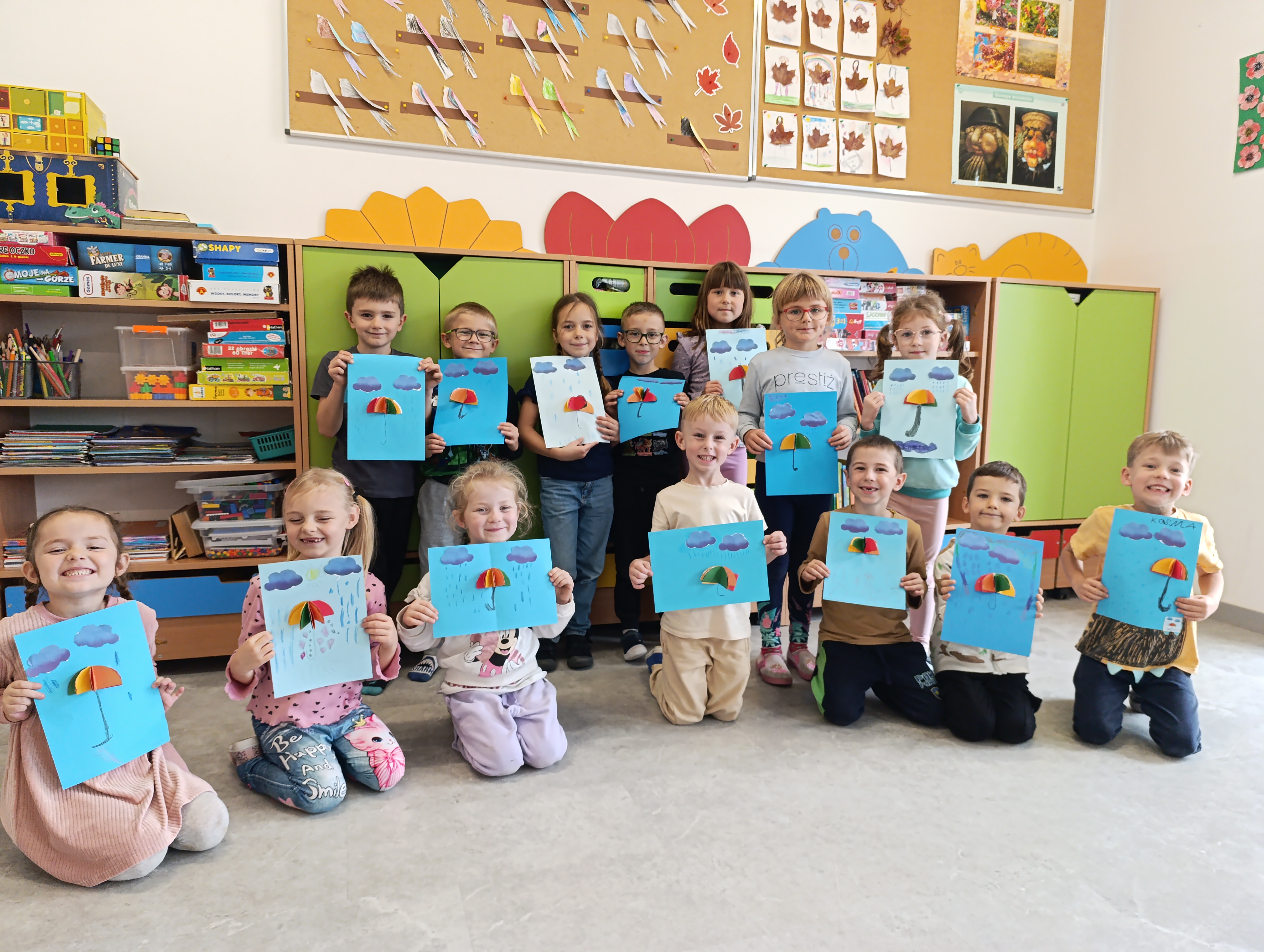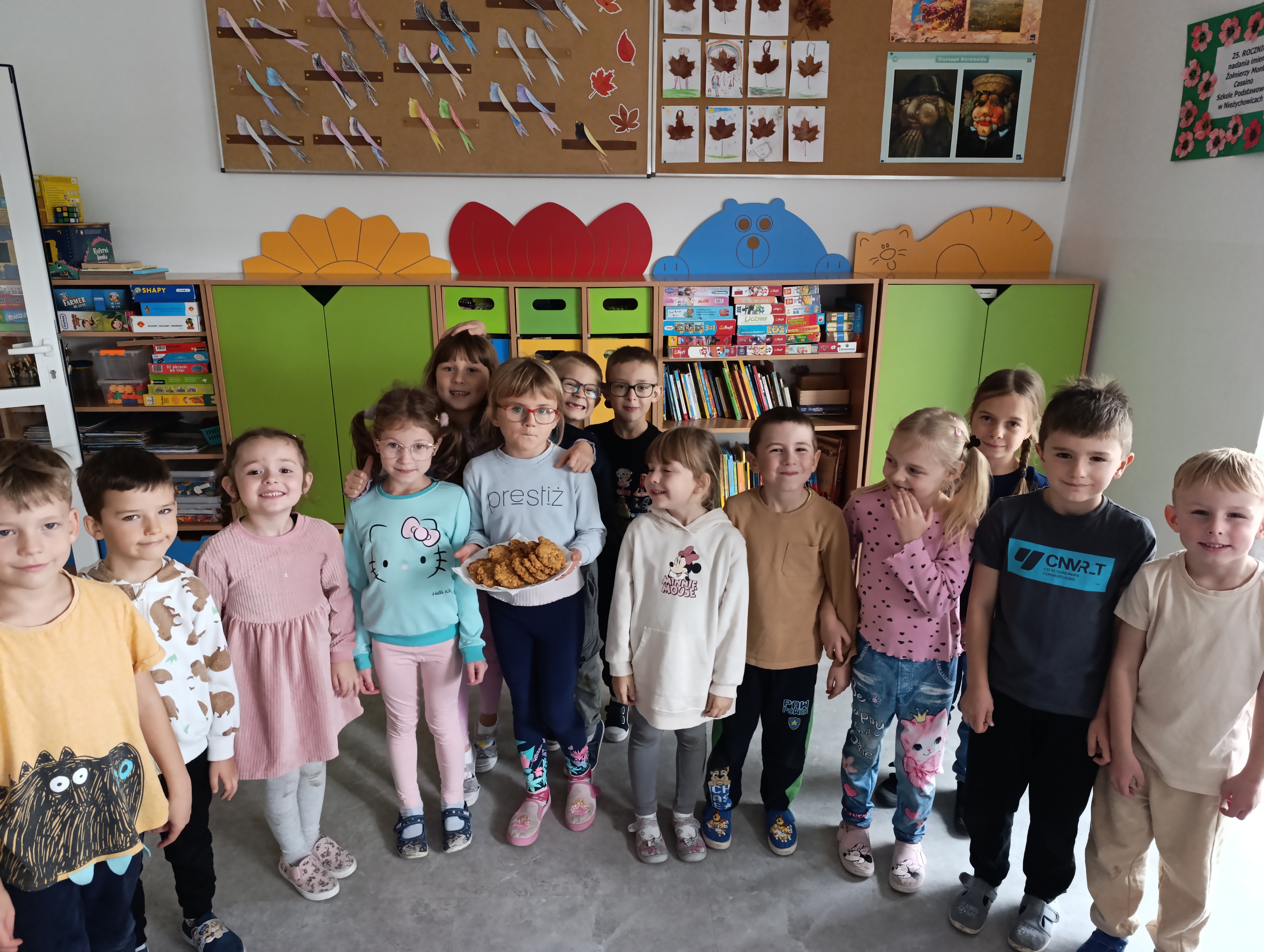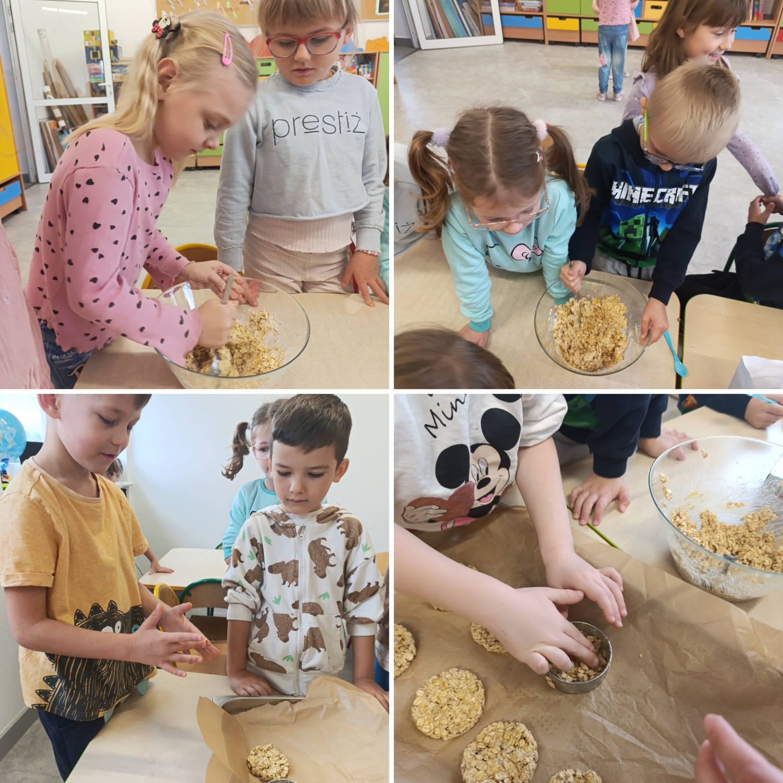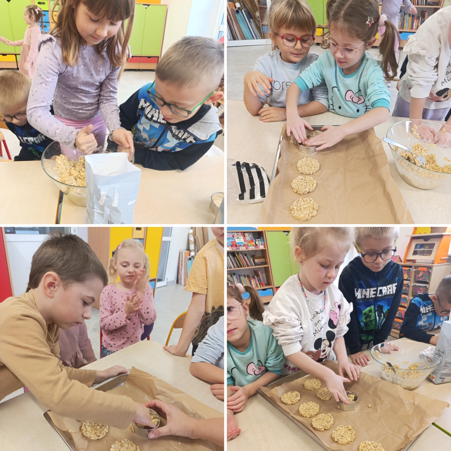 W piątek w sali naszej zerówki unosił się zapach słodkich wypieków! Dzieci samodzielnie przygotowywały pyszne i zdrowe ciasteczka owsiane. Mali cukiernicy świetnie się bawili, ucząc się przy tym współpracy i poznając składniki zdrowych przekąsek. Po degustacji i zgodnym ustaleniu, że trzeba ten dzień kiedyś powtórzyć, dzieci wcieliły się w rolę artystów i wykonały kolorowe parasolki, które teraz zdobią naszą klasę. To był naprawdę pyszny dzień pełen radości. Udowodniliśmy, że jesień może być słodka i kolorowa nawet wtedy, gdy pada deszcz!