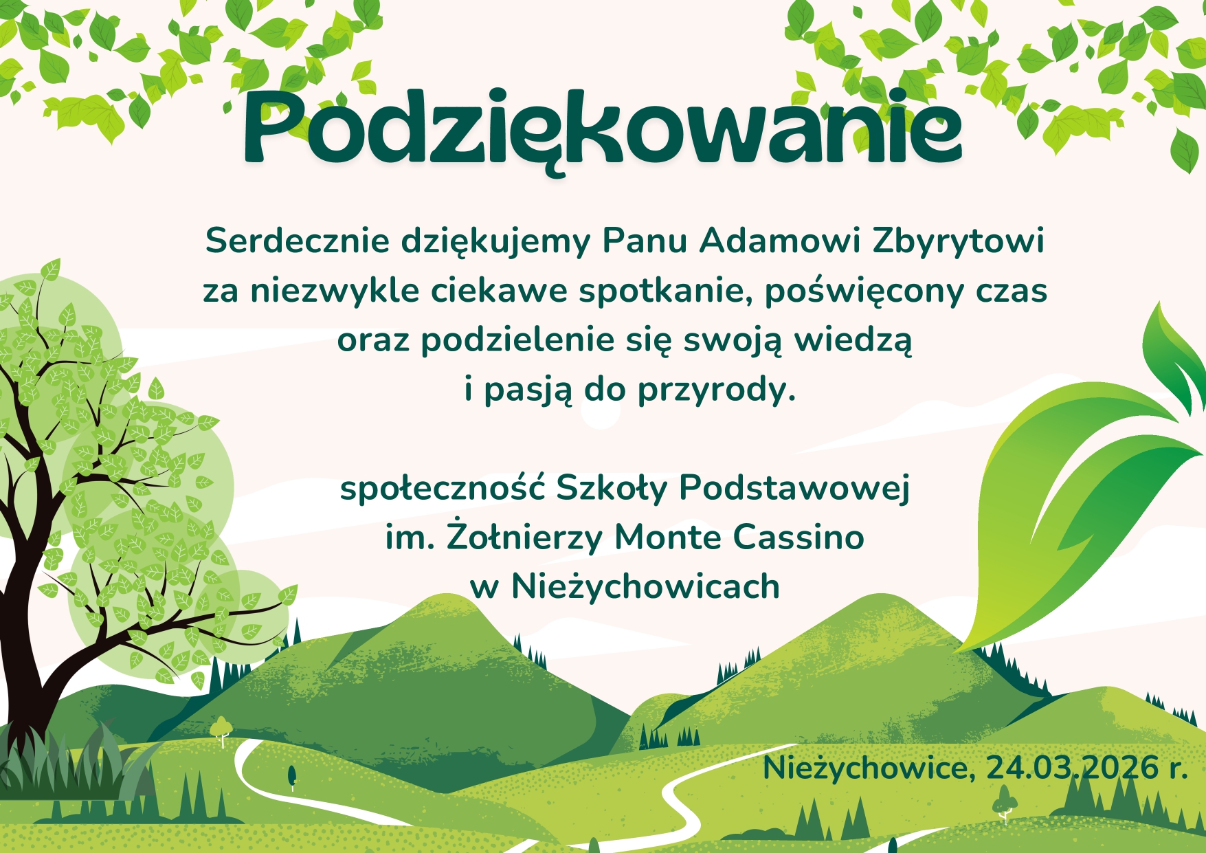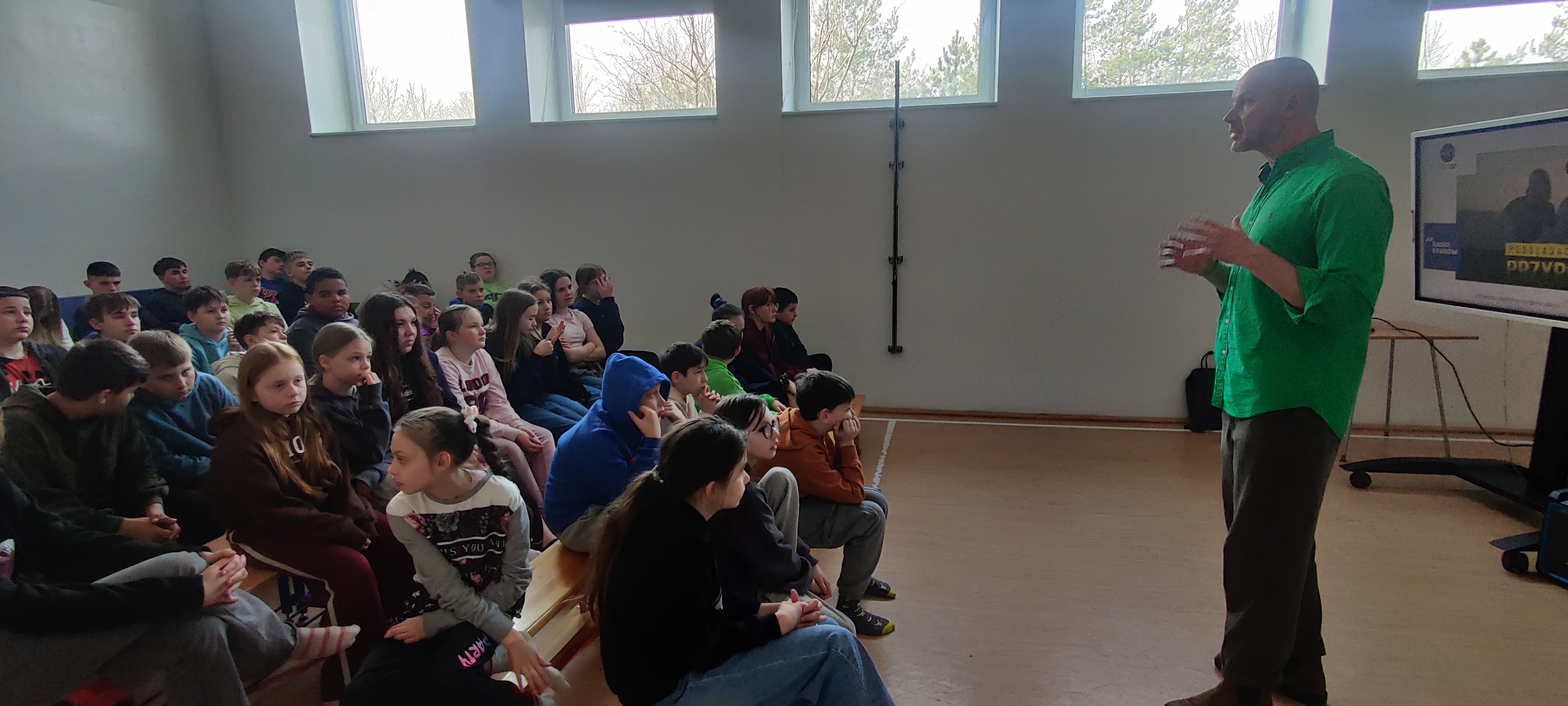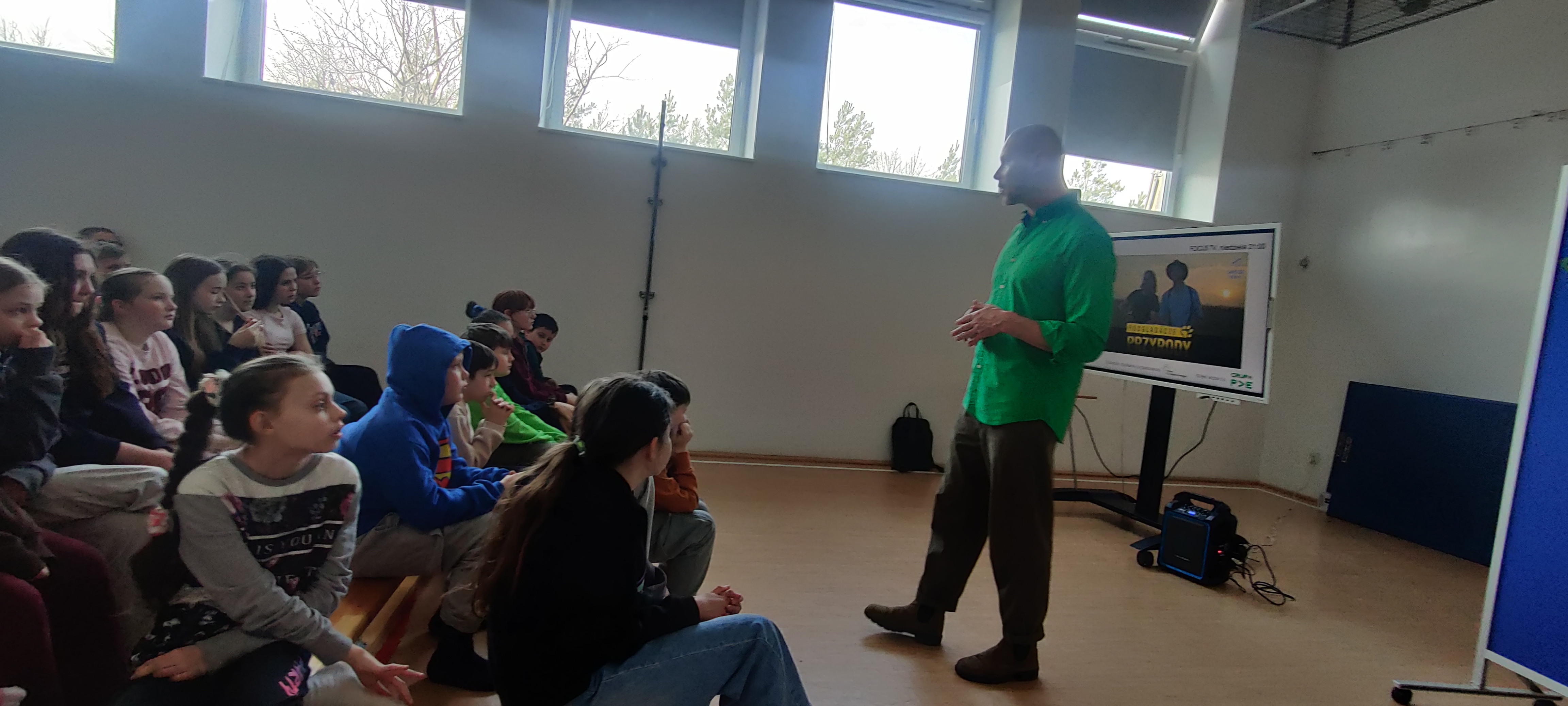 24 marca w naszej szkole odbyło się spotkanie z Adamem Zbyrytem – znanym przyrodnikiem, biologiem, ornitologiem oraz autorem książek i programów przyrodniczych. Prelekcja została zorganizowana w ramach projektu „Lekcje przyrody z Dobrą Energią”.