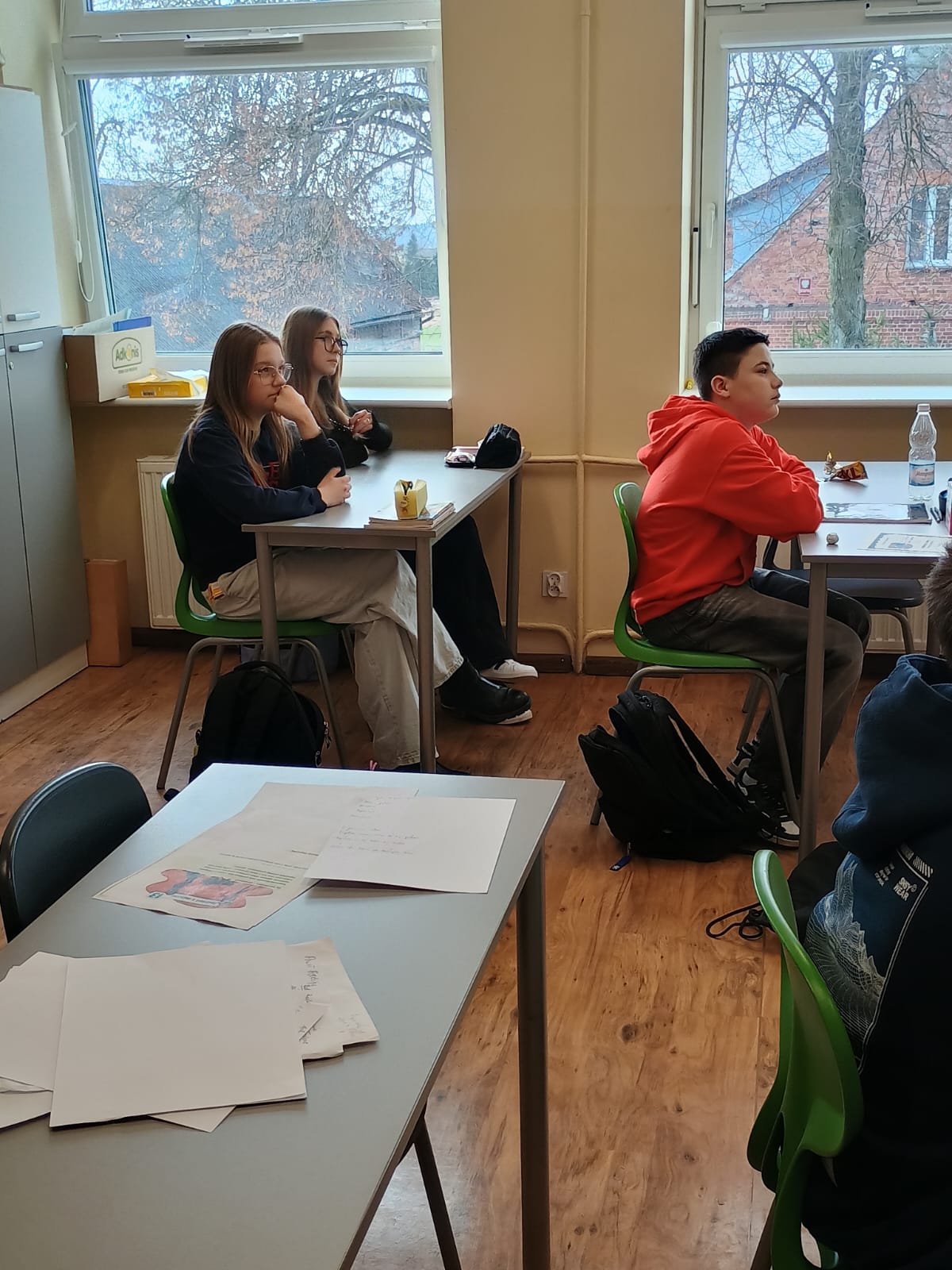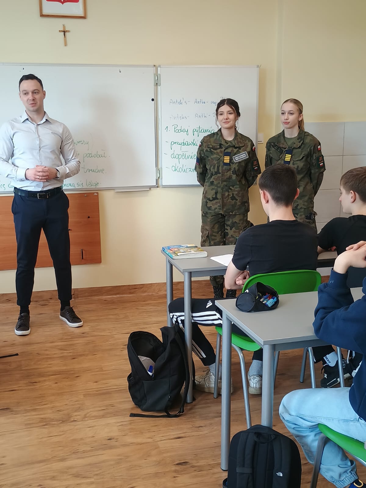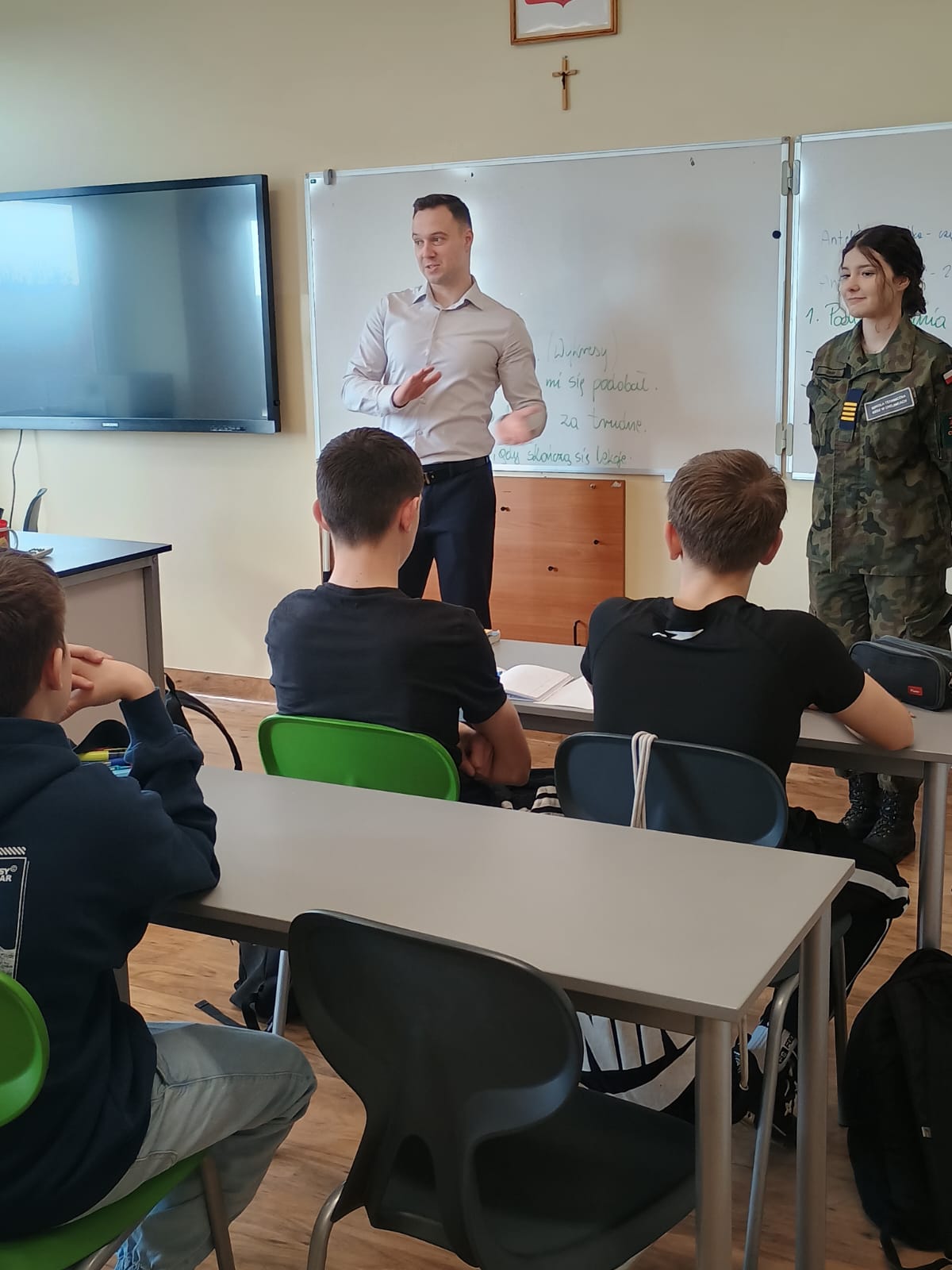Klasę ósma odwiedzili przedstawiciele Szkoły Technicznej im. Dywizjonu 303 z Chojnic. Szkoła zwana jest potocznie Mundurowką. Uczniowie dowiedzieli się o kierunkach kształcenia, obejrzeli prezentację multimedialną pokazująca wyposażenie sal lekcyjnych.