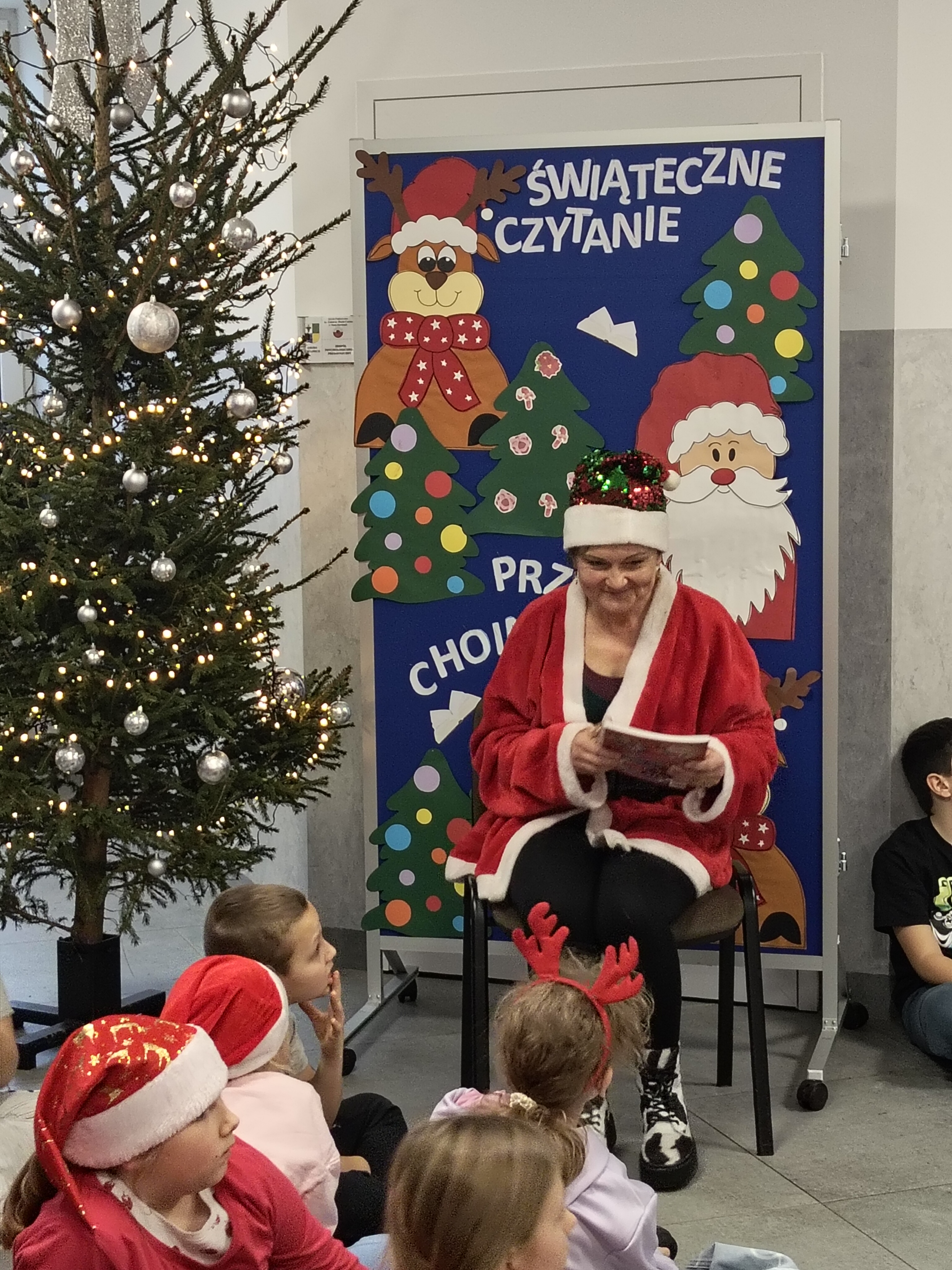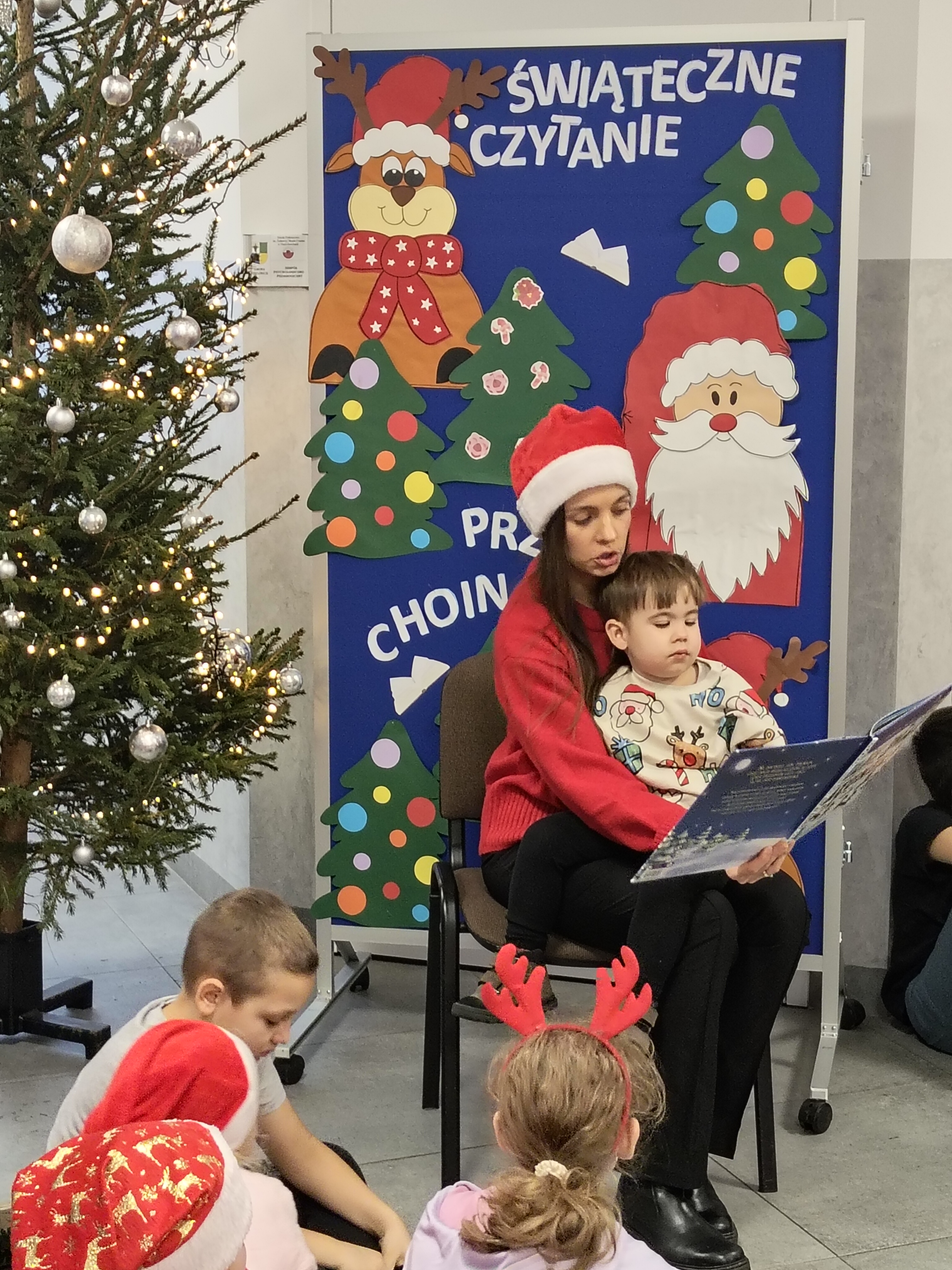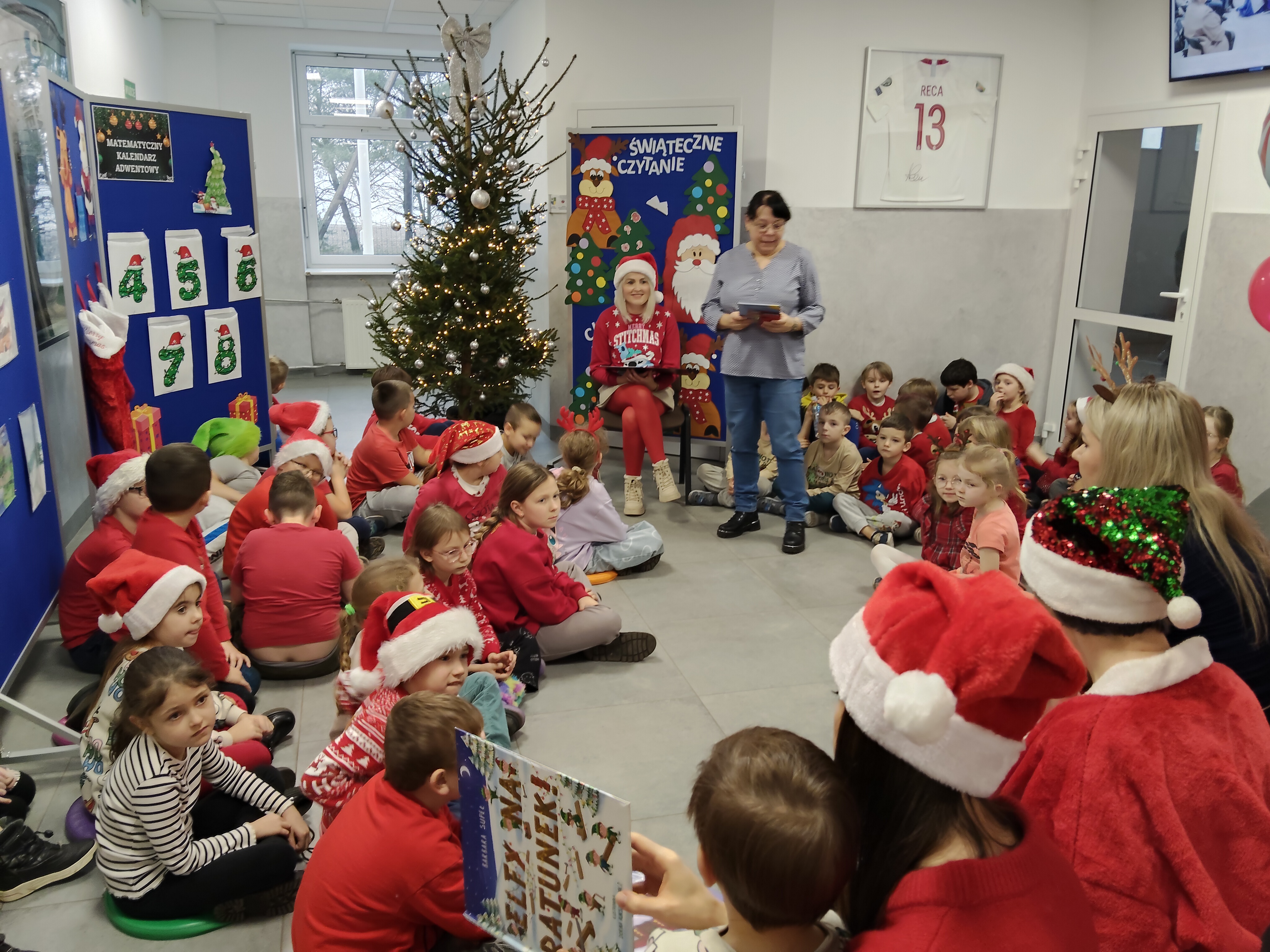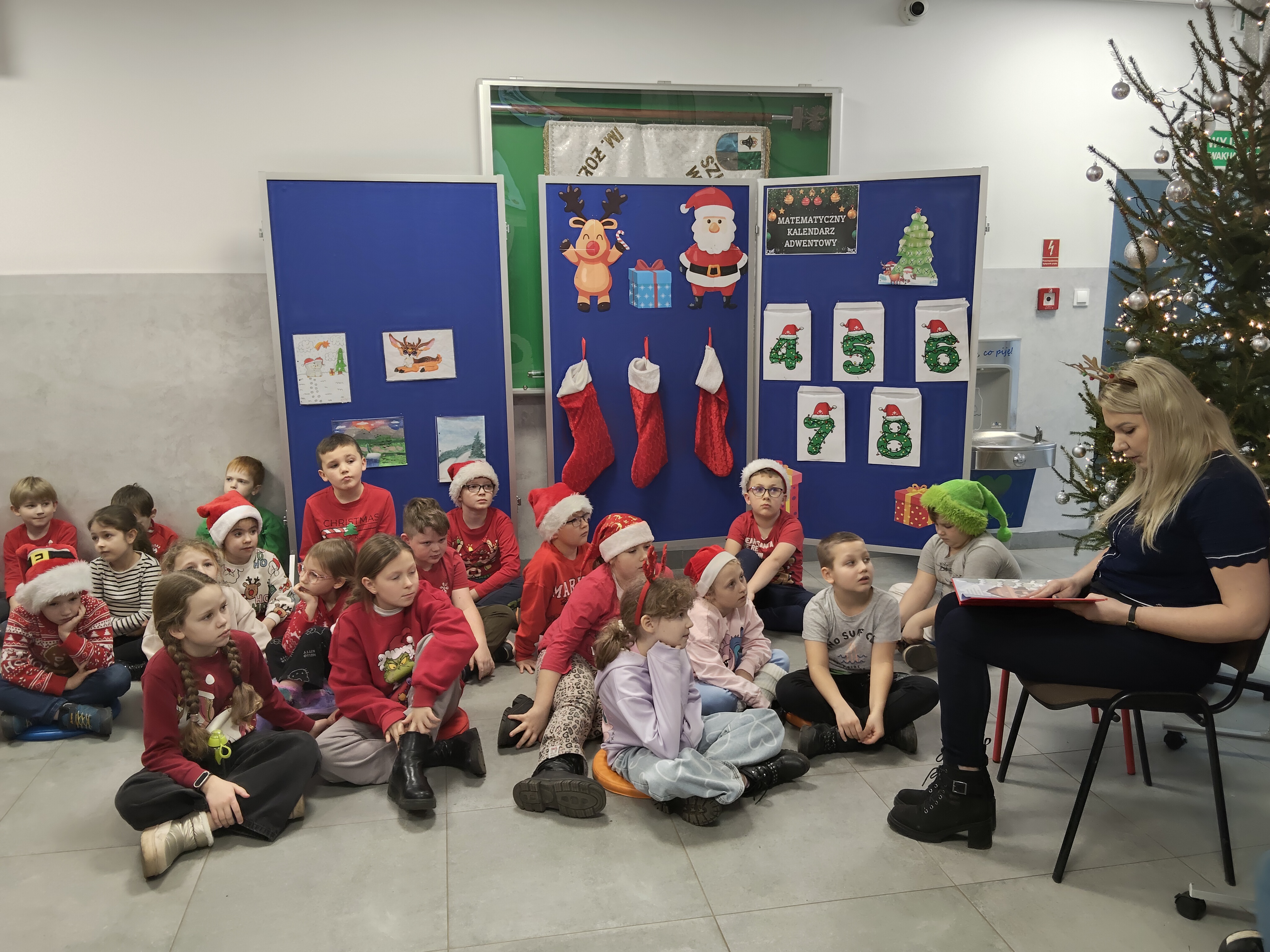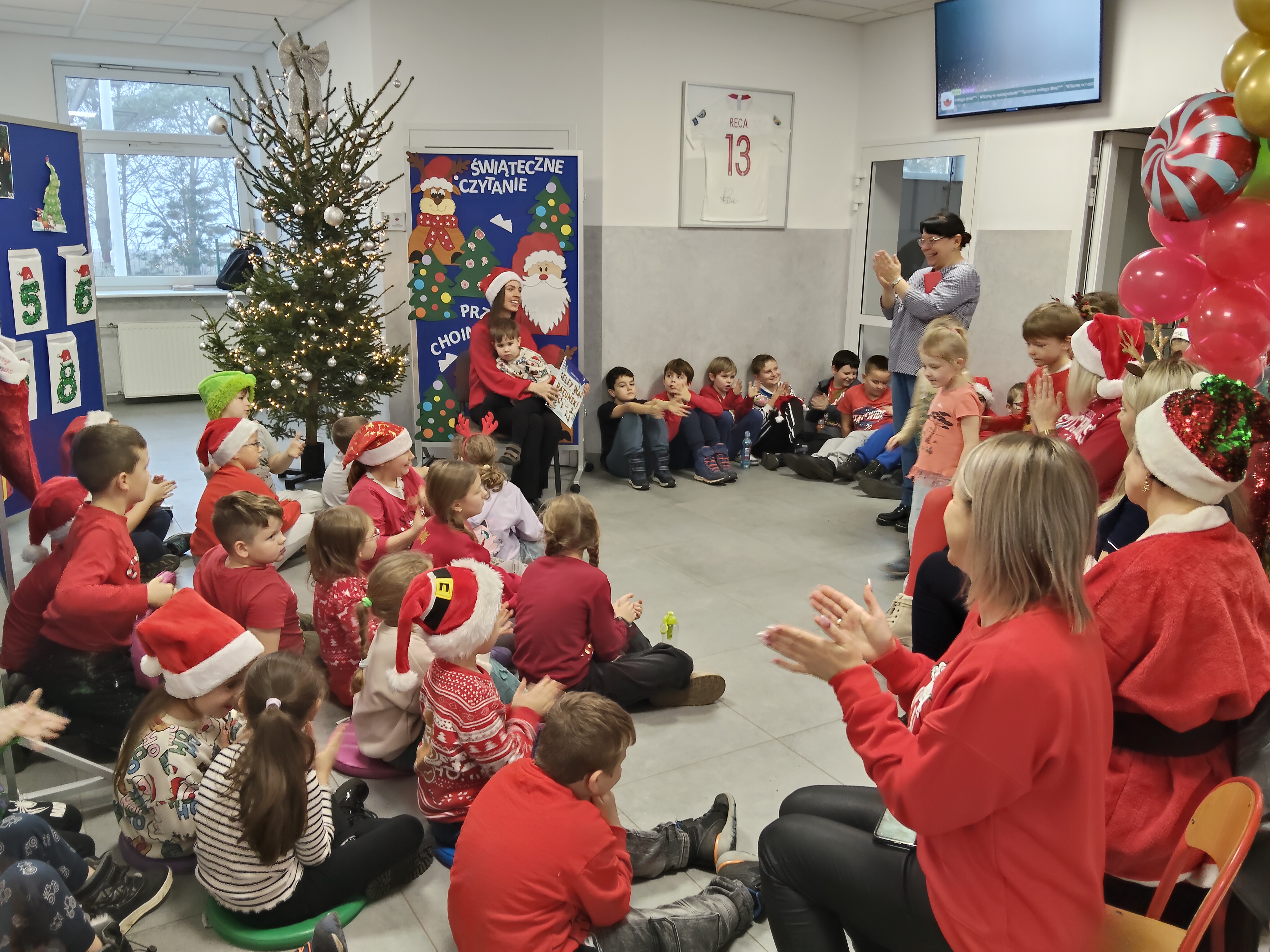 Wspólne czytanie było okazją do zatrzymania się na chwilę, budowania relacji oraz wprowadzenia dzieci w magiczny klimat Świąt Bożego Narodzenia. Uczniowie z zaciekawieniem słuchali czytanych historii, a blask choinkowych światełek dopełniał tej wyjątkowej chwili.