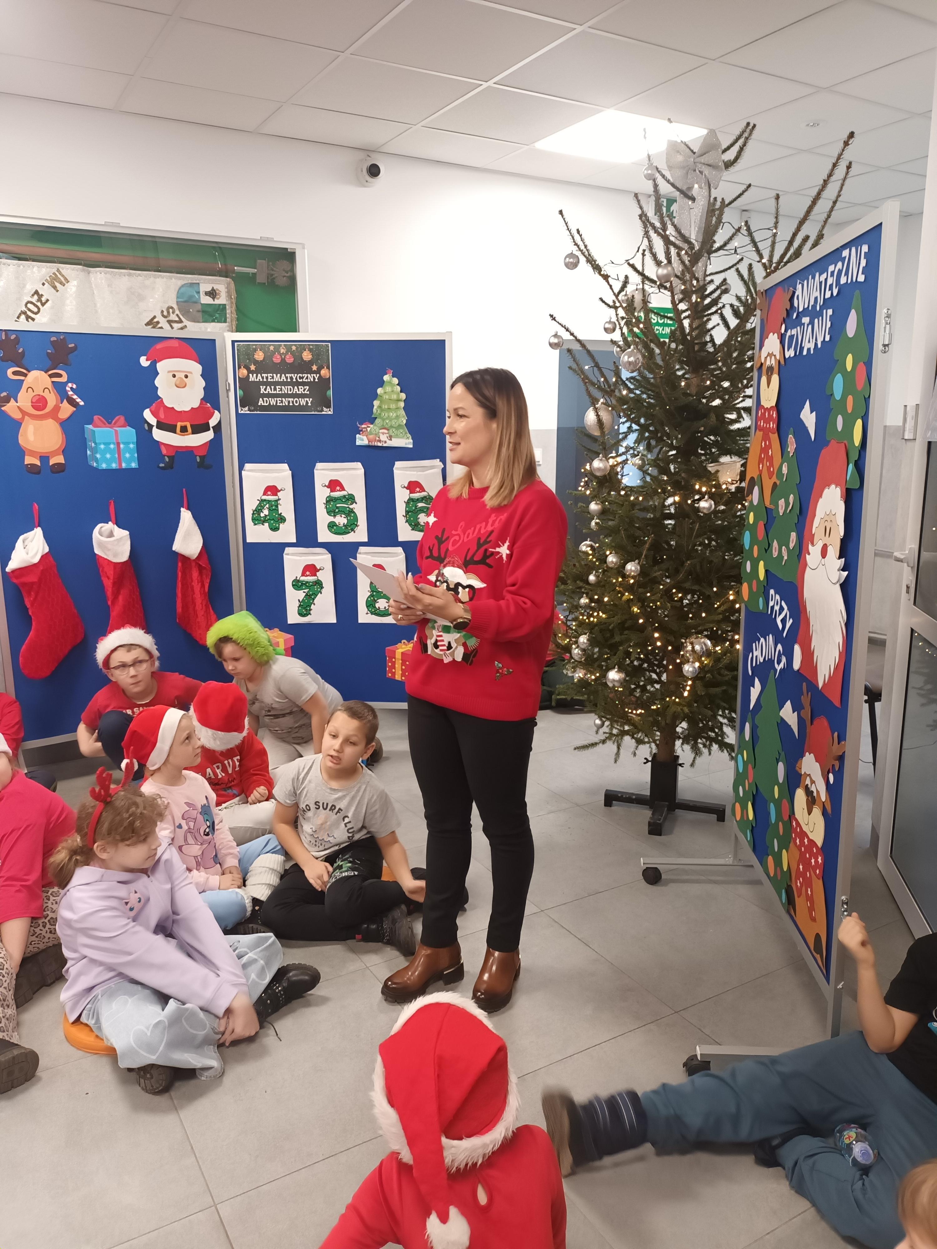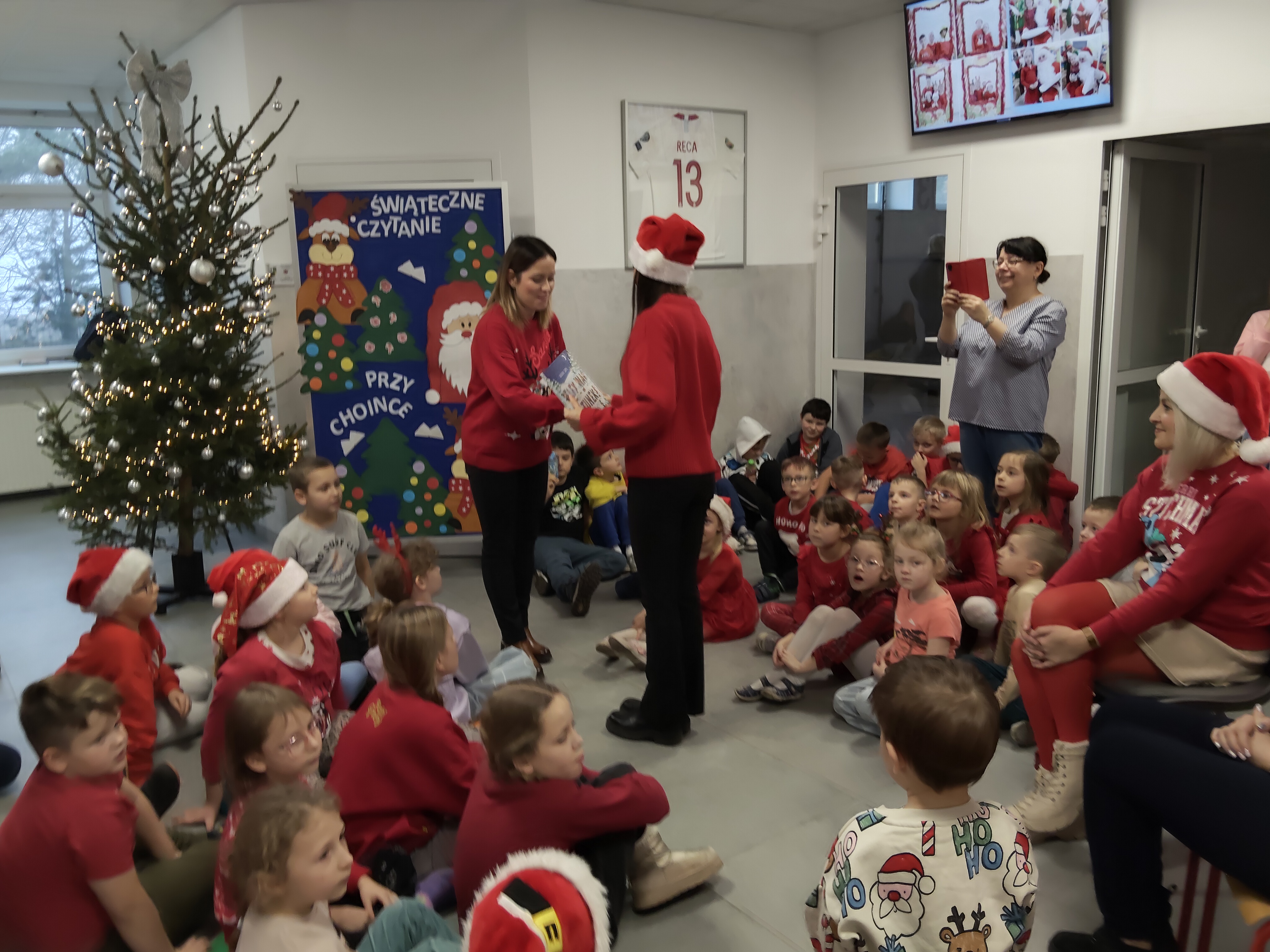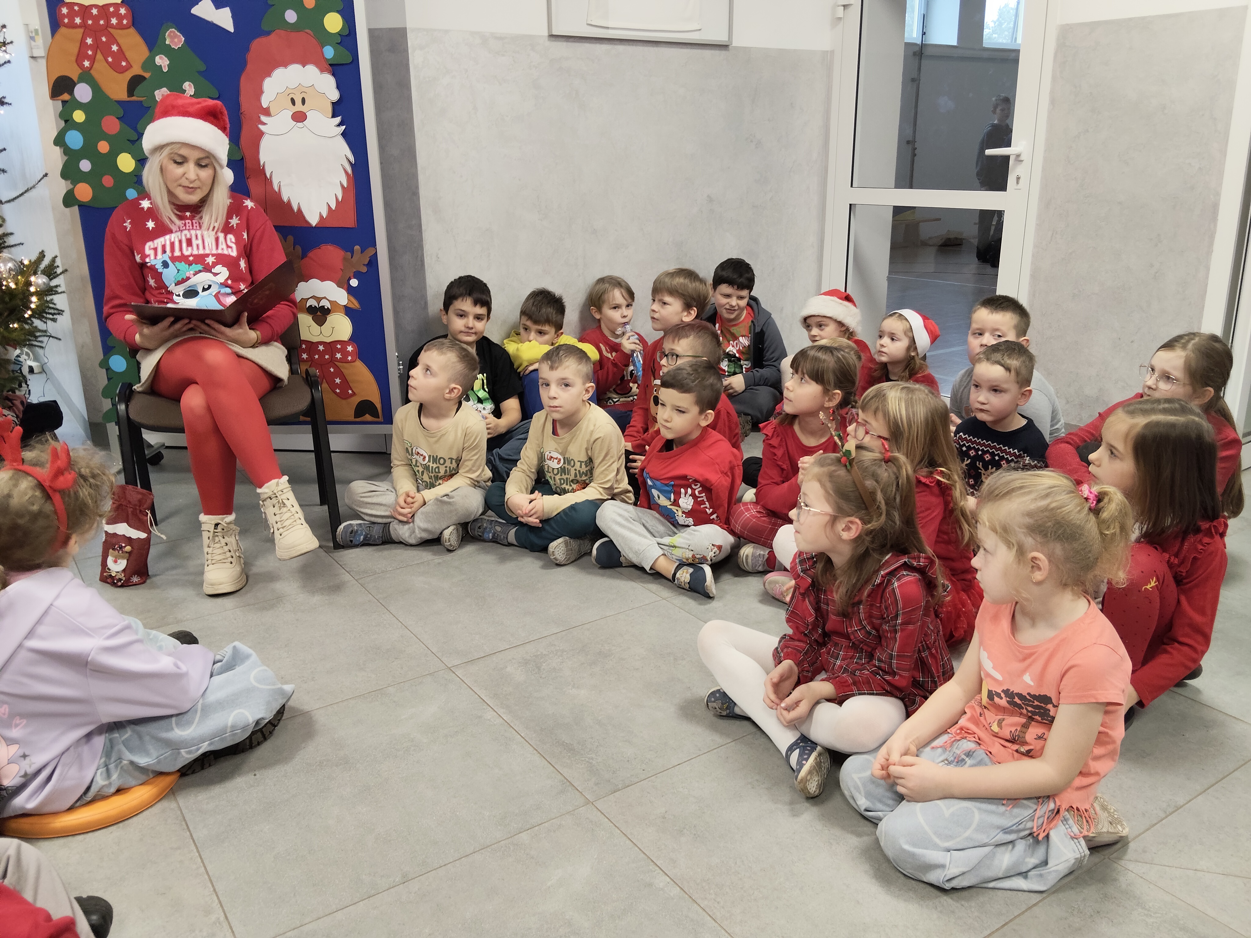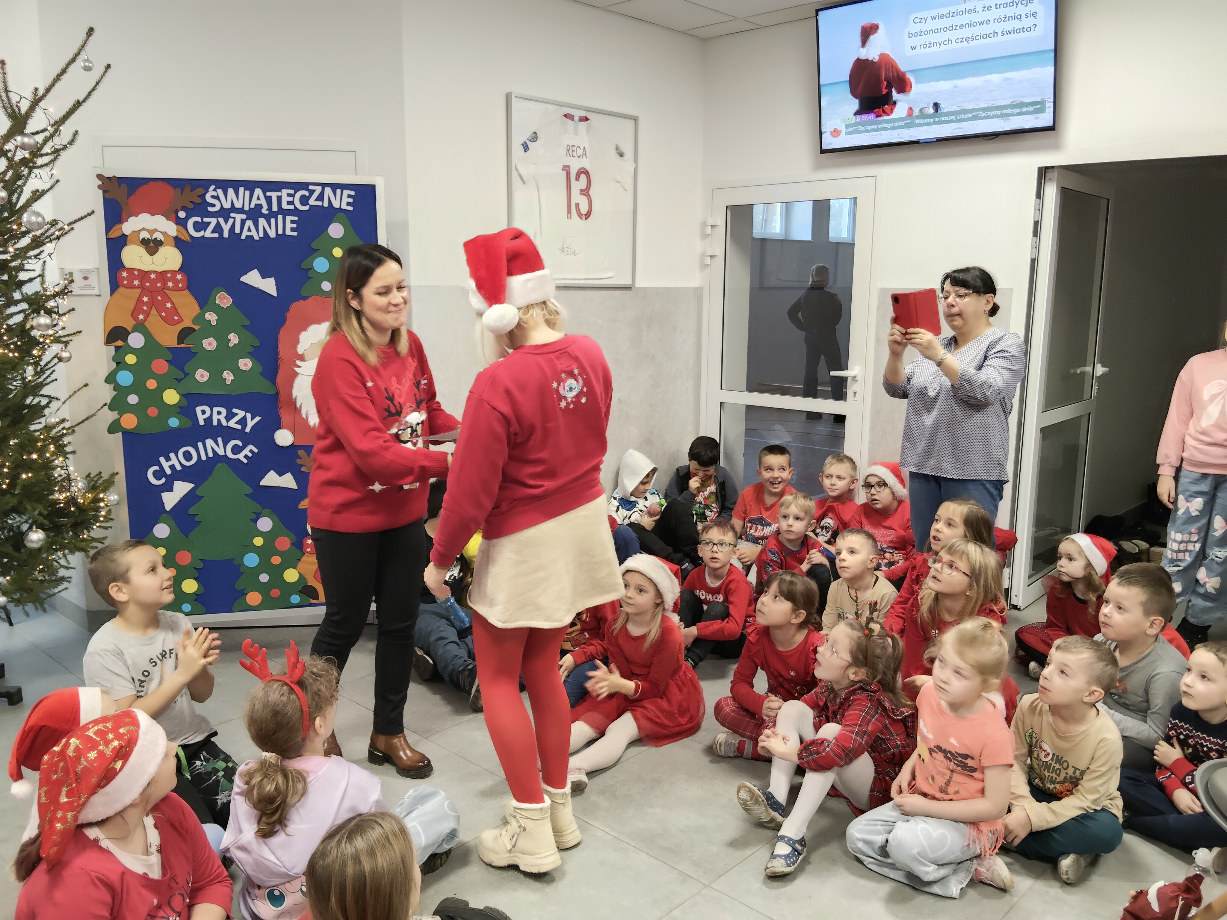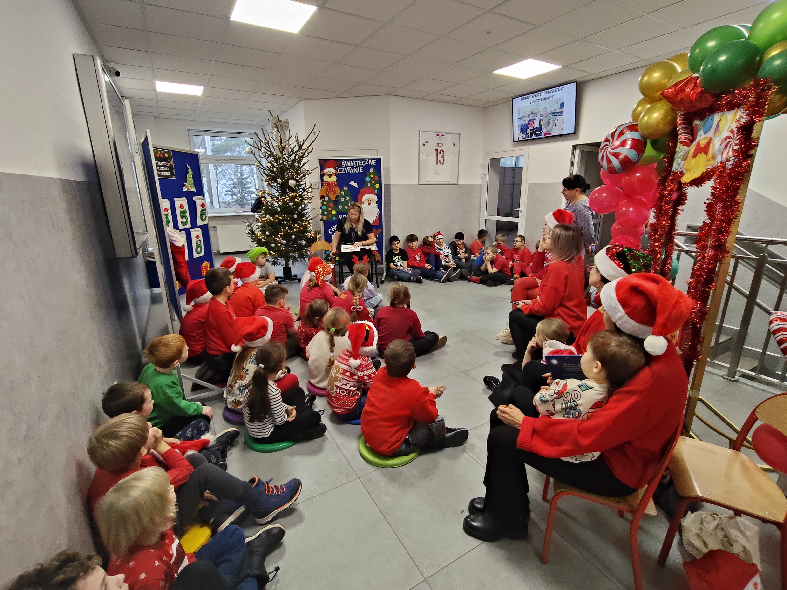 Wspólne czytanie było okazją do zatrzymania się na chwilę, budowania relacji oraz wprowadzenia dzieci w magiczny klimat Świąt Bożego Narodzenia. Uczniowie z zaciekawieniem słuchali czytanych historii, a blask choinkowych światełek dopełniał tej wyjątkowej chwili.
