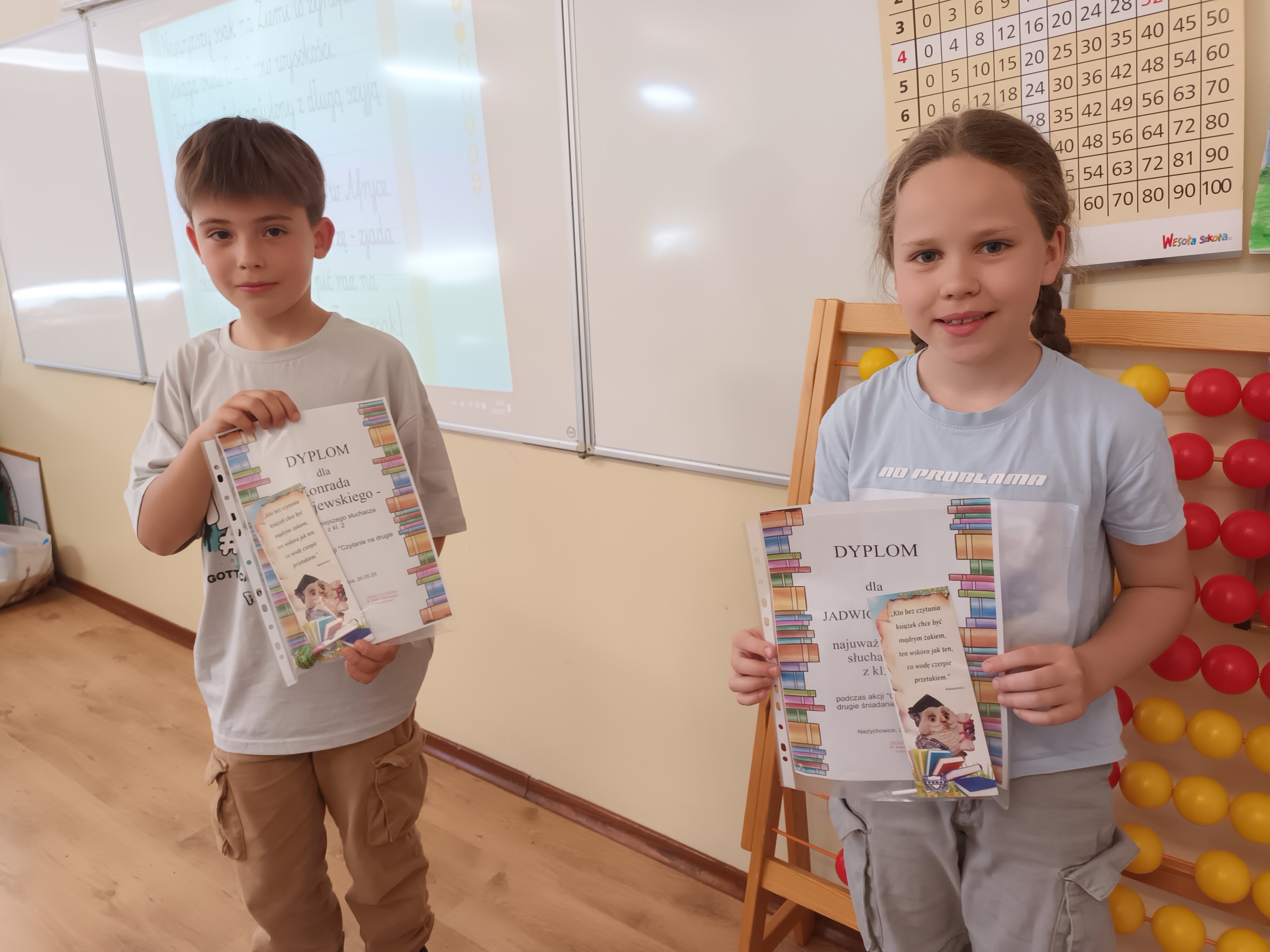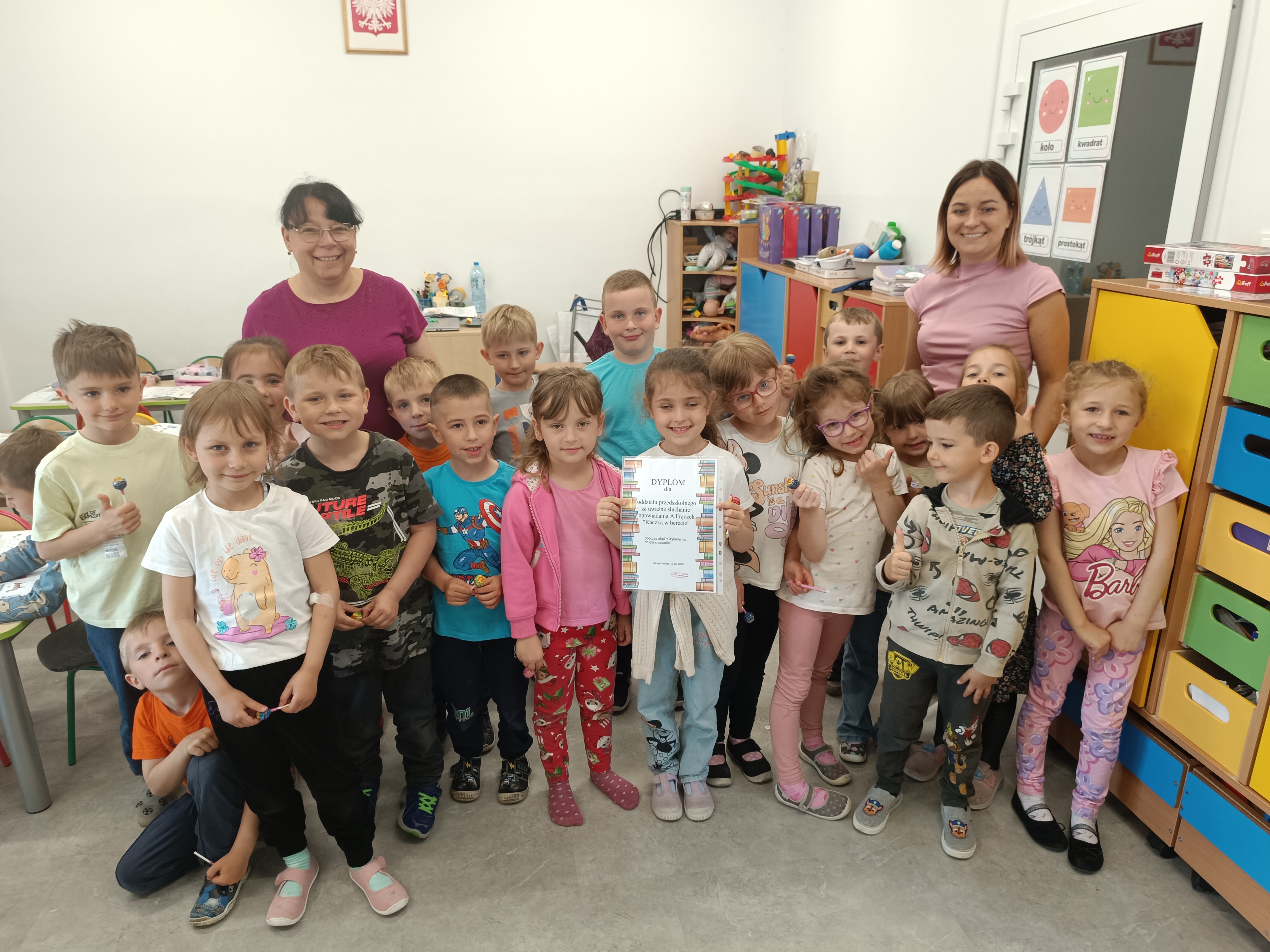 Najmłodsi uczniowie naszej szkoły uczestniczyli w maju w głośnym czytaniu opowiadania A.Frączek "Kaczka w berecie", podczas którego wybrano najuważniejszych słuchaczy z każdej grupy.