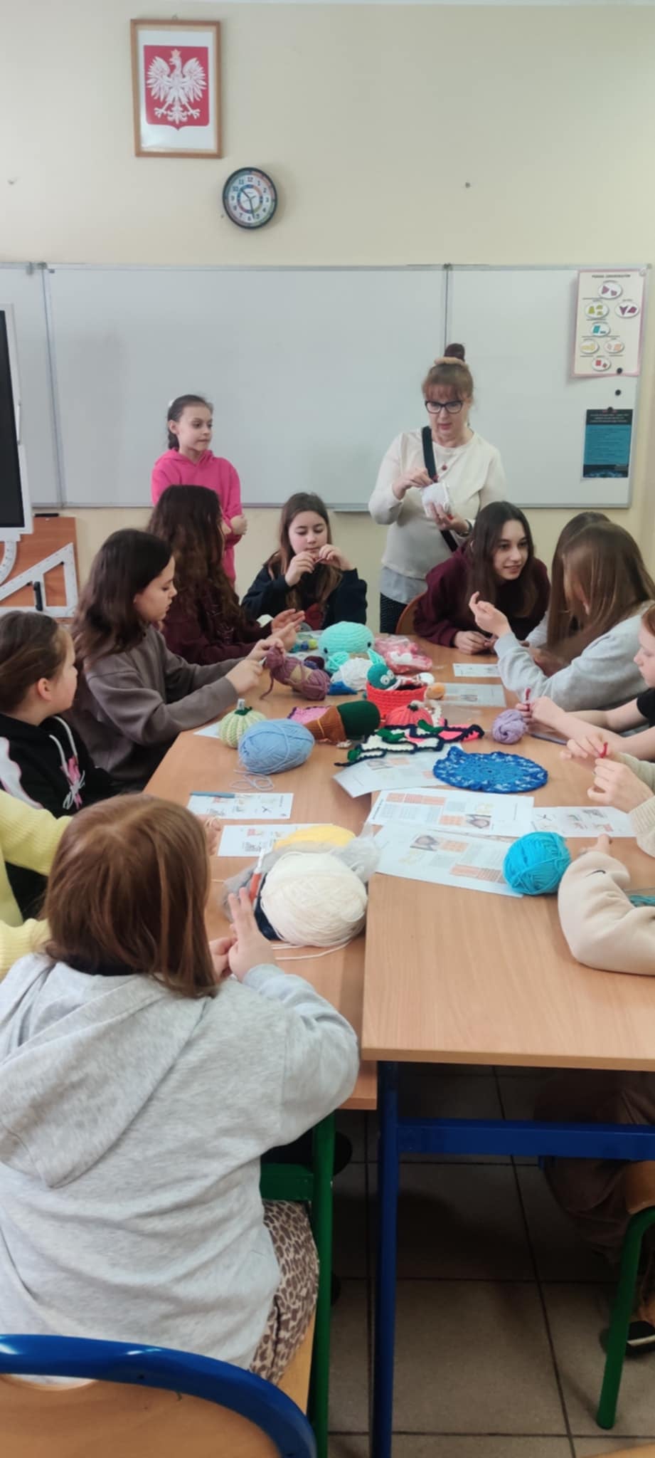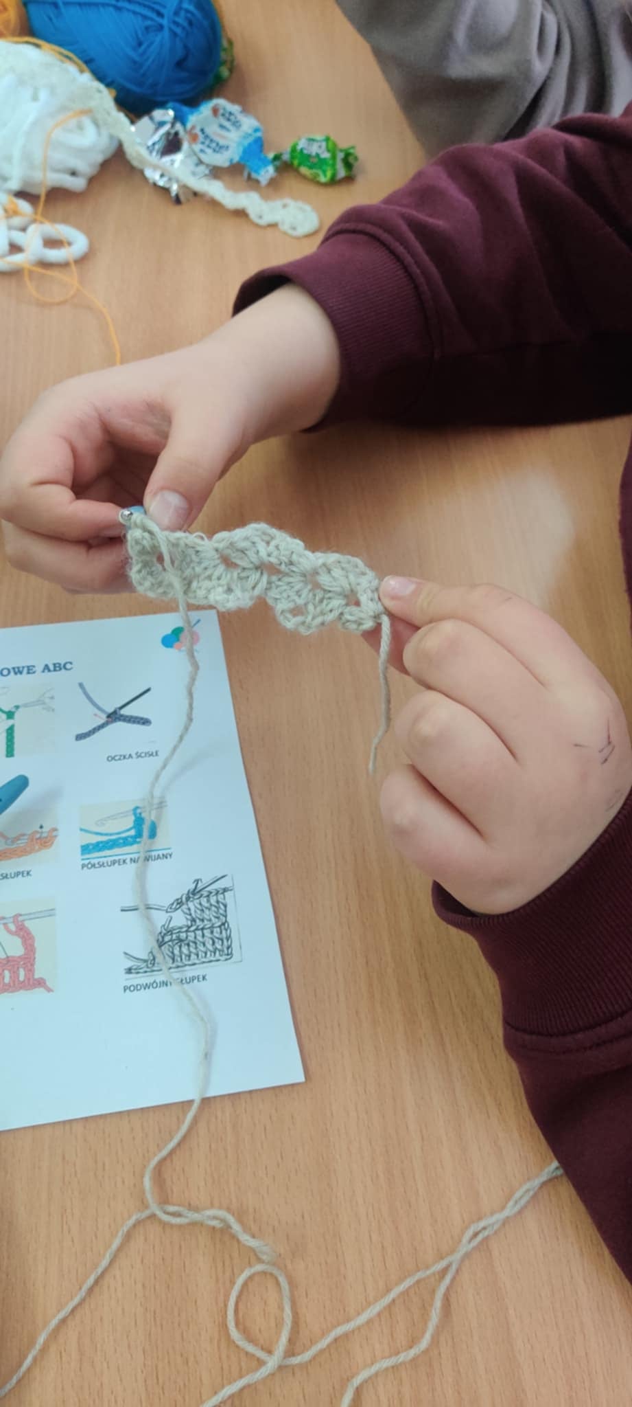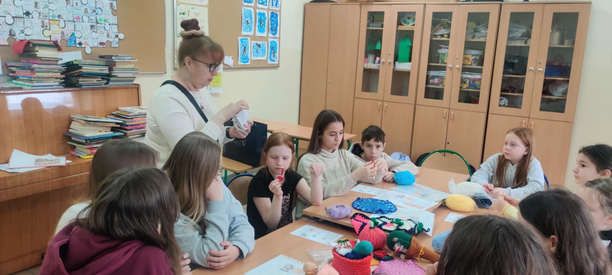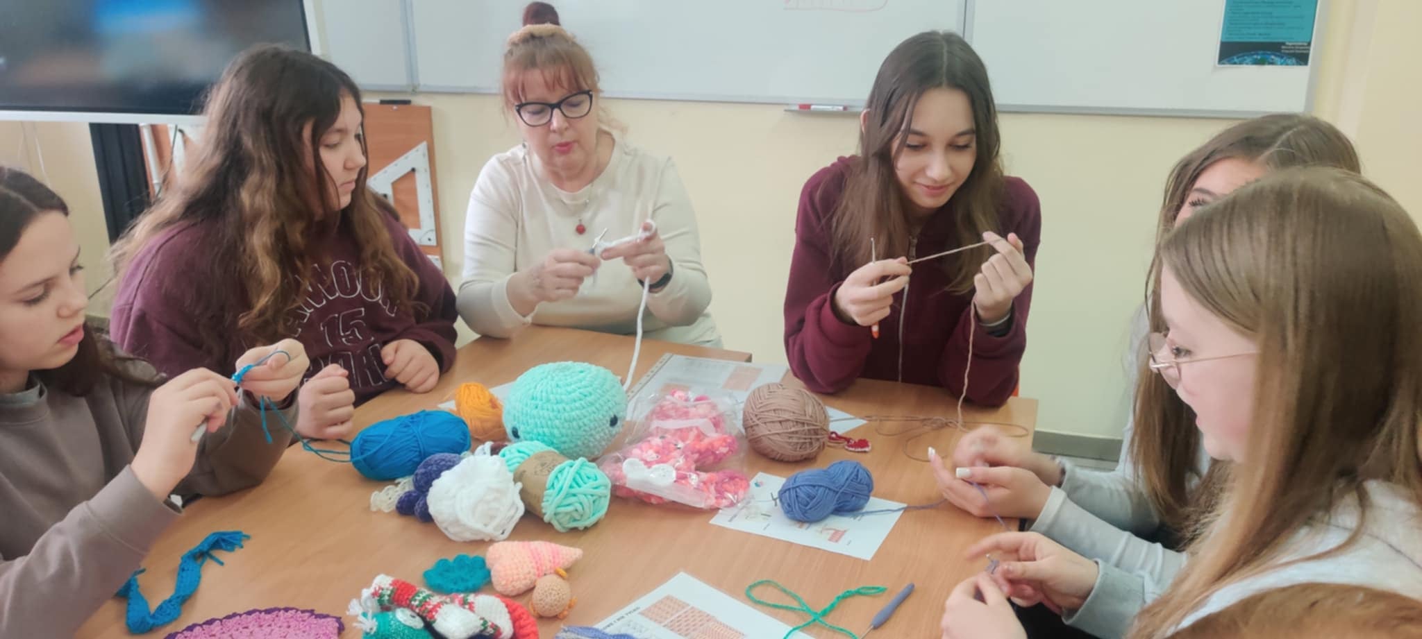 17 lutego w naszej szkole odbyły się wyjątkowe warsztaty szydełkowania. Na nasze specjalne zaproszenie przybyła pani Irena Wittbrodt, która z pasją i ogromnym zaangażowaniem wprowadziła nas w świat rękodzieła. W zajęciach plastycznych wzięli udział uczniowie klas czwartej, piątej, szóstej, siódmej, a nawet ósmej. Warsztaty okazały się niezwykle ciekawe i inspirujące. Poznaliśmy warsztat pracy związany z szydełkowaniem, uczyliśmy się podstawowych ściegów oraz wykonywania praktycznych ozdób np. bransoletek, opasek, ozdób świątecznych, pluszaków i innych przedmiotów codziennego użytku wykonanych na szydełku. Choć nie zawsze wszystko od razu nam wychodziło, z każdą kolejną próbą i większą ilością praktyki widzieliśmy wyraźne postępy. Pogłębianie wiedzy i doskonalenie umiejętności sprawiło, że ta forma spędzania czasu bardzo nas zainteresowała i zachęciła do dalszej pracy. To było niezwykle wartościowe spotkanie, które pokazało, że rękodzieło może być nie tylko pożyteczne, ale także dawać wiele satysfakcji i radości.