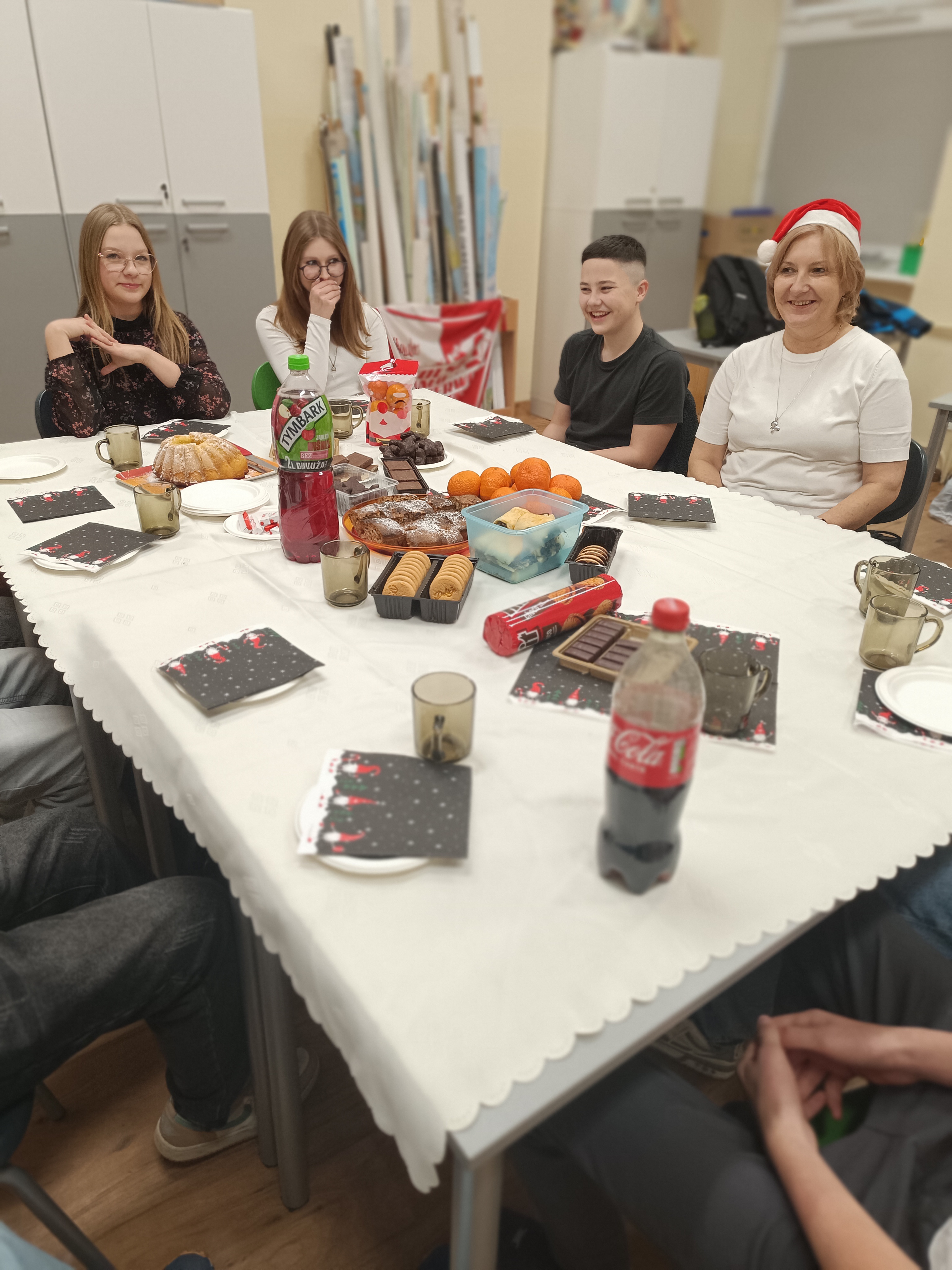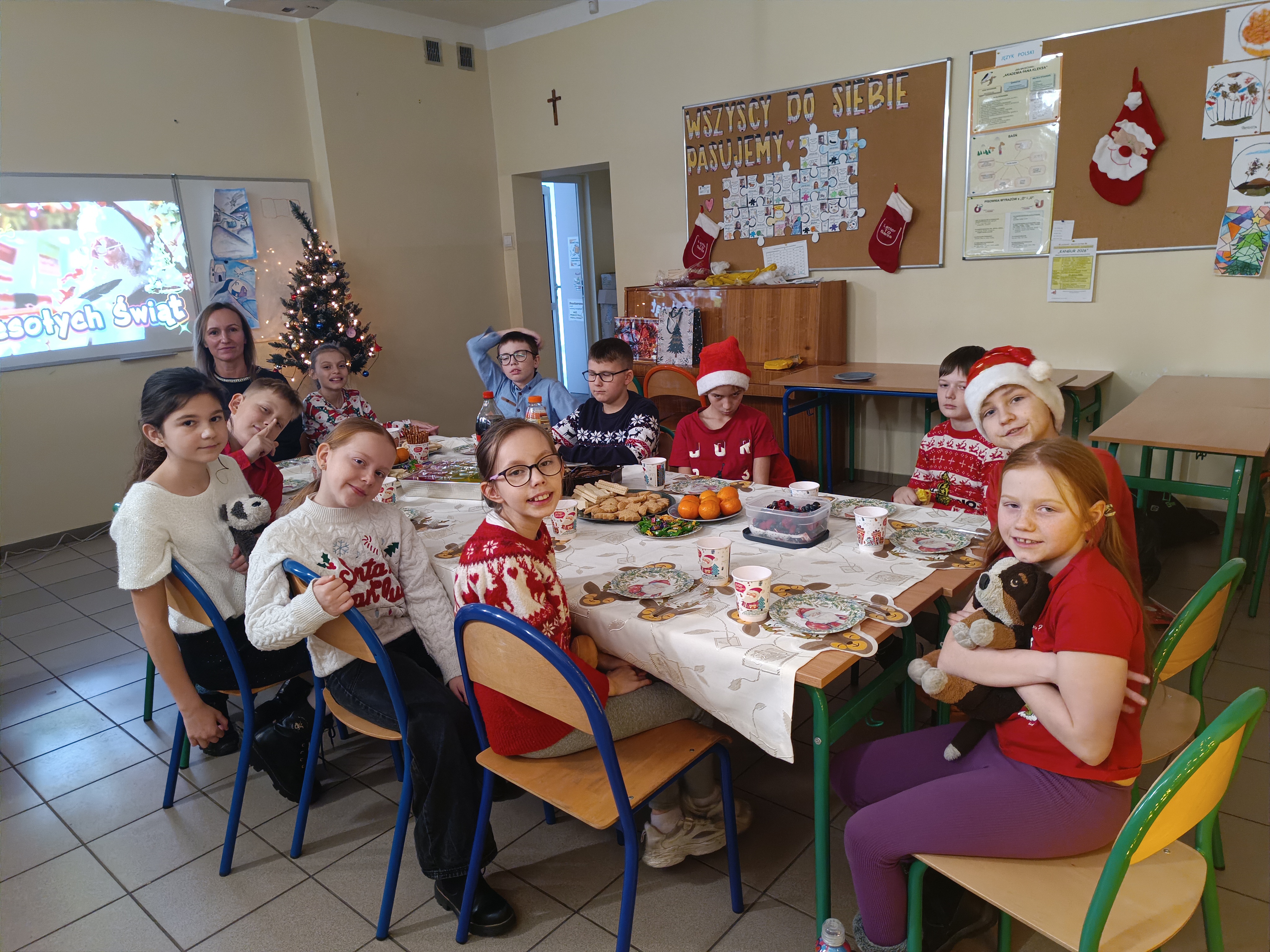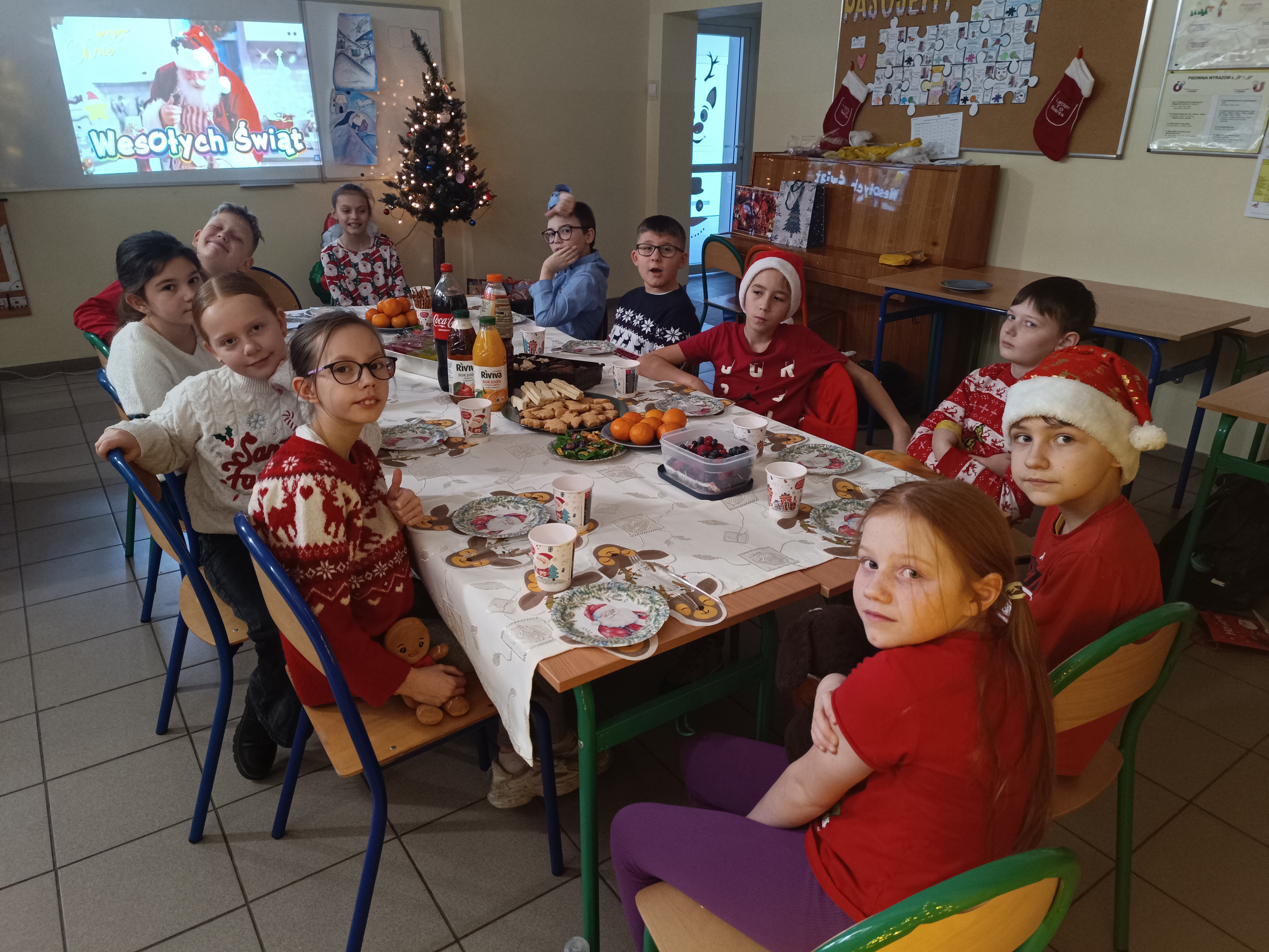 Czas przedświąteczny w naszej szkole jest wyjątkowy. W powietrzu unosi się zapach pierników, z każdej sali rozbrzmiewają kolędy i pastorałki, a na choinkach błyszczą lampki oraz ozdoby wykonane przez dzieci. Uczniowie spotykają się na klasowych wigiliach, łamią się opłatkiem i wspólnie śpiewają kolędy. Wtedy robi się ciepło, radośnie i bardzo świątecznie. Uczniowie wraz z wychowawcami wymieniali się upominkami, składali sobie świąteczne życzenia oraz częstowali się słodyczami i innymi pysznościami, które zagościły na klasowych stołach.