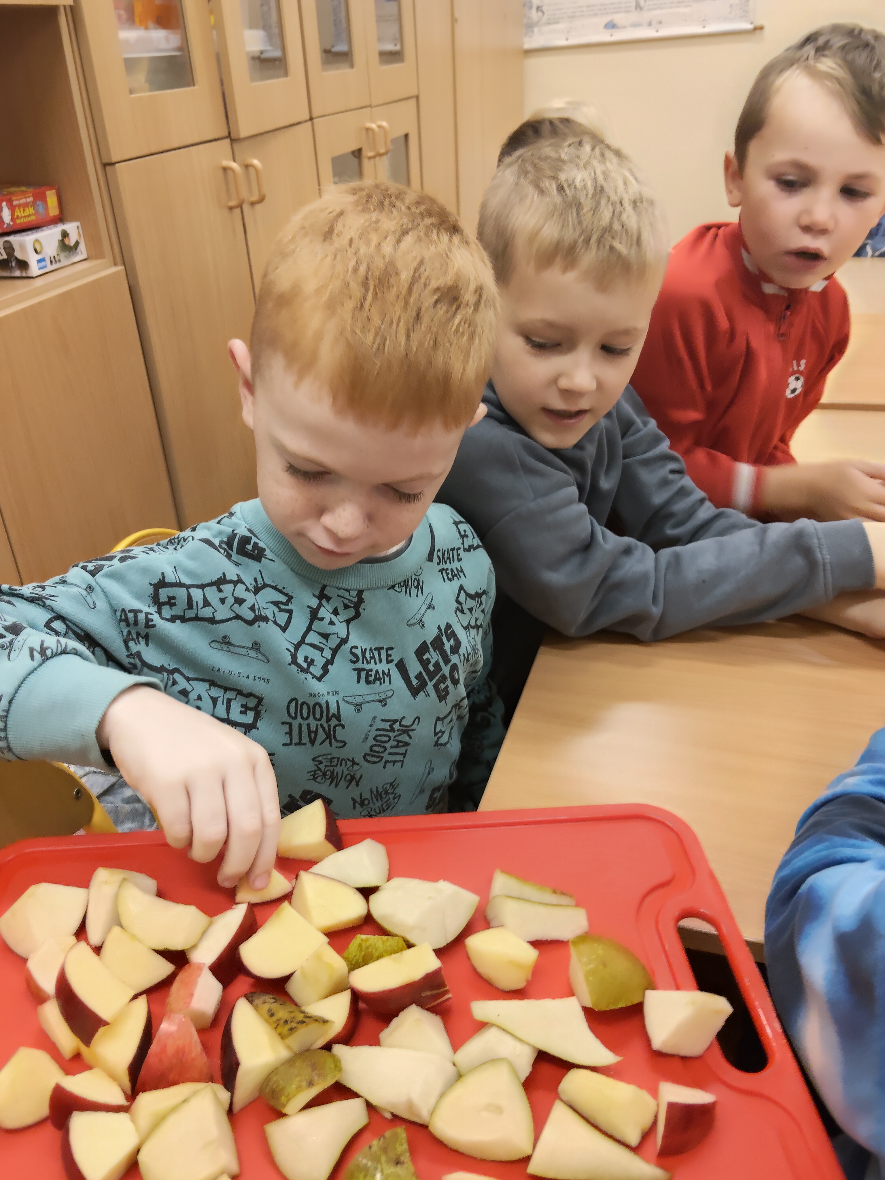 W minionym tygodniu w klasie 1 zgłębialiśmy temat dotyczący zdrowego odżywiania. I jak się okazuje uczniowie klasy pierwszej posiadają dużą wiedzę w tym zagadnieniu. W tym kręgu tematycznym postawiliśmy na poznanie świata za pomocą różnych zmysłów.
