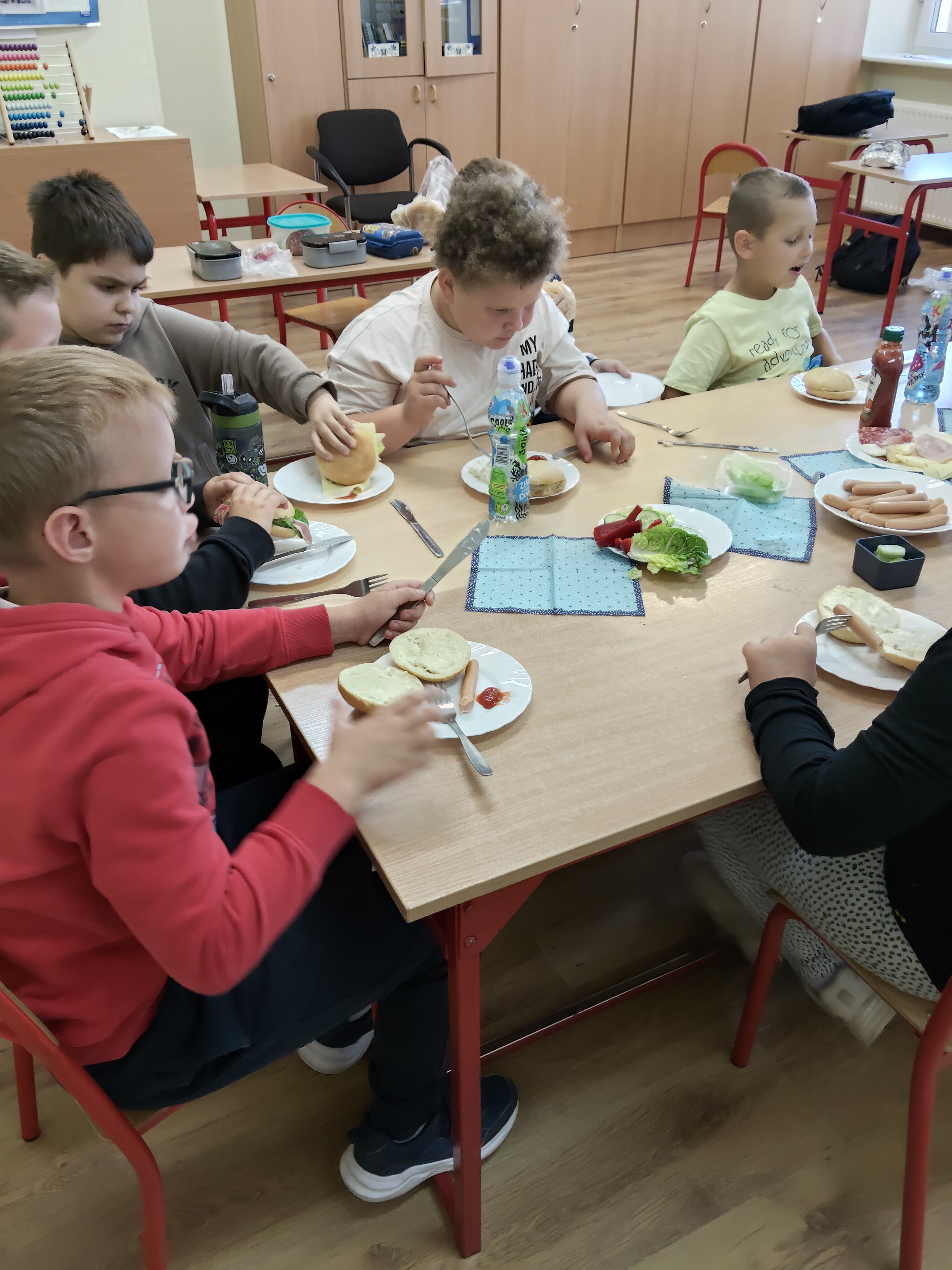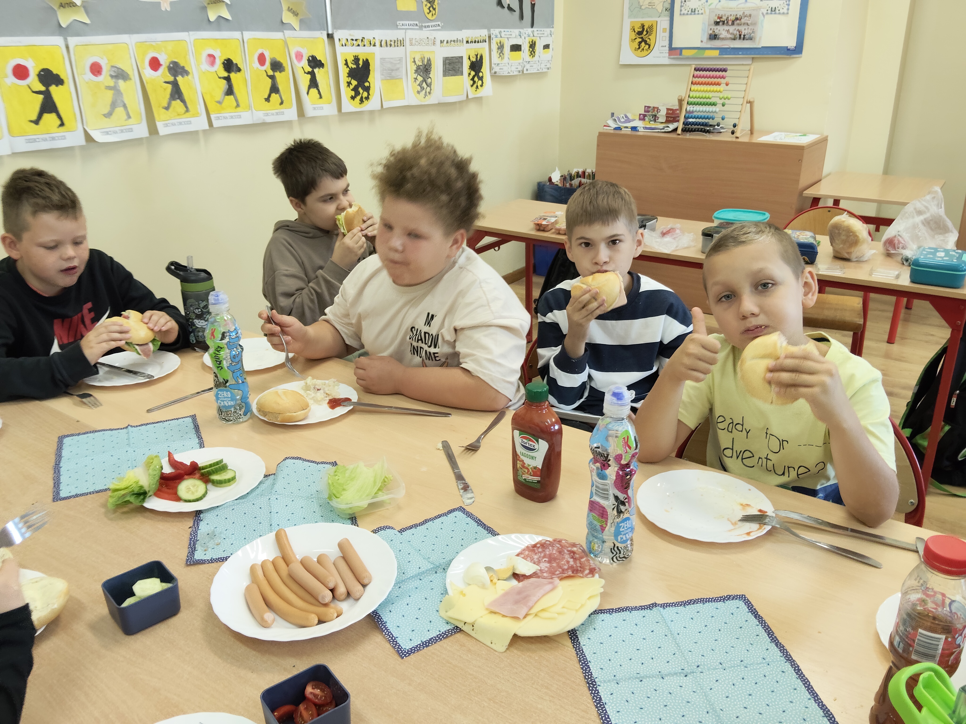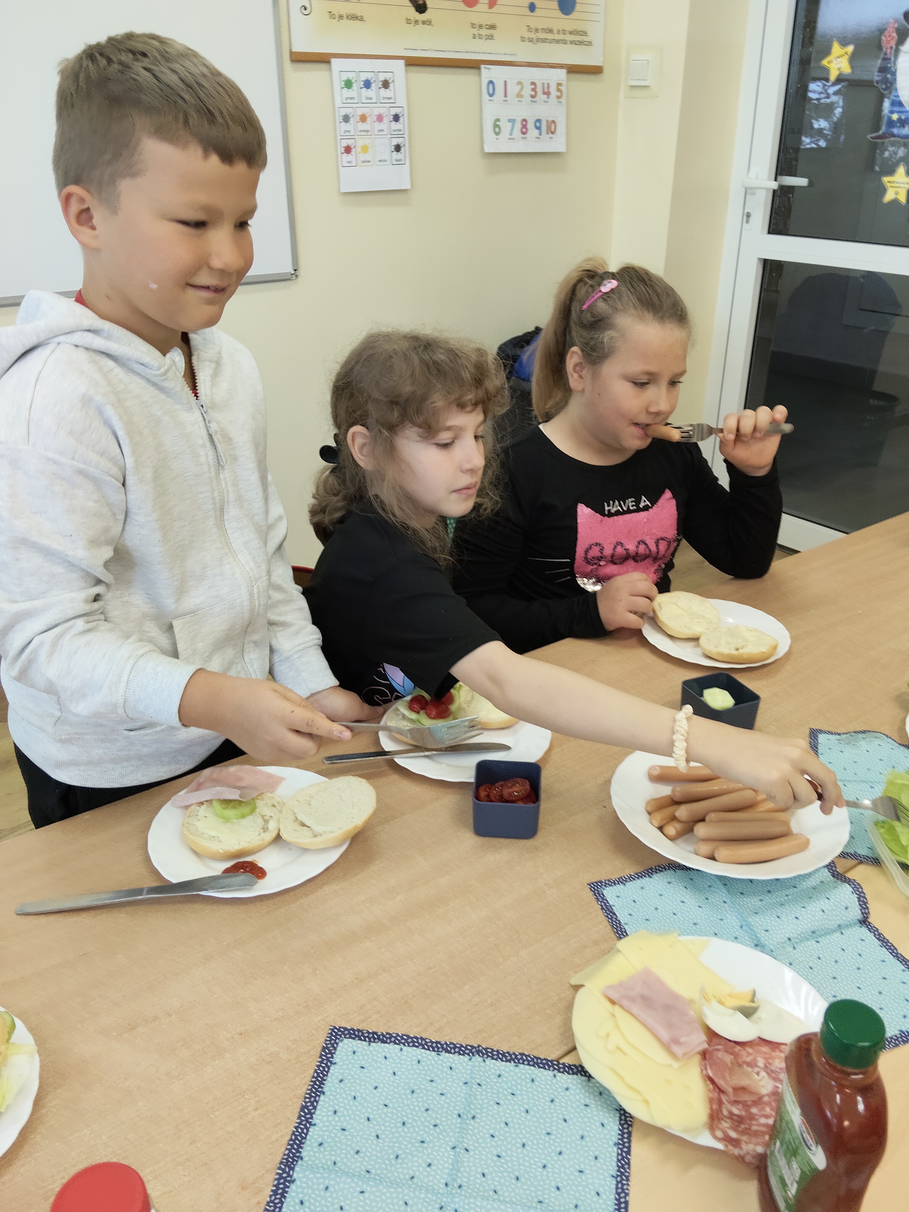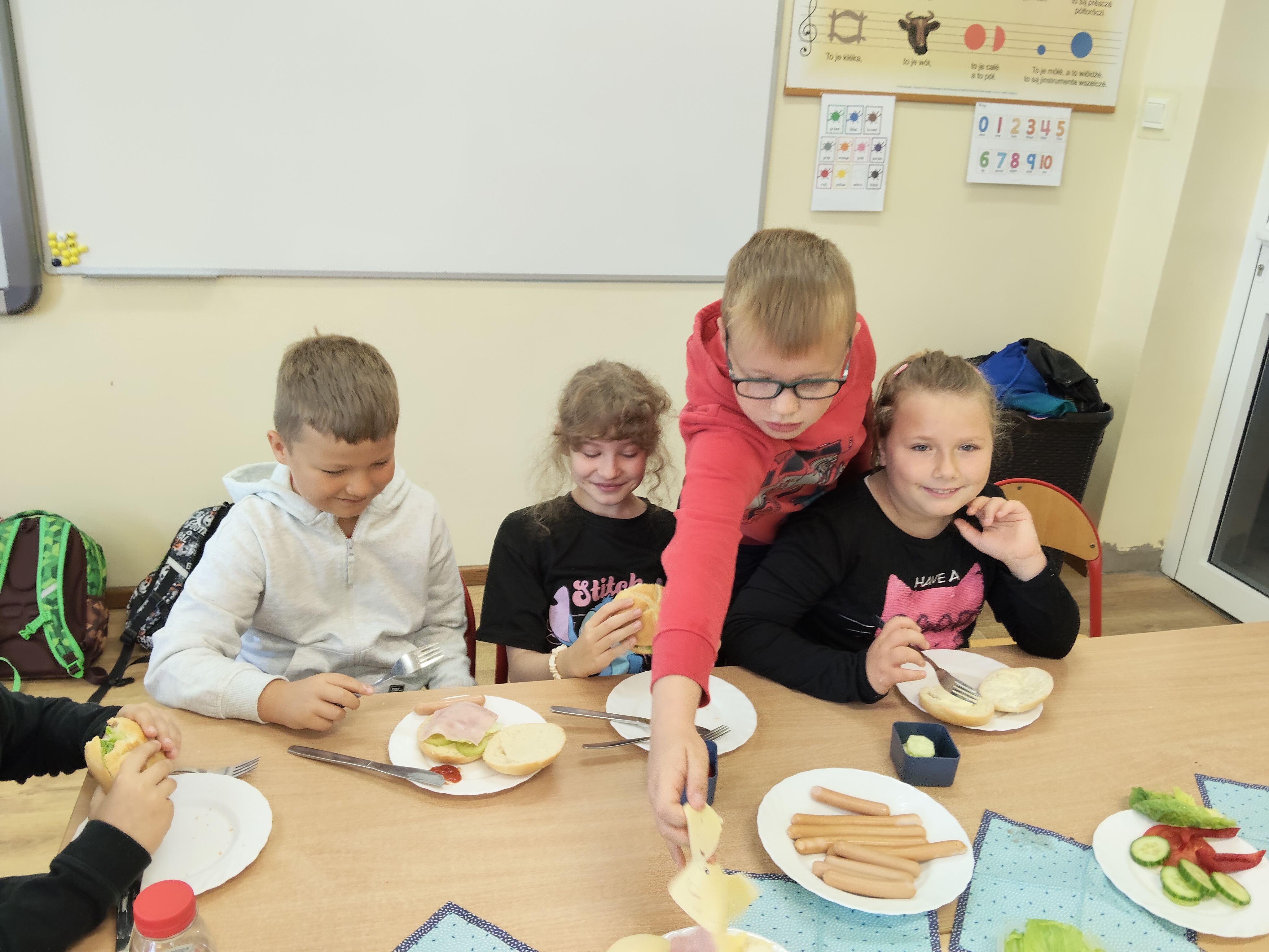Uczniowie klasy drugiej chętnie angażują się w działania praktyczne. A zwłaszcza w tak smaczne i kolorowe jak samodzielnie przygotowane śniadanie. Bo jak wiadomo śniadanie przygotowane samodzielnie smakuje najlepiej.