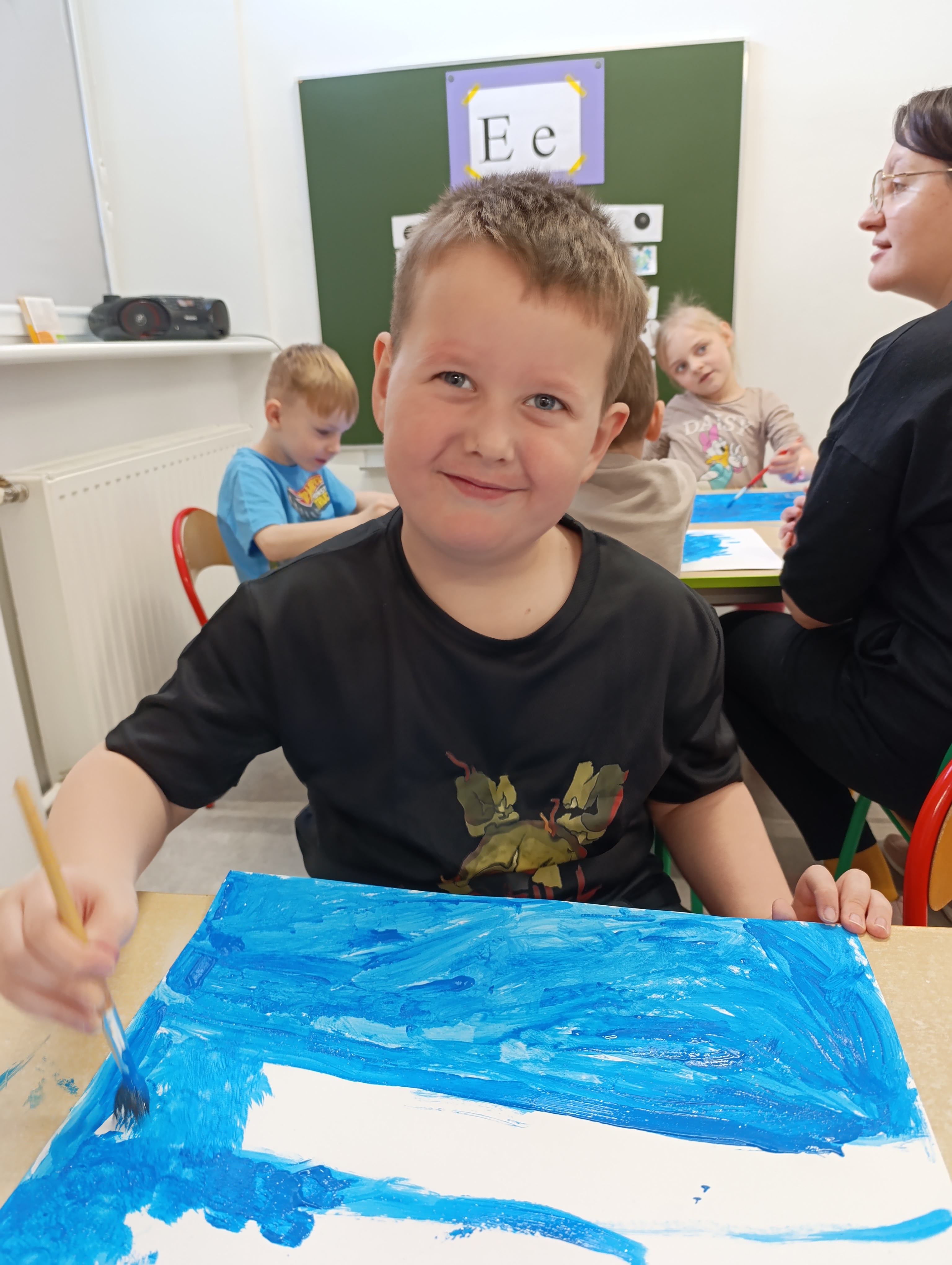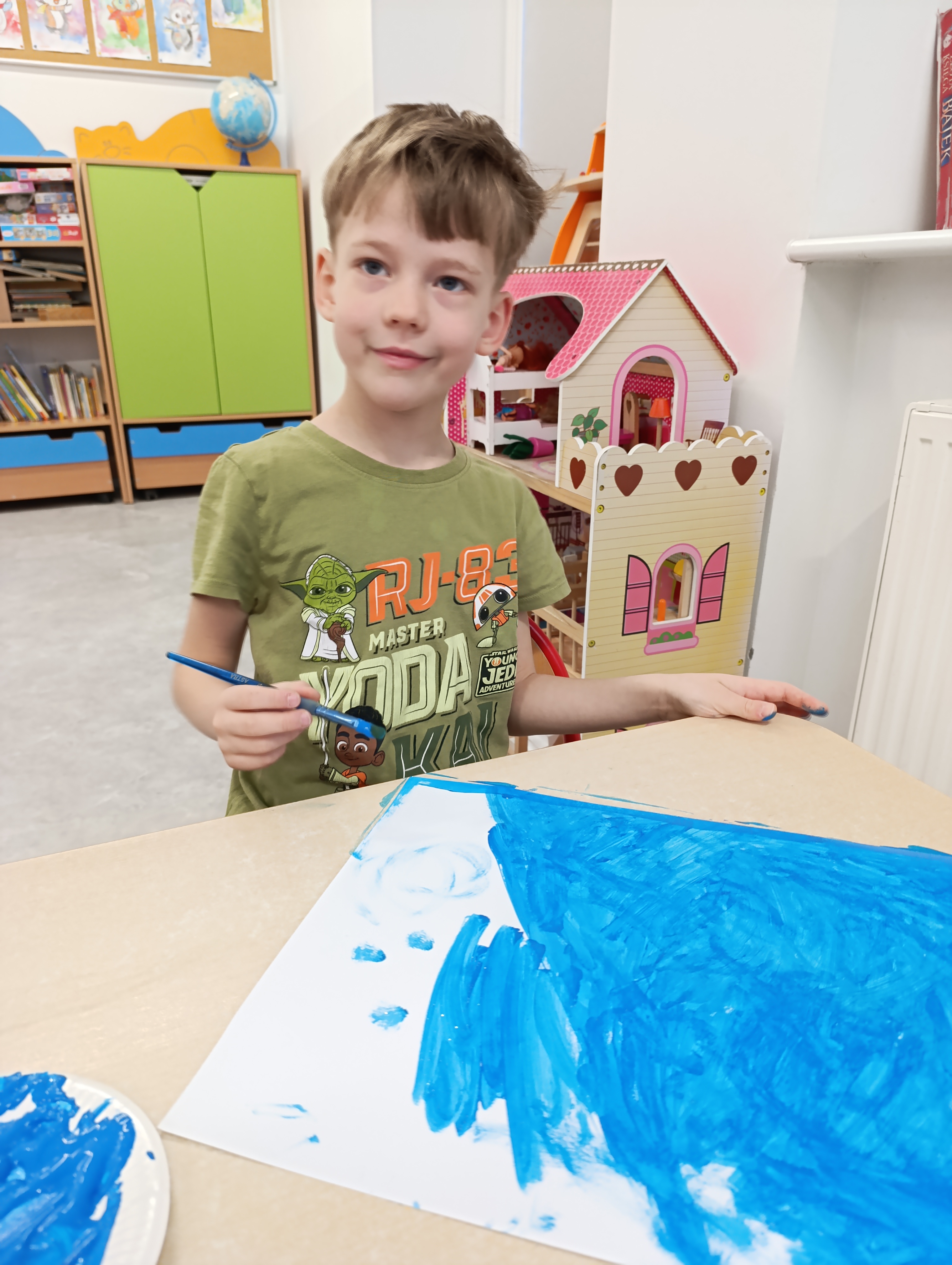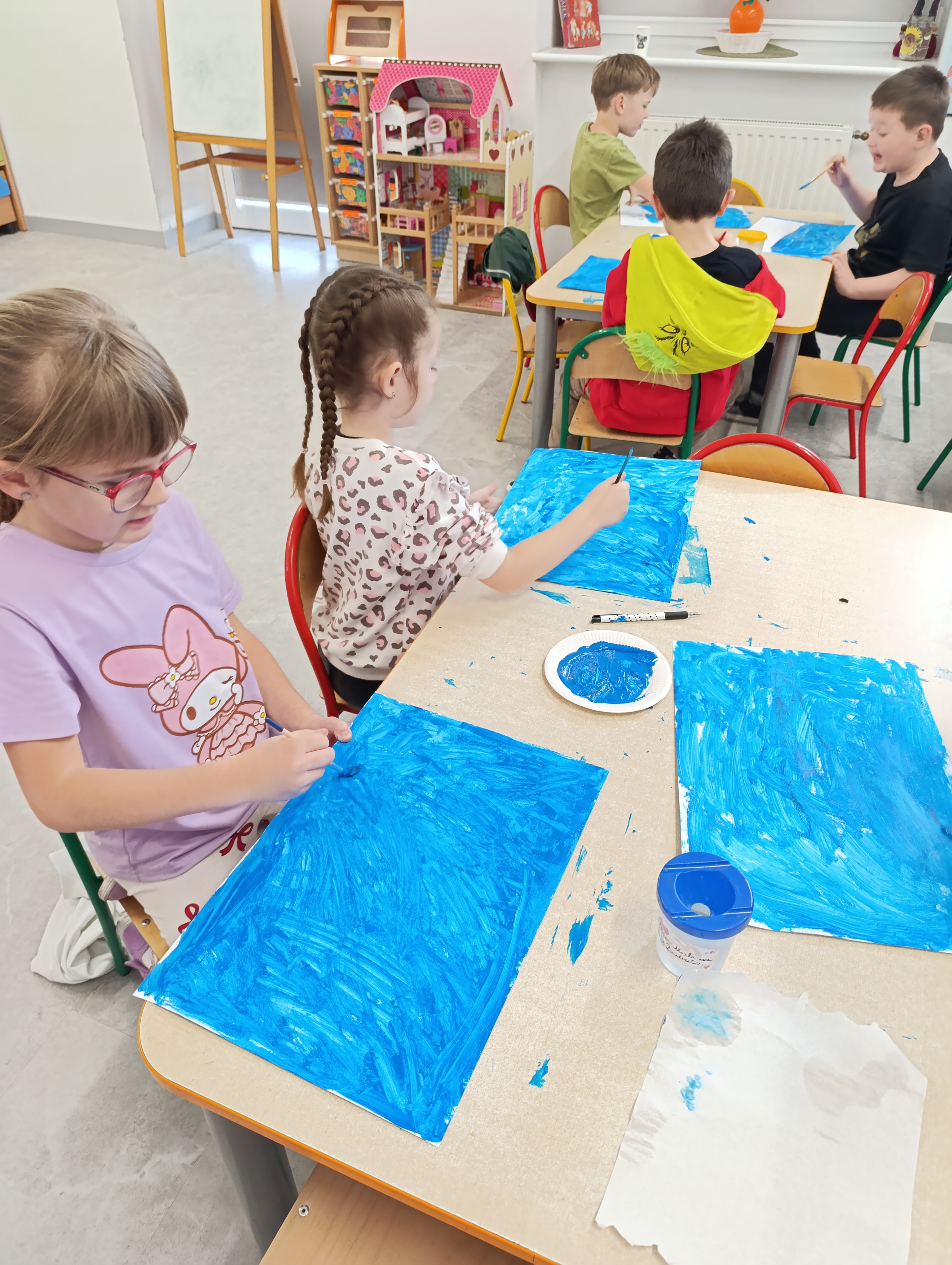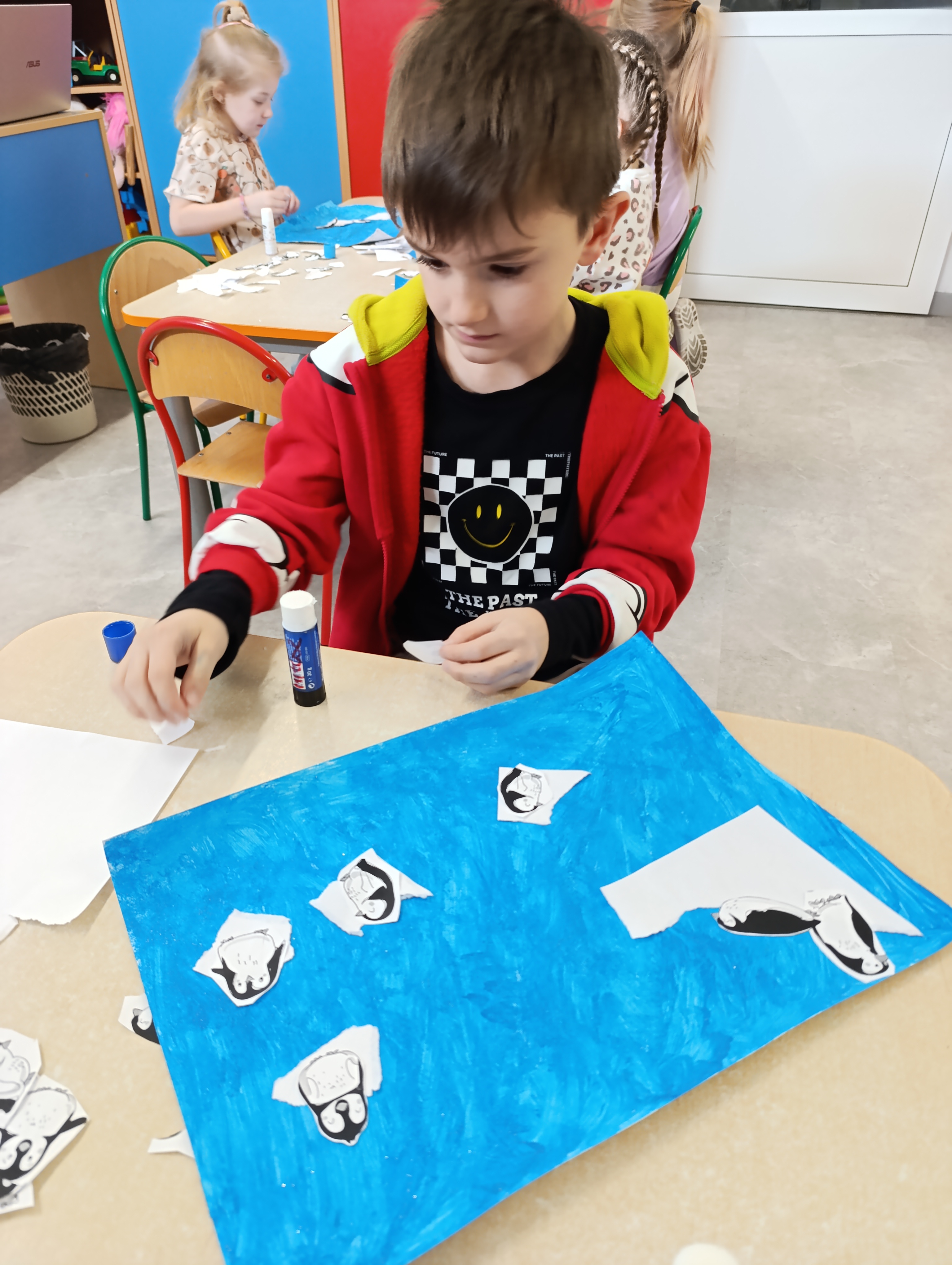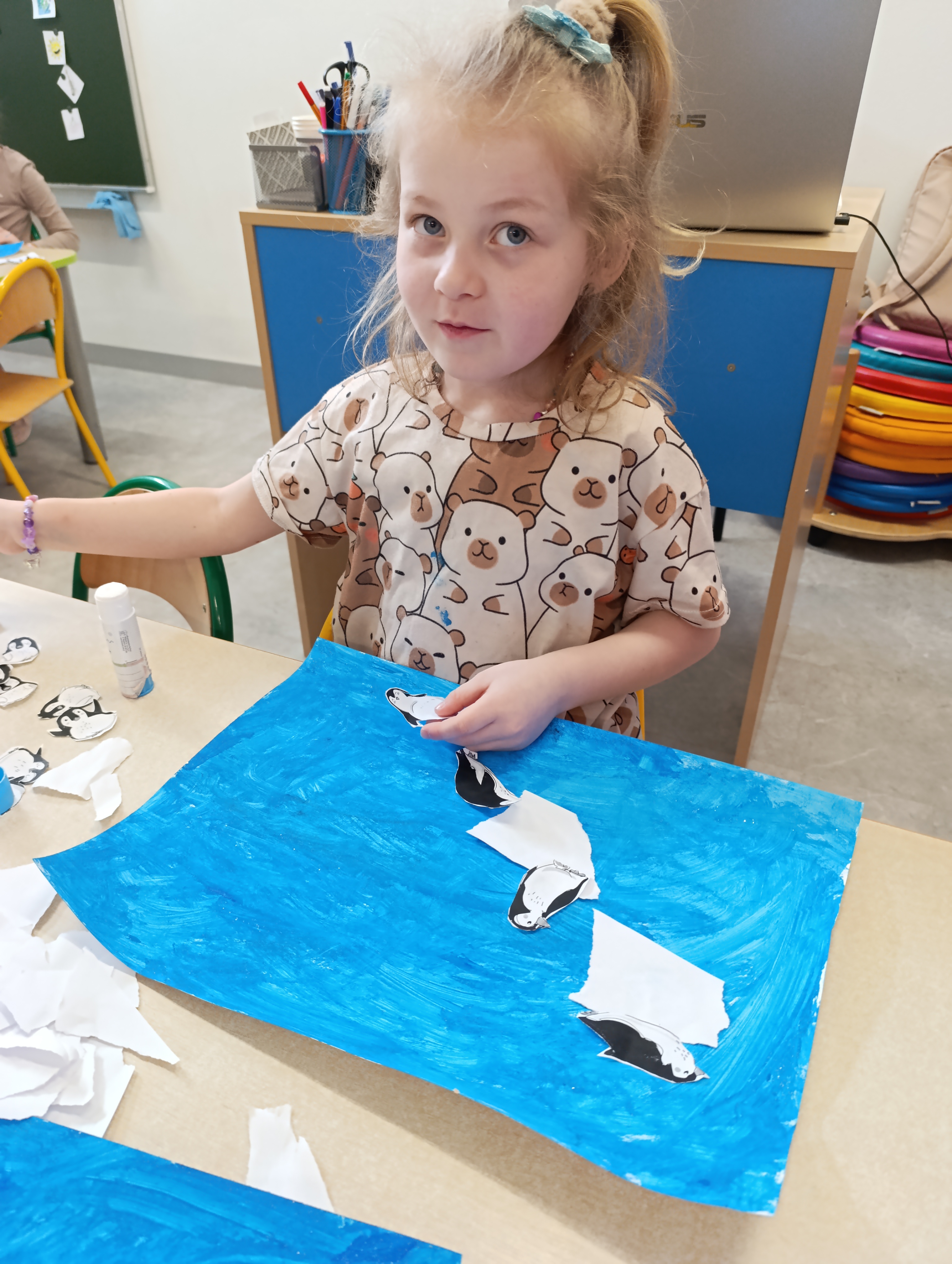 Na zakończenie tygodnia dzieci stworzyły własną Arktykę – pojawiły się pingwiny dumnie stojące na krach lodowych. Naszą polarną przygodę zwieńczyły radosne zabawy na śniegu, które pozwoliły choć przez chwilę poczuć prawdziwie arktyczny klimat!